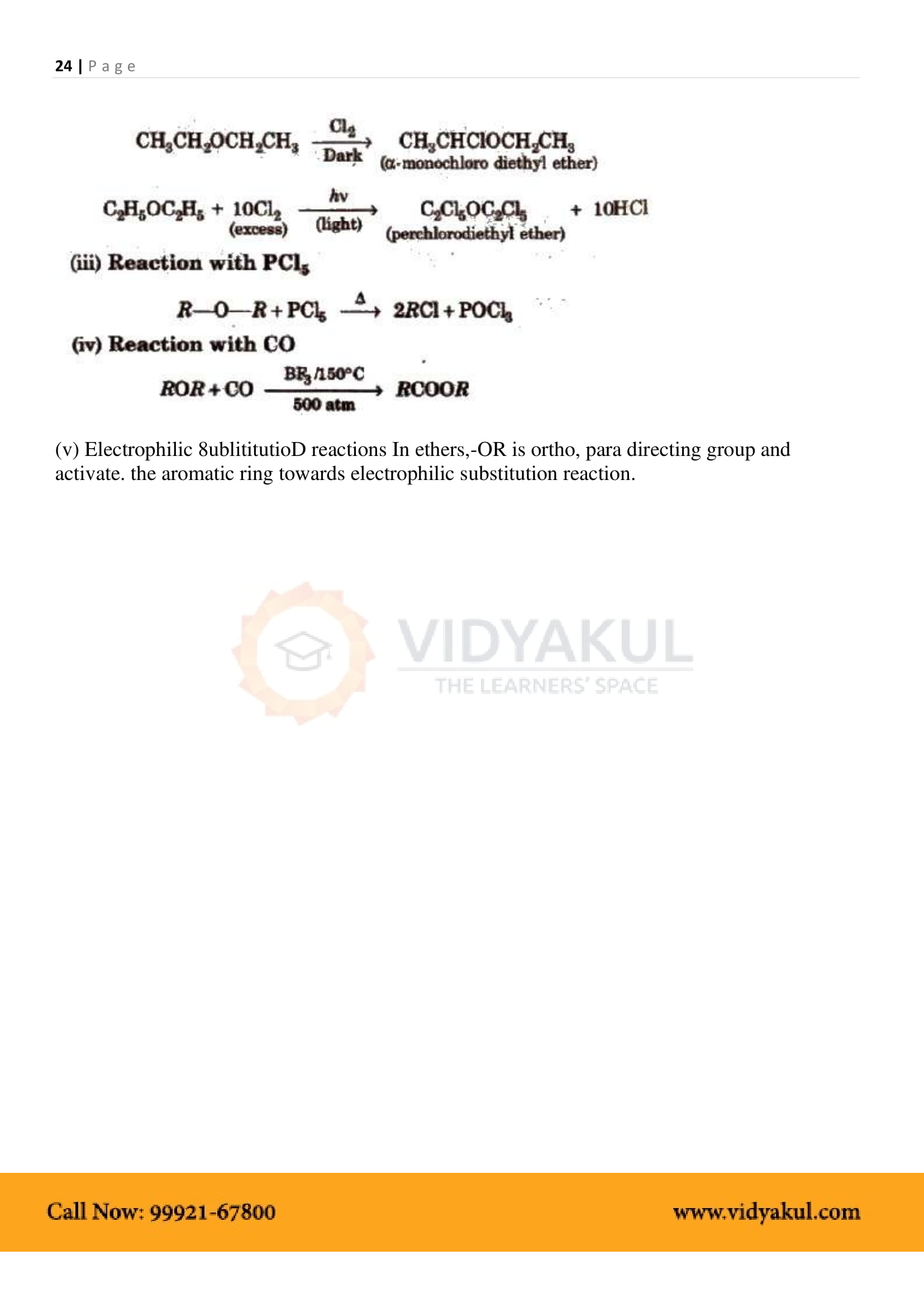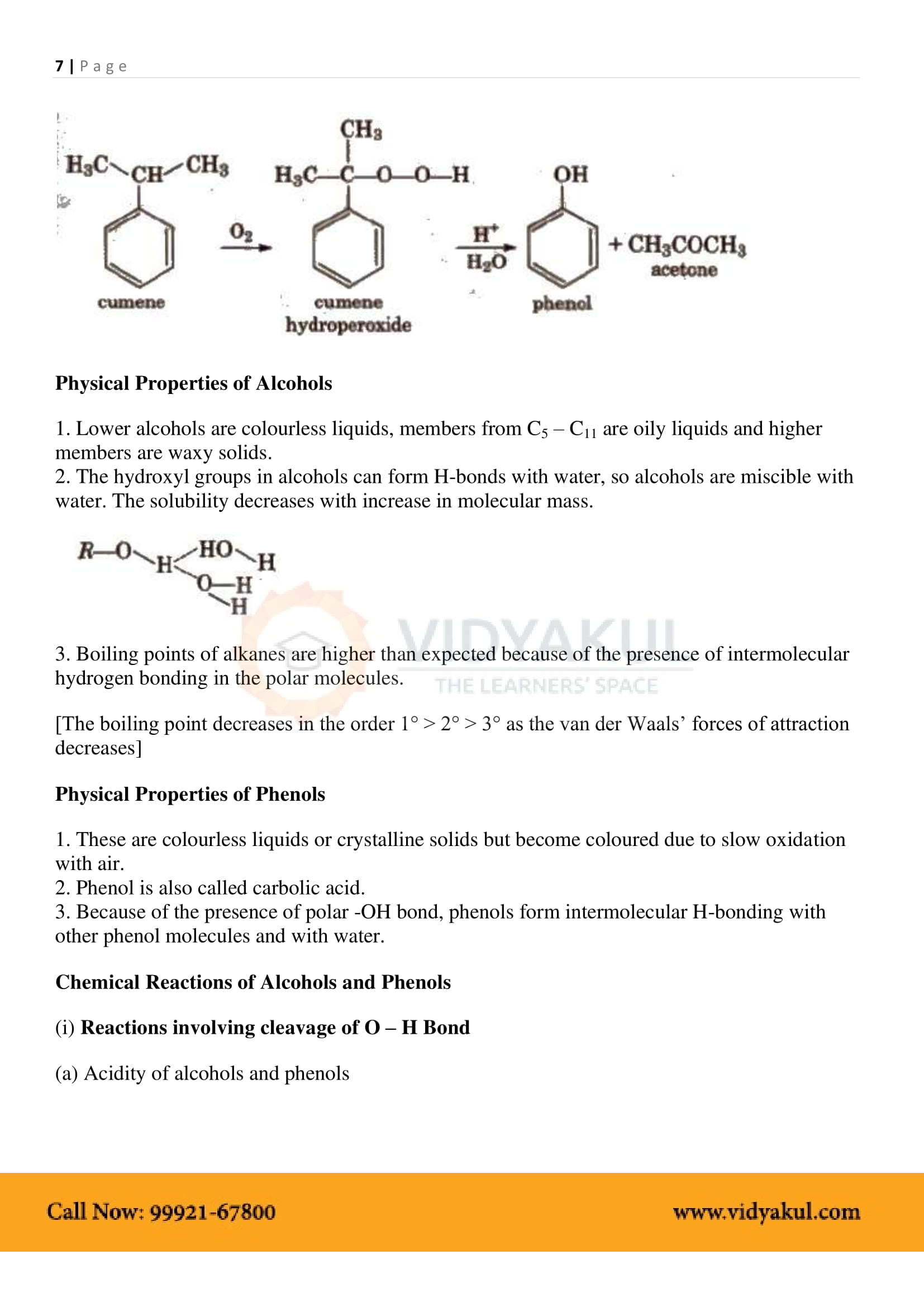 Vidyakul NCERT notes provides answers to each question in the text. Students can tackle the questions by unit or by topic and continue to study them to perfection. The topics and subtopics included in Alcohol, Phenol and Ete Chapter 11 of NCERT Grade 12 Chemistry are as follows.