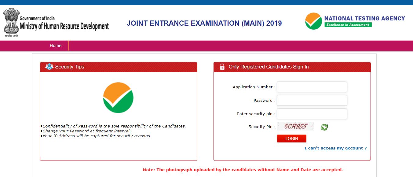 Step 2: Click on ‘JEE Main (2019)’ link, and then drag your mouse to ‘download admit card’ link