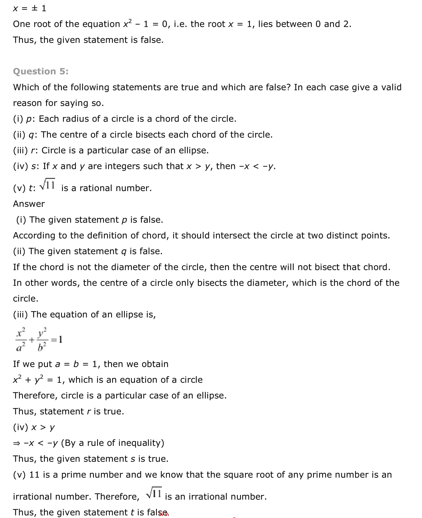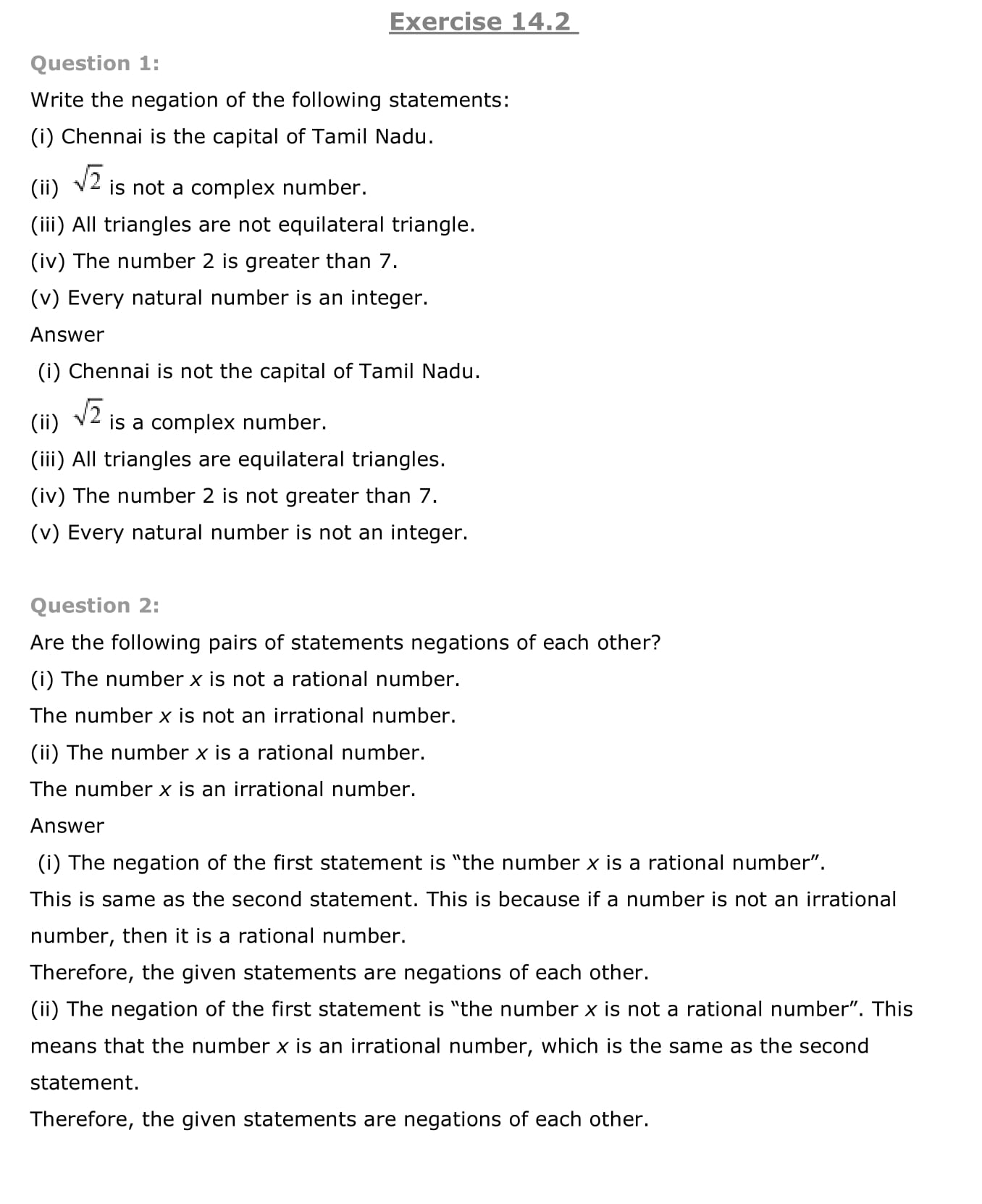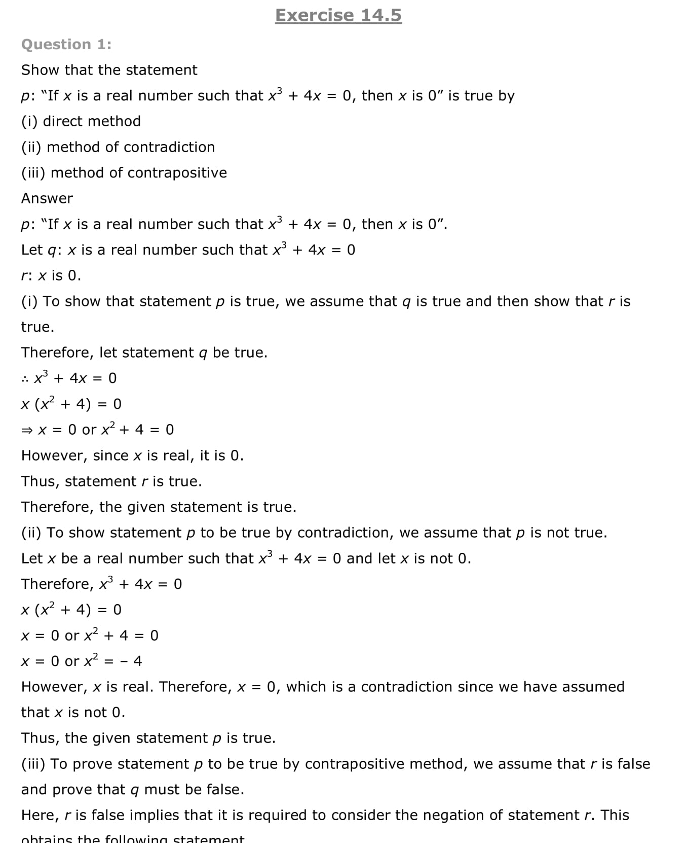 NCERT Solutions for Class 11 Maths Chapter 14 Mathematical Reasoning - PDF Download