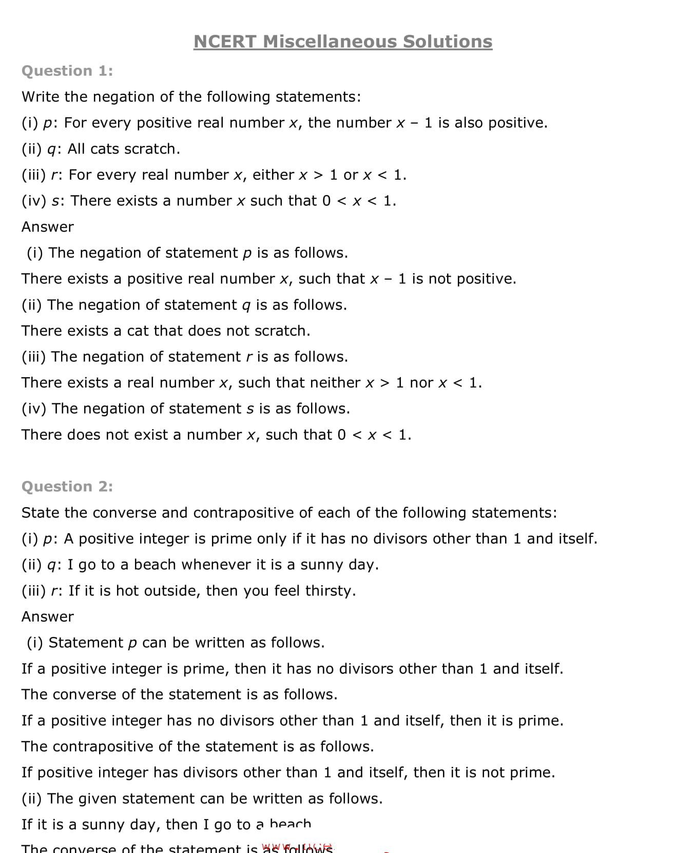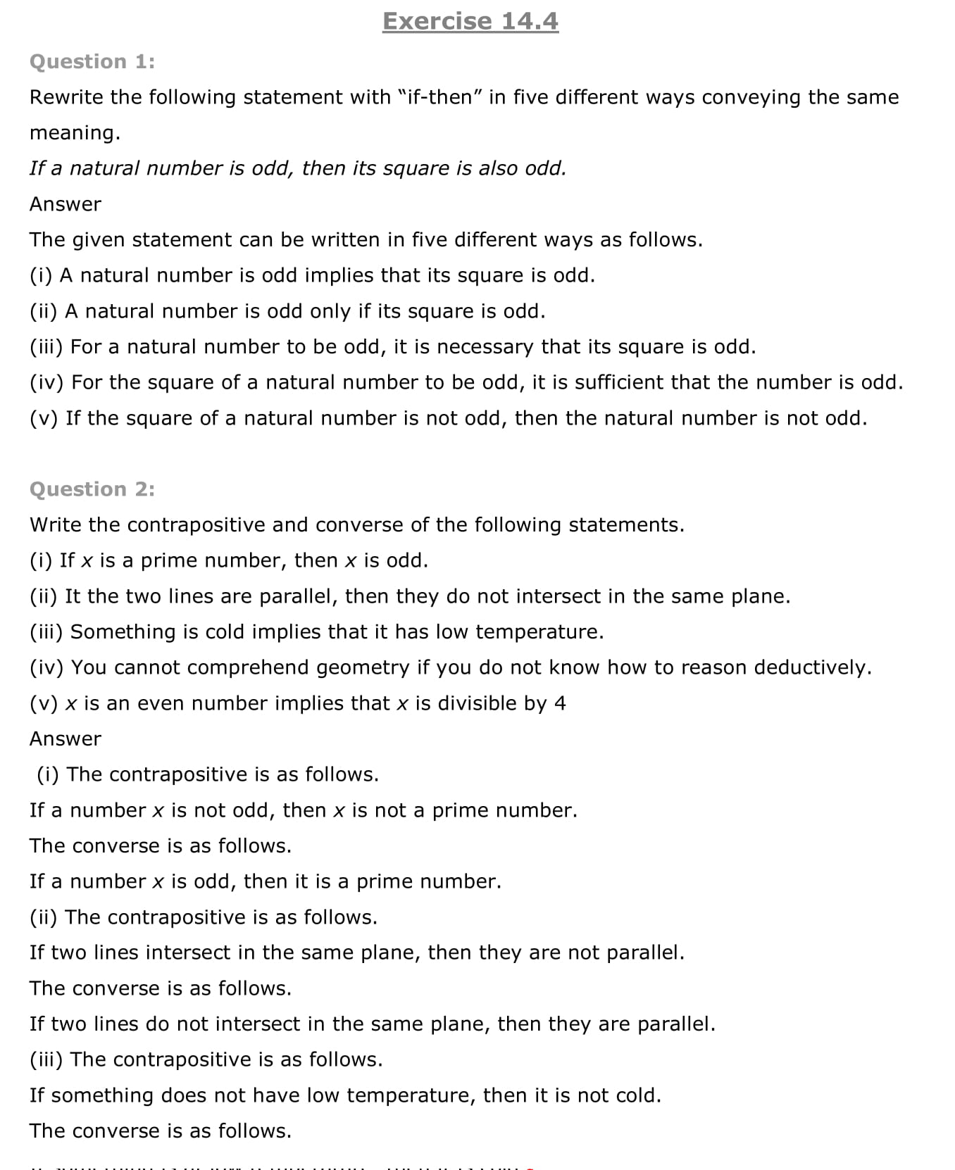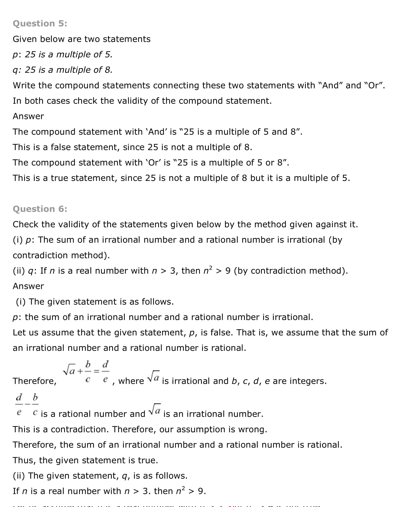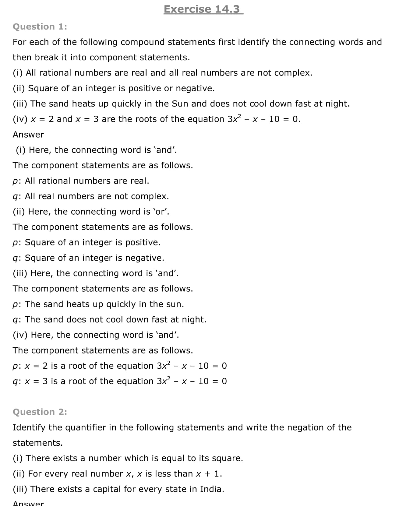 NCERT Solutions for Class 11 Maths Chapter 14 Mathematical Reasoning - PDF Download