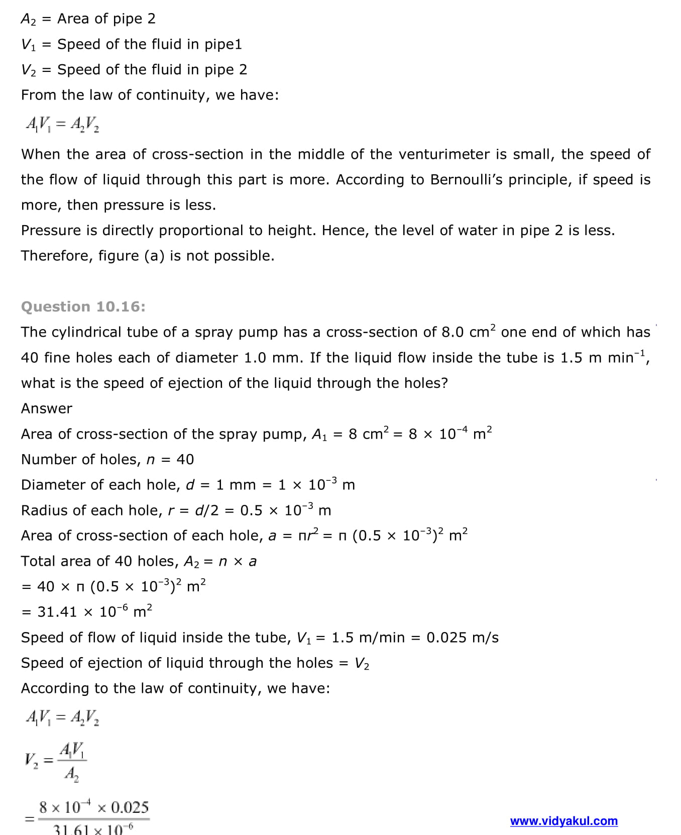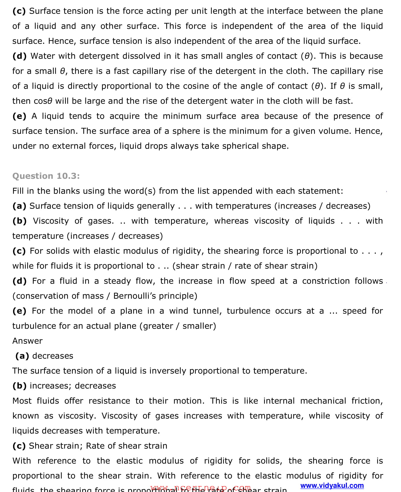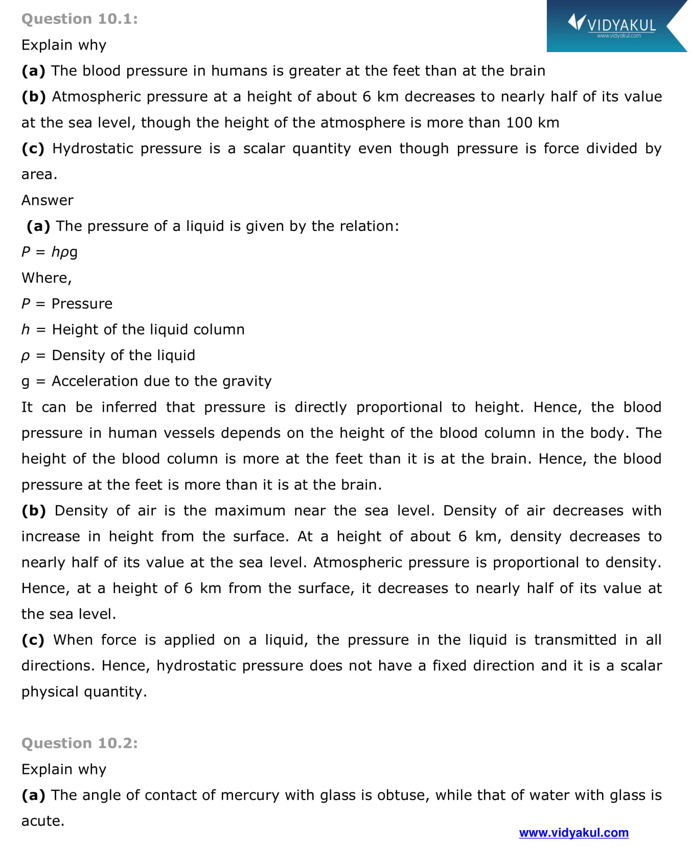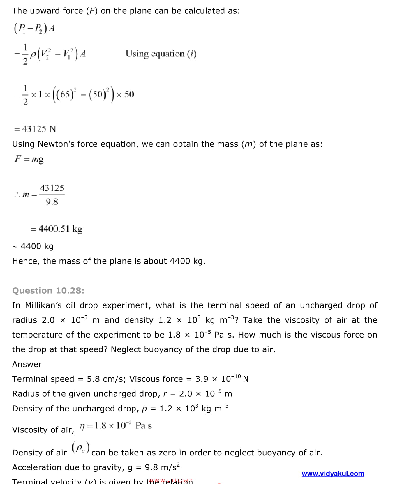 Be on the top of your study schedule with Class 11 NCERT Physics Solution Chapter 10 Mechanical Properties of Fluids by Vidyakul. All the solutions to the exercises in Class 11 NCERT are formulated by the experienced teachers at Vidyakul.