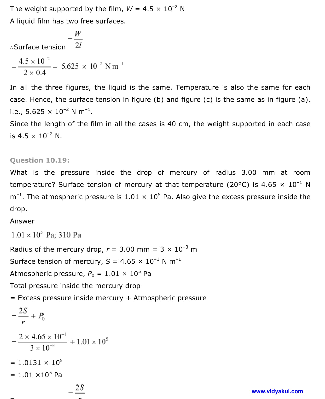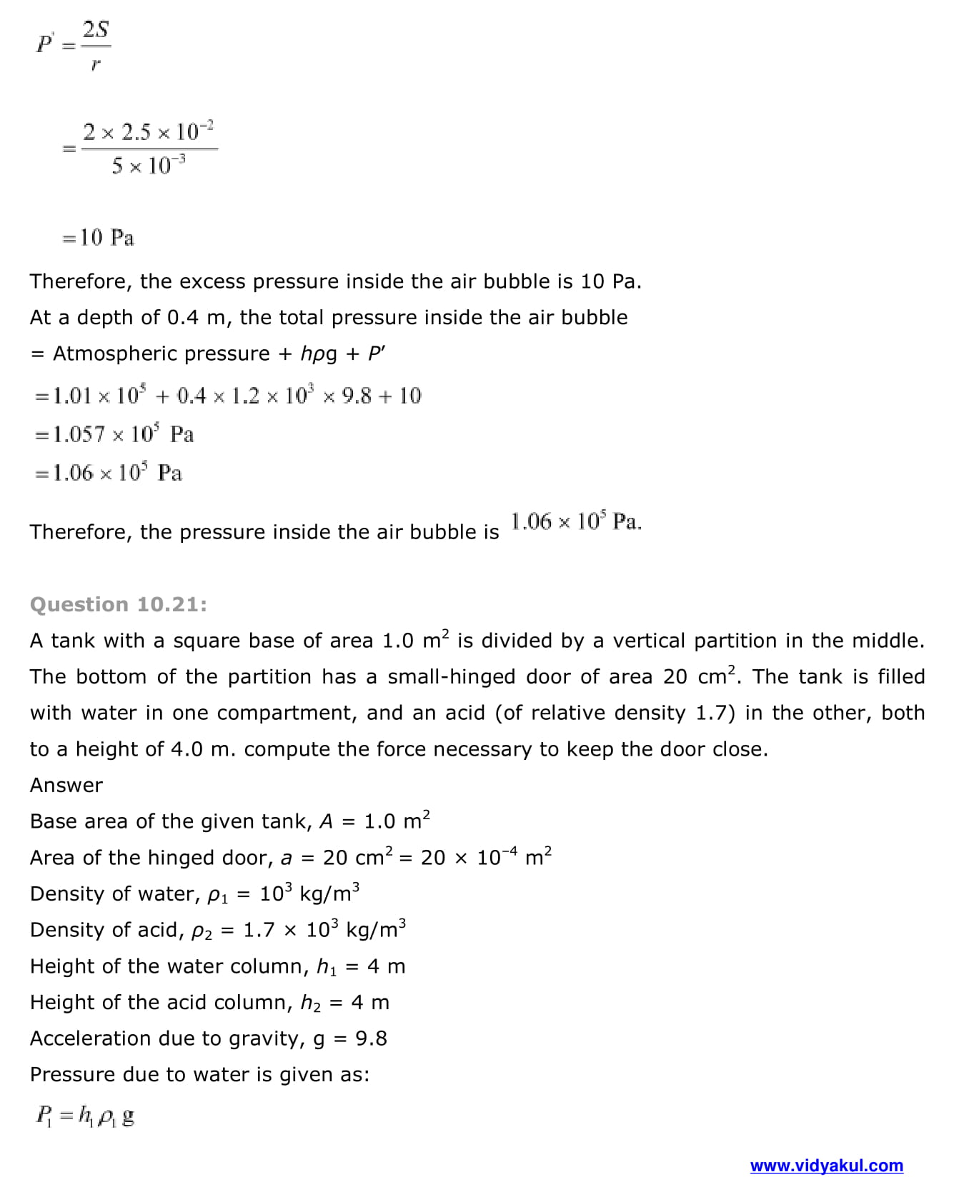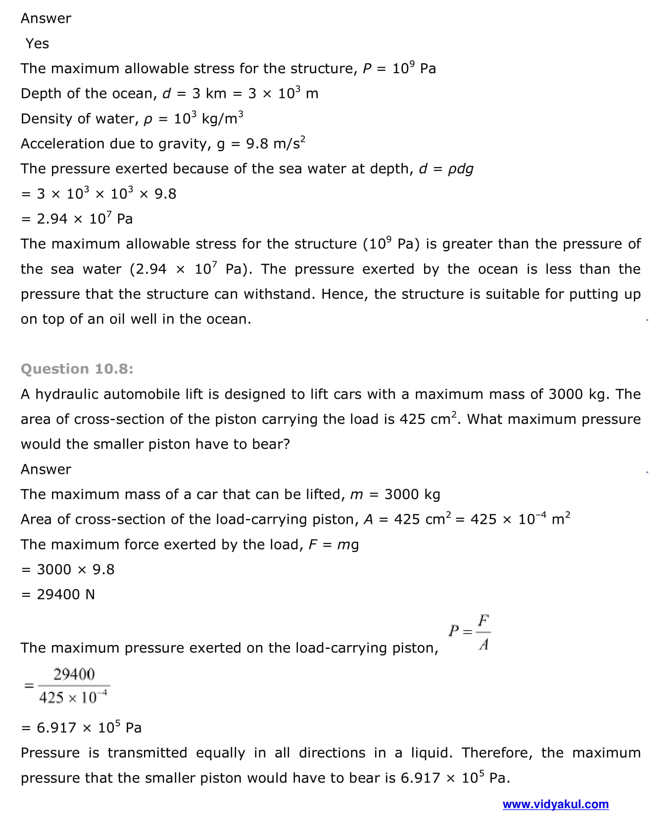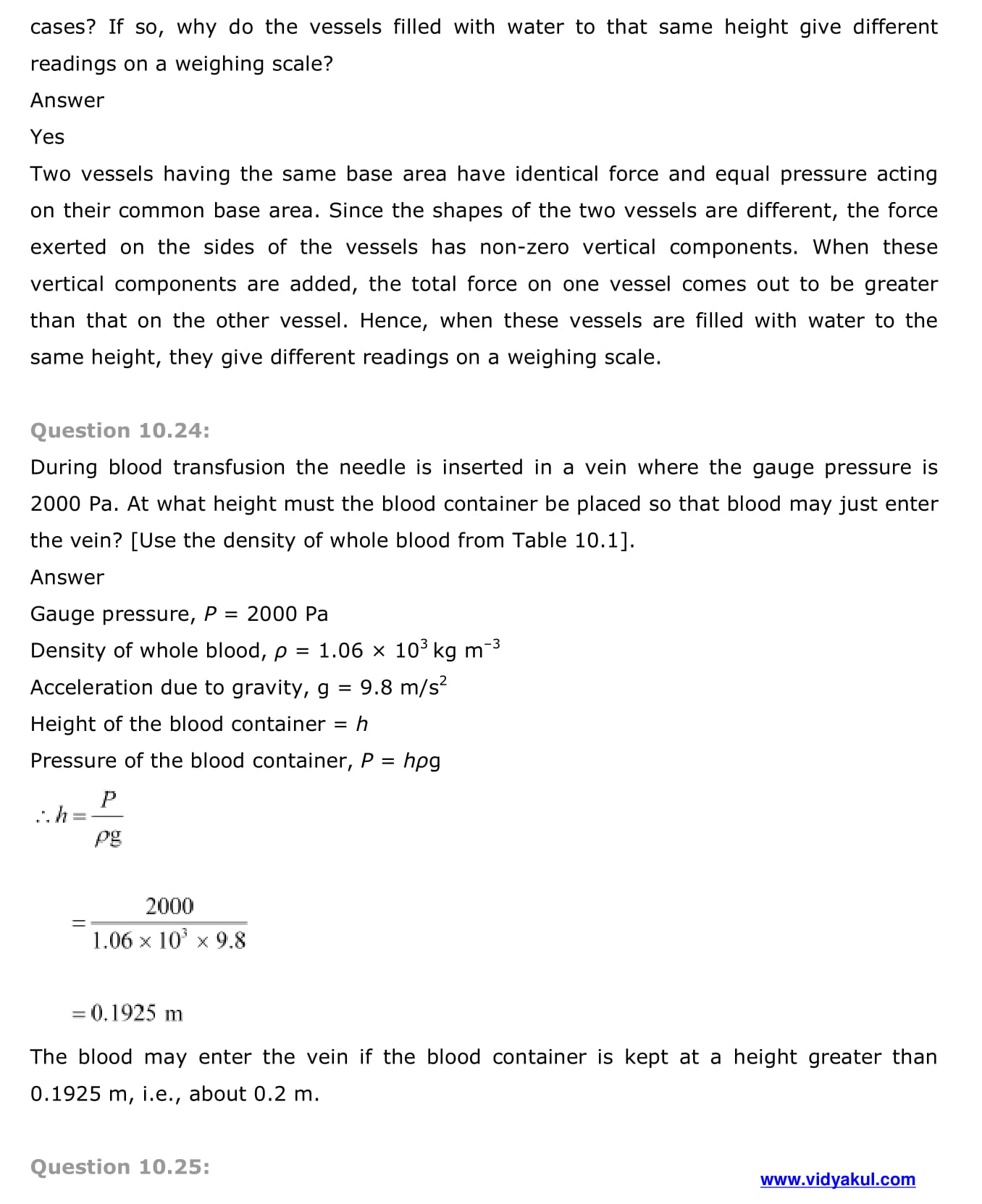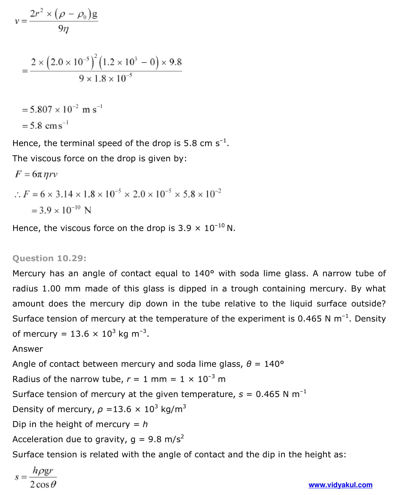 Be on the top of your study schedule with Class 11 NCERT Physics Solution Chapter 10 Mechanical Properties of Fluids by Vidyakul. All the solutions to the exercises in Class 11 NCERT are formulated by the experienced teachers at Vidyakul.