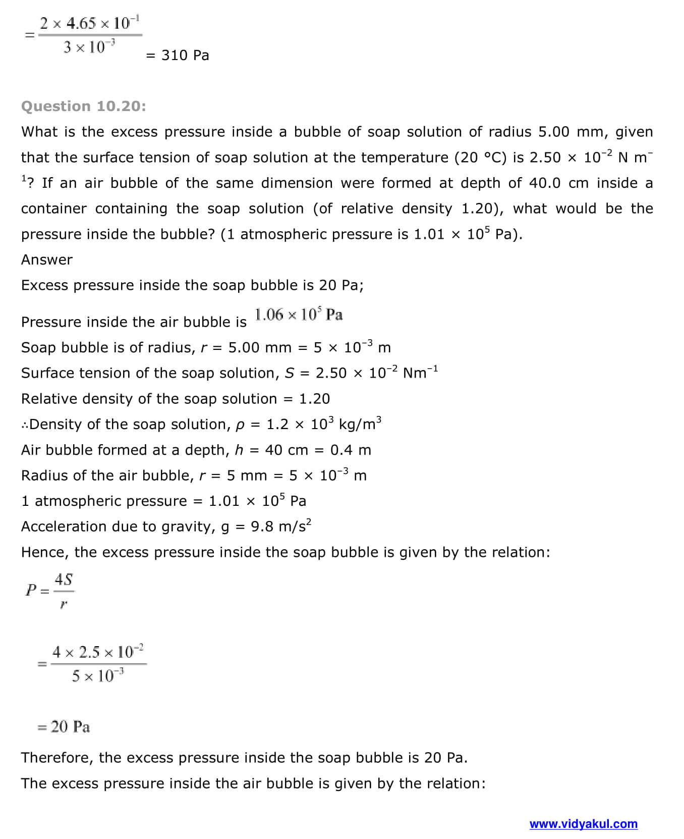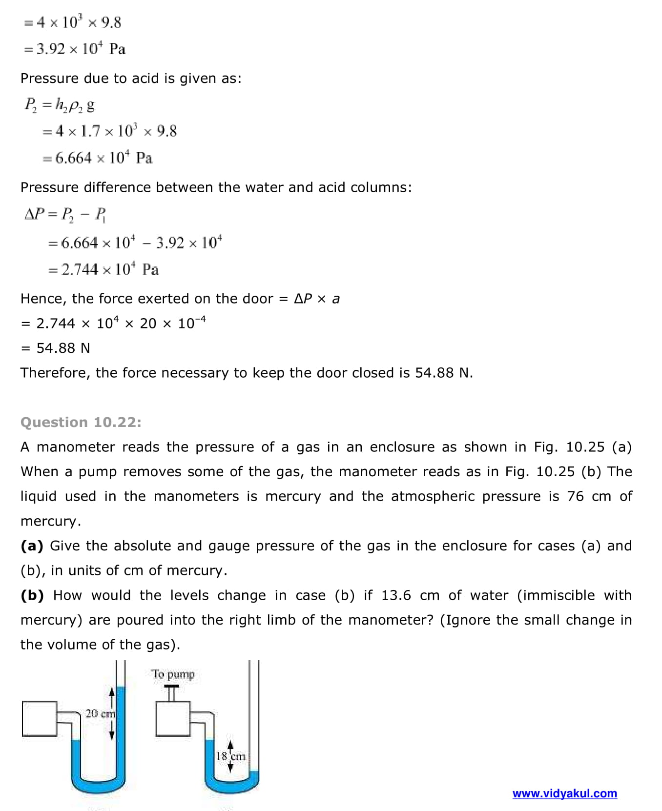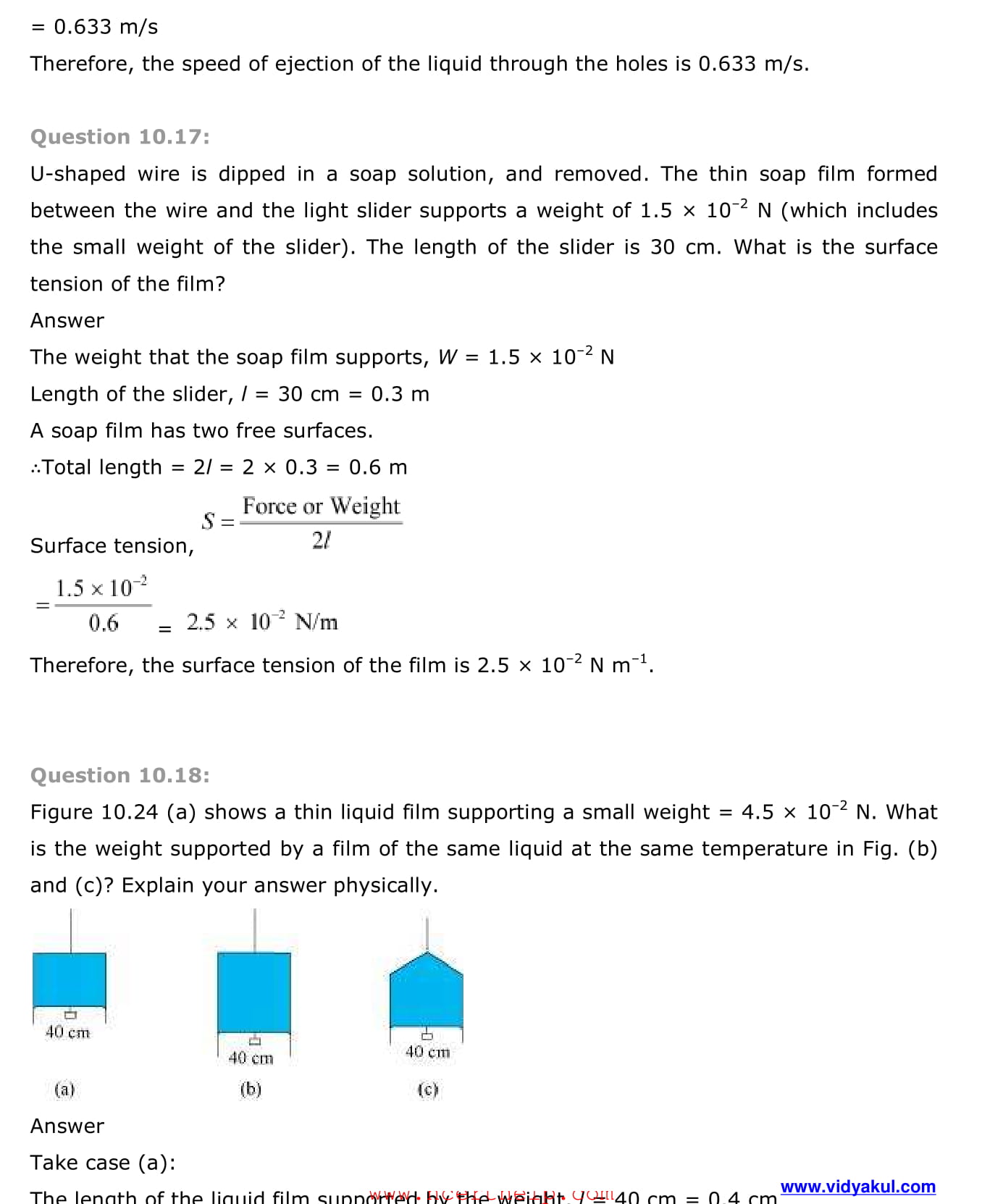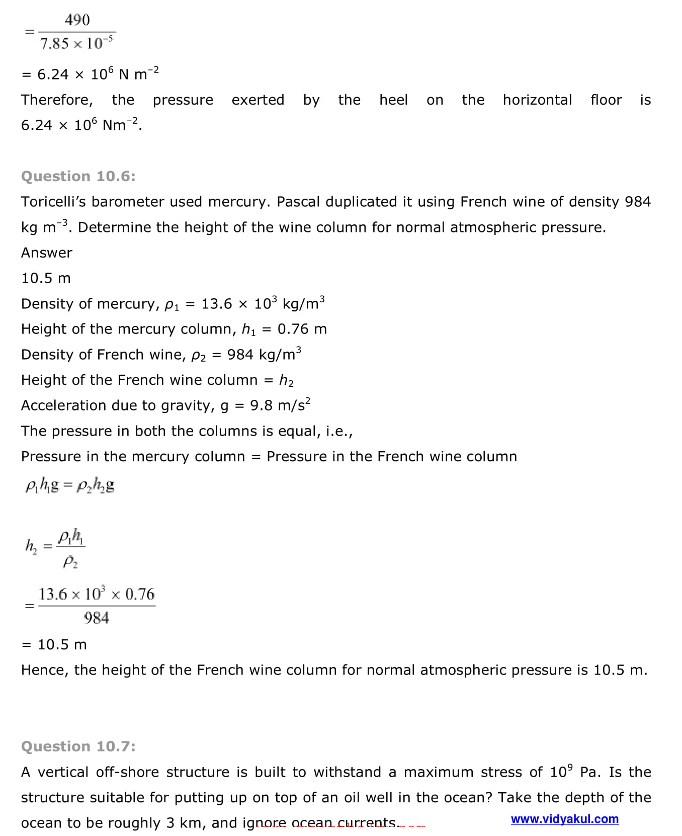 Be on the top of your study schedule with Class 11 NCERT Physics Solution Chapter 10 Mechanical Properties of Fluids by Vidyakul. All the solutions to the exercises in Class 11 NCERT are formulated by the experienced teachers at Vidyakul.