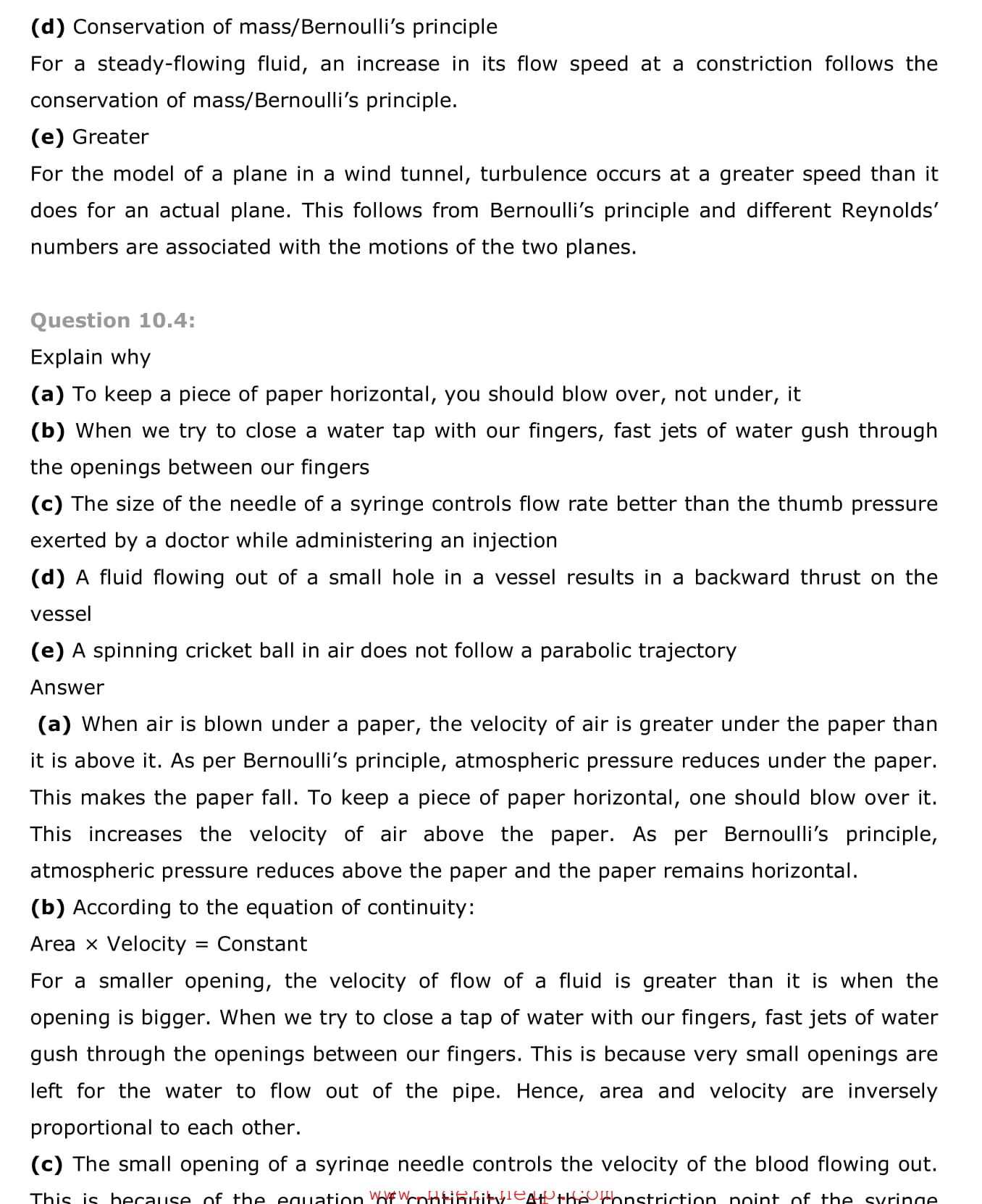 NCERT Solutions for Class 11 Physics Chapter 10 Mechanical Properties of Fluids - PDF Download