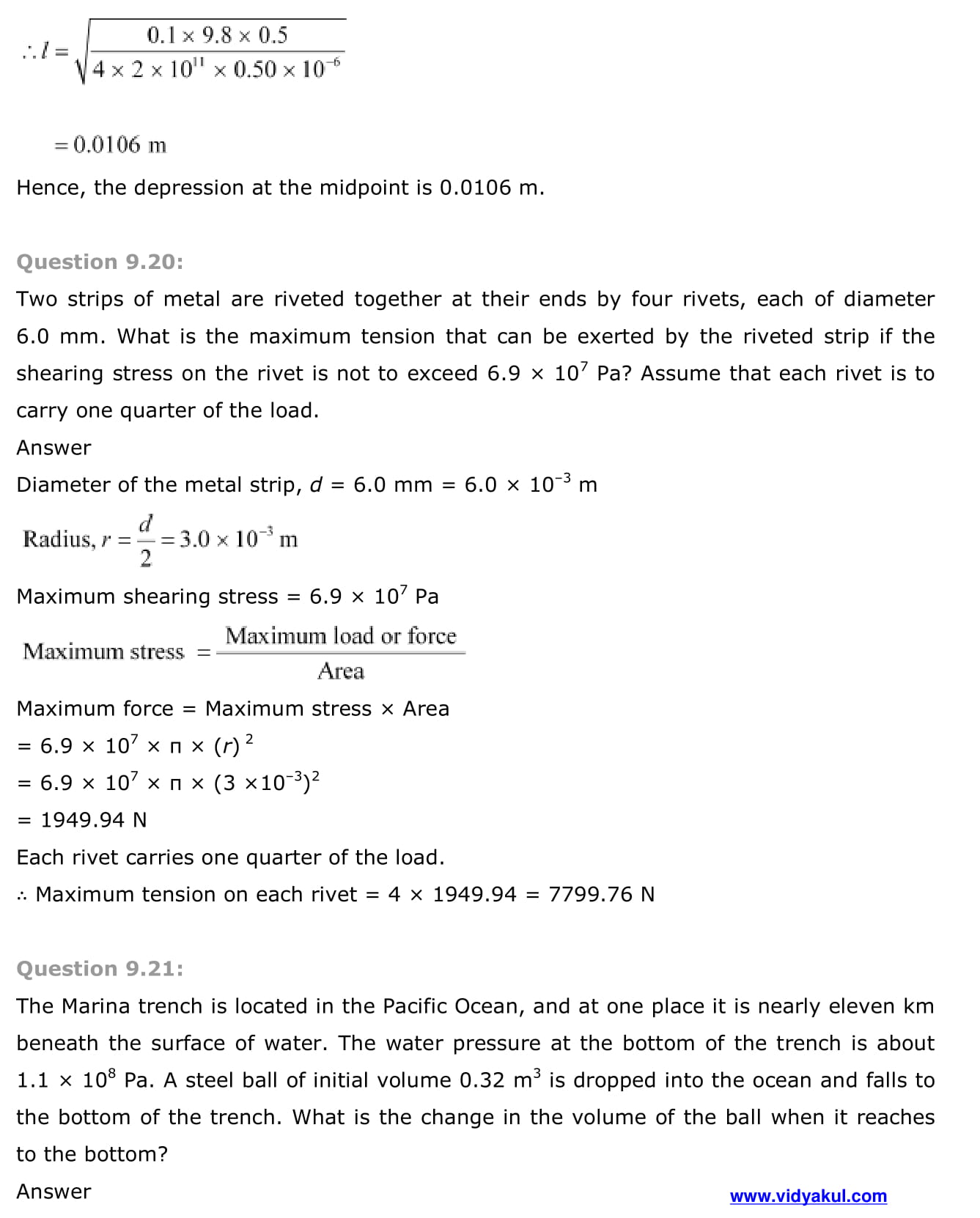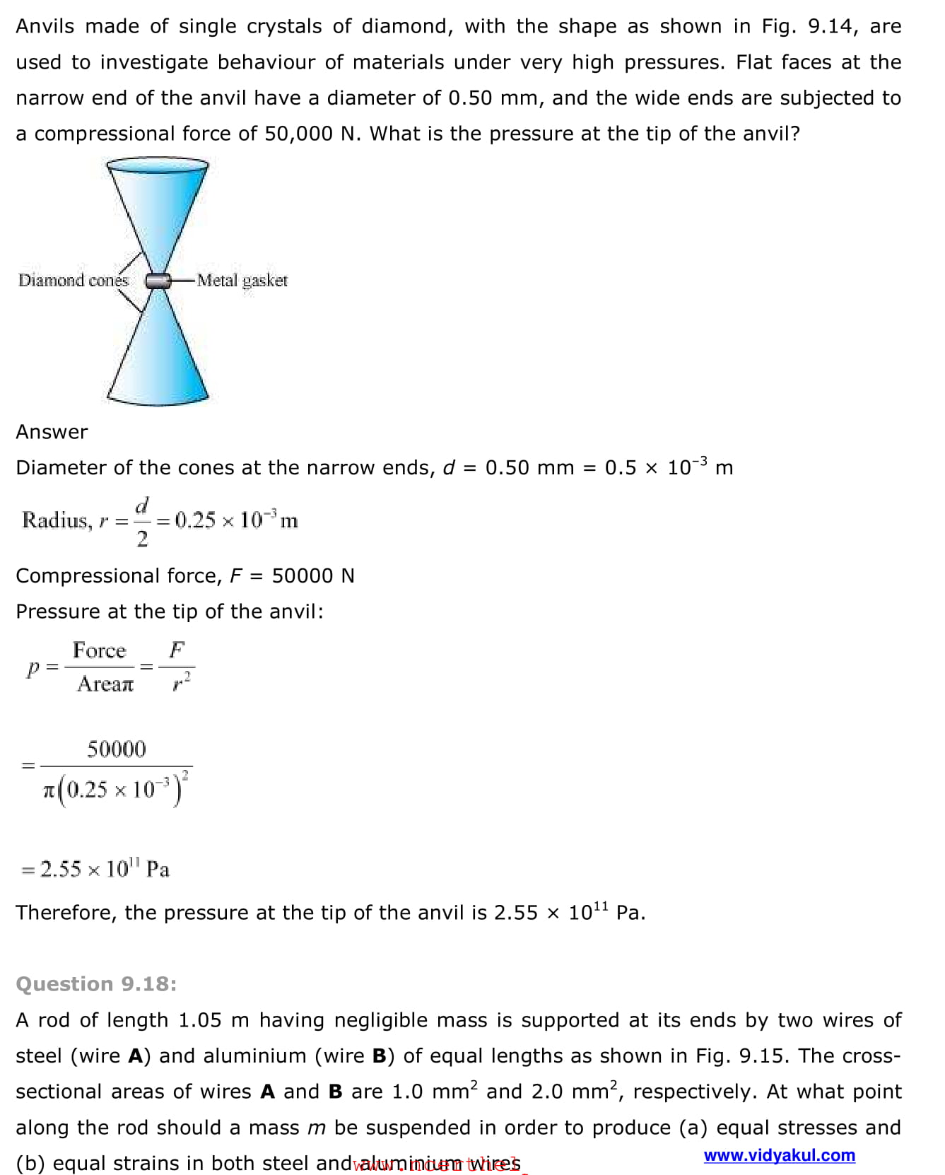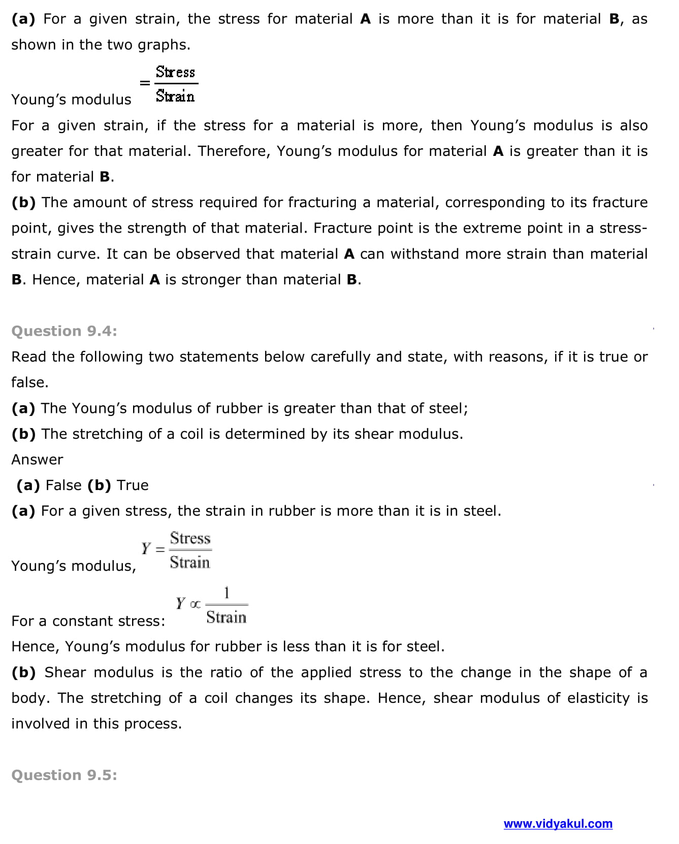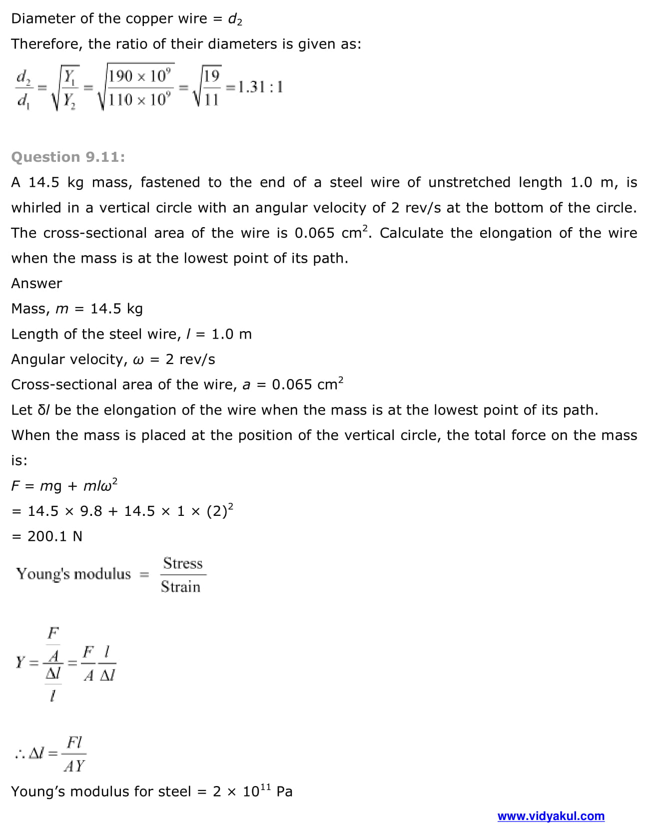 NCERT Solutions for Class 11 Physics Chapter 9 Mechanical Properties of Solids - PDF Download