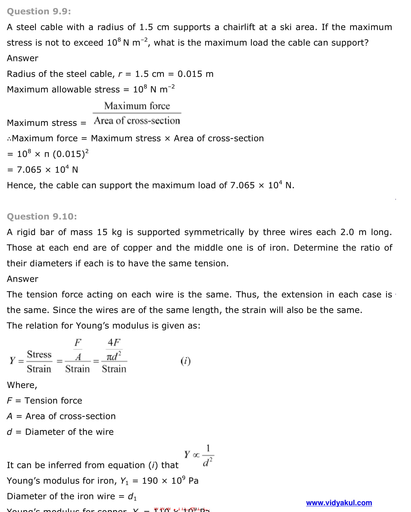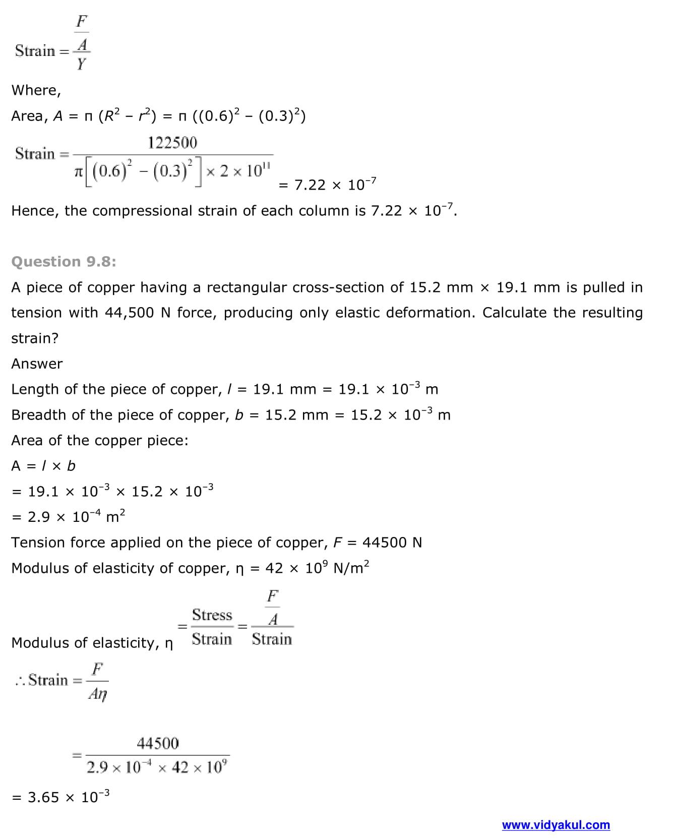 Grow your grip stronger on Physics with Vidyakul’s NCERT Solutions for Class 11 Physics Chapter -9 Mechanical Properties of Solids. The solutions are provided for each and every question given in Class 11 Physics NCERT. Get the most updated information in accordance with the latest CBSE guidelines.