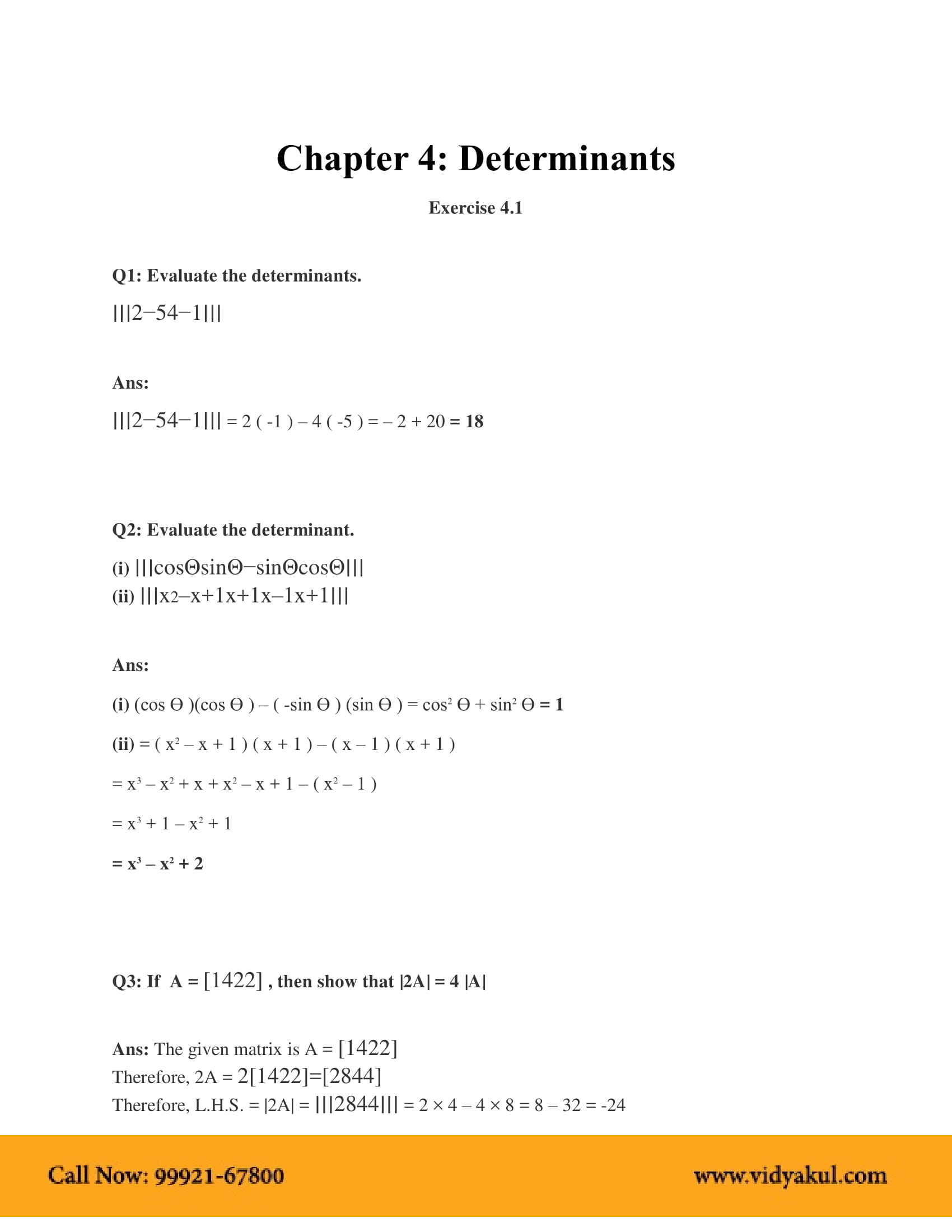 NCERT Solution Class 12 Chapter 4 Determinants – PDF Download