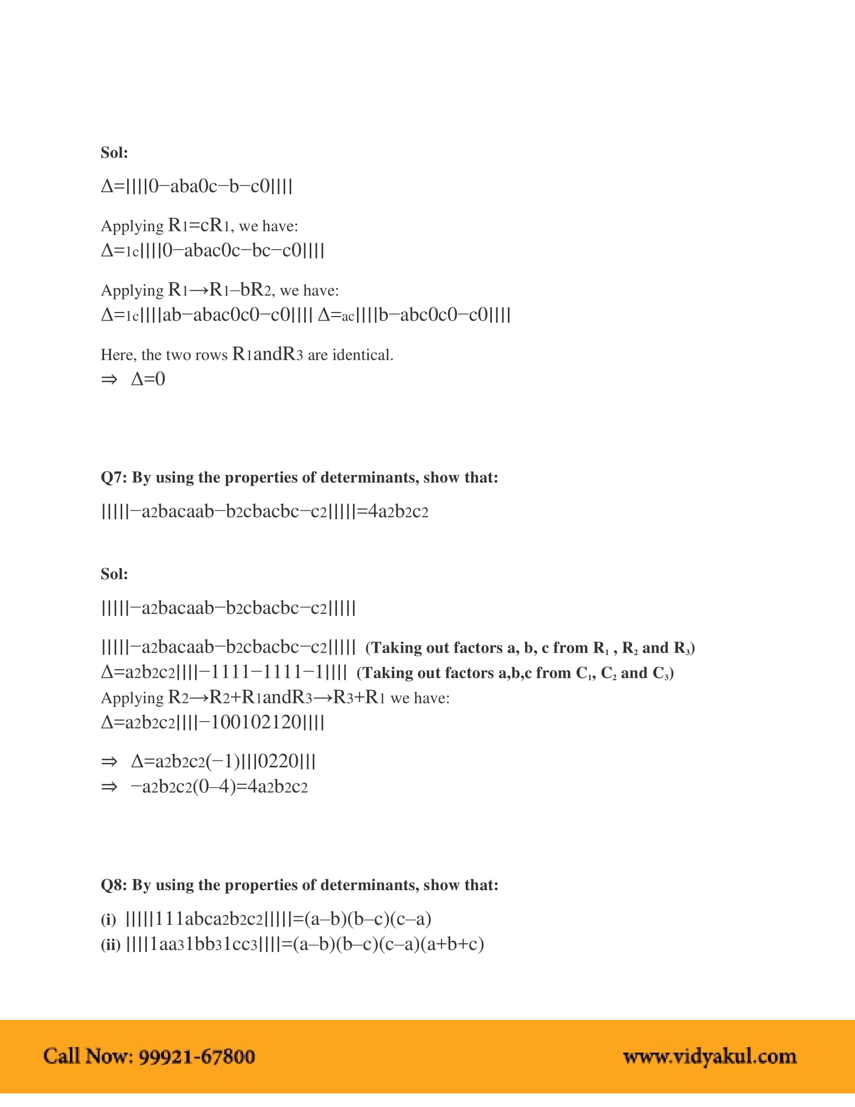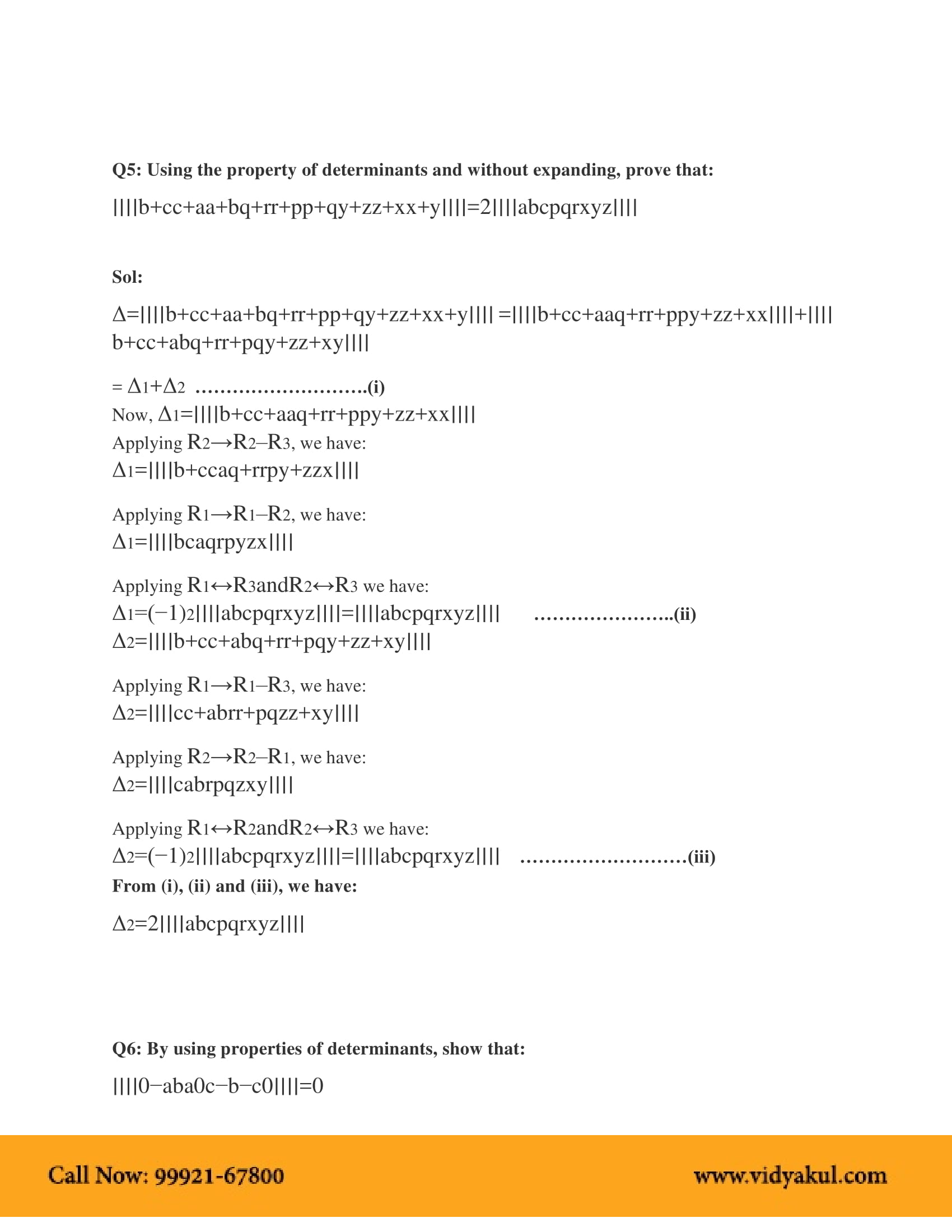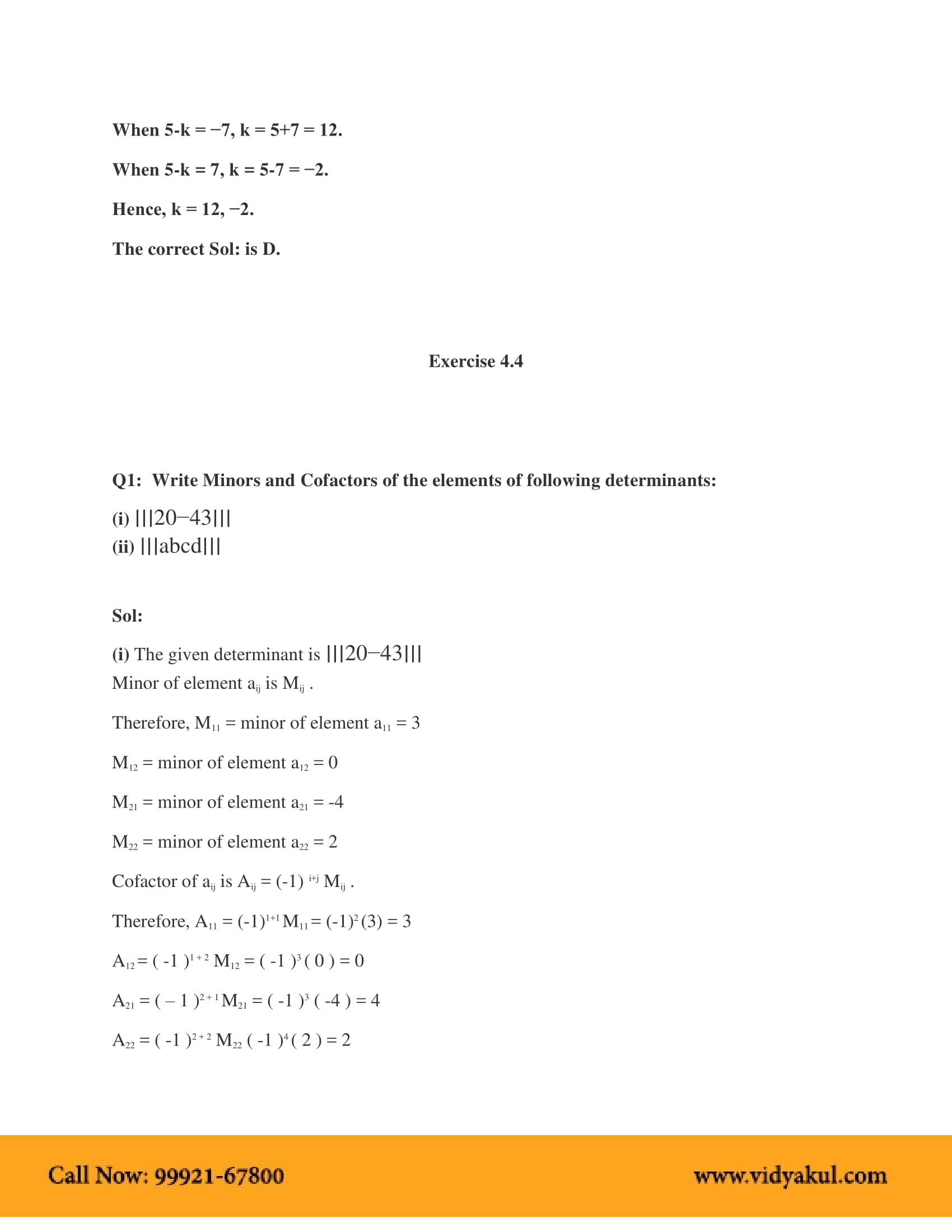 Vidyakul brings to you PDF, downloadable version of NCERT Solutions for Class 12 Maths Chapter 4 Determinants solved by our panel of experienced teachers as per NCERT (CBSE) book guidelines. All Determinants exercise questions, notes with solutions will help you to revise