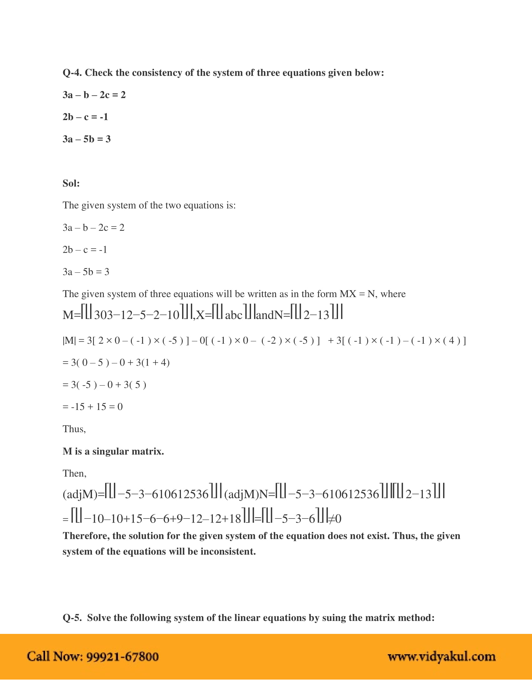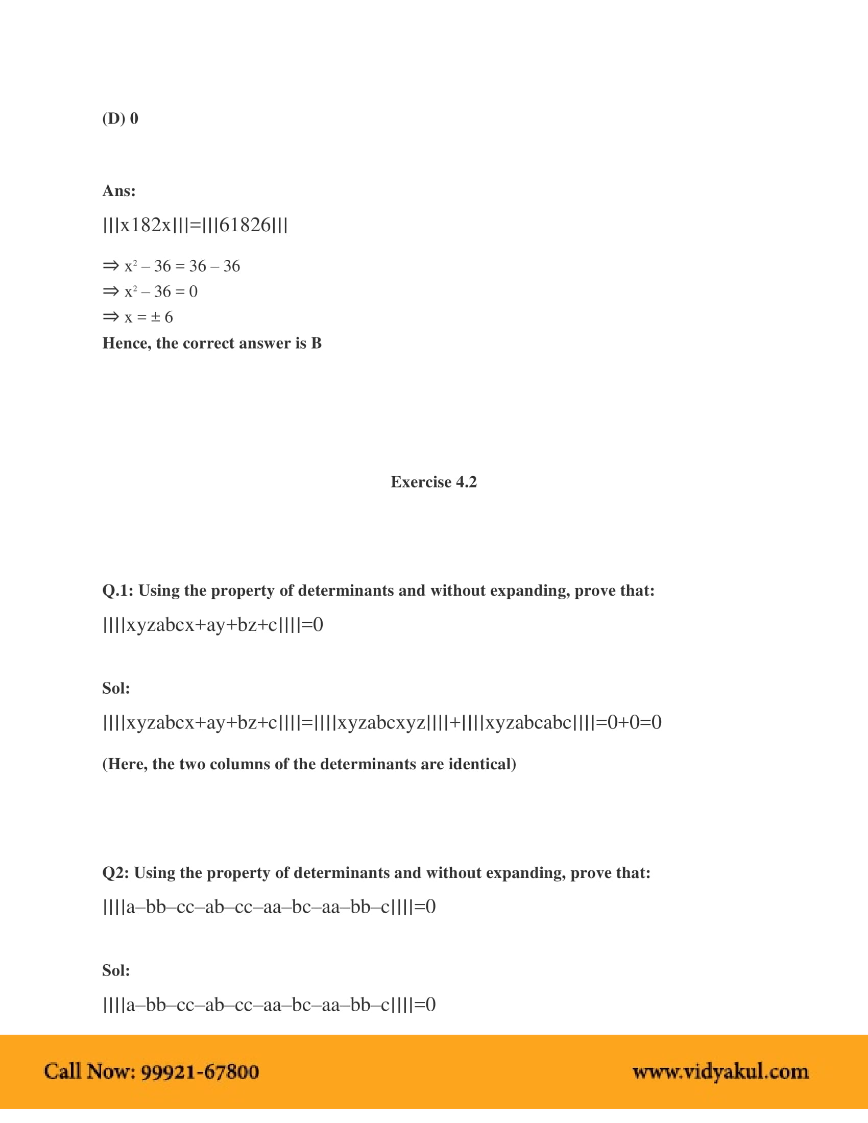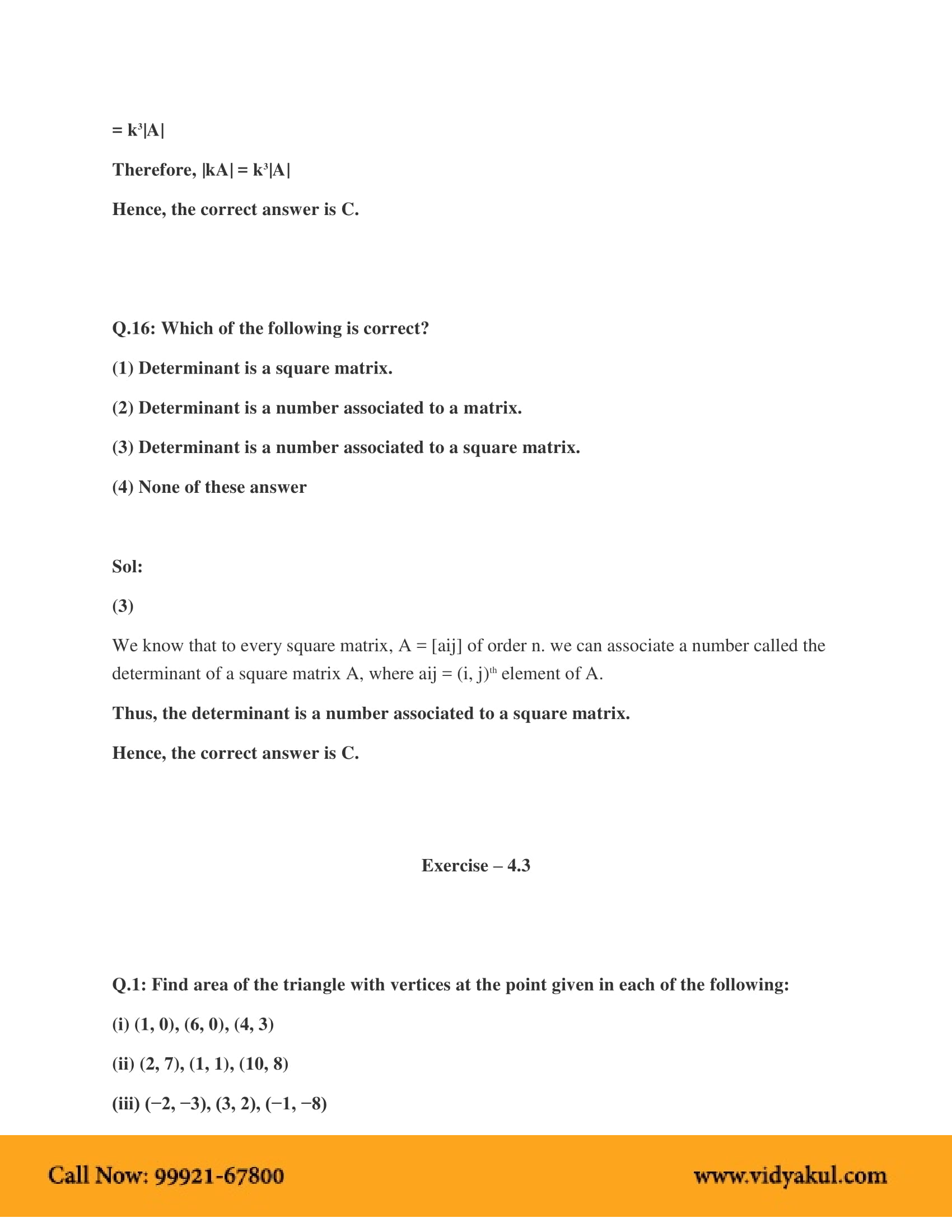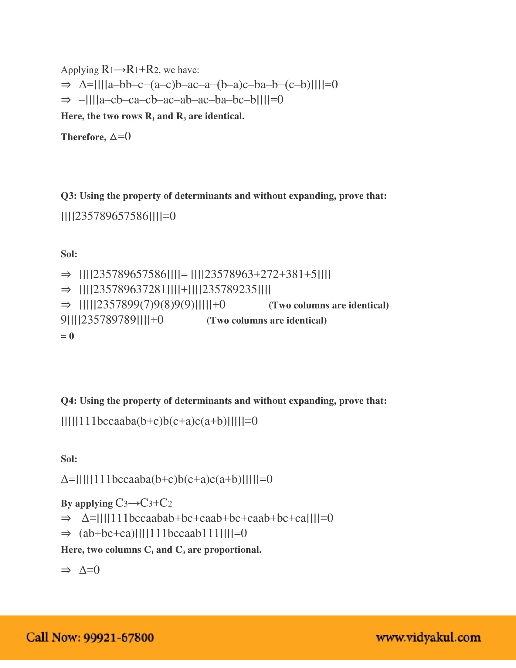 Vidyakul brings to you PDF, downloadable version of NCERT Solutions for Class 12 Maths Chapter 4 Determinants solved by our panel of experienced teachers as per NCERT (CBSE) book guidelines. All Determinants exercise questions, notes with solutions will help you to revise