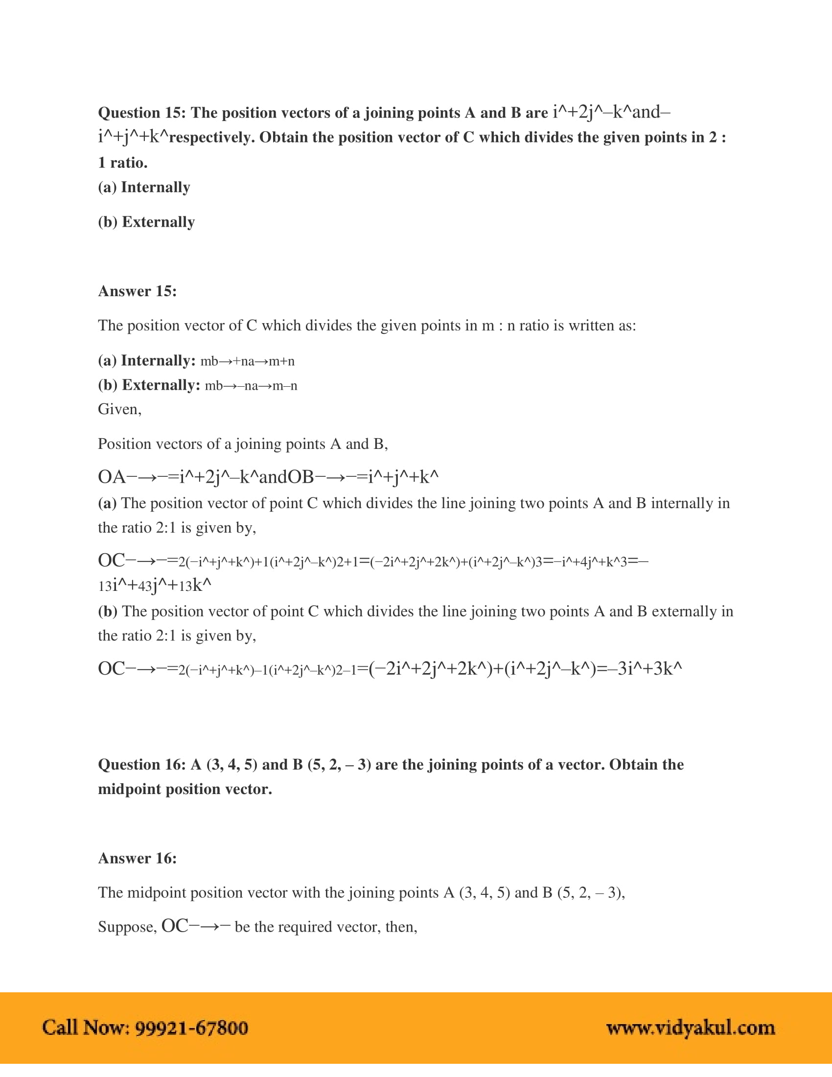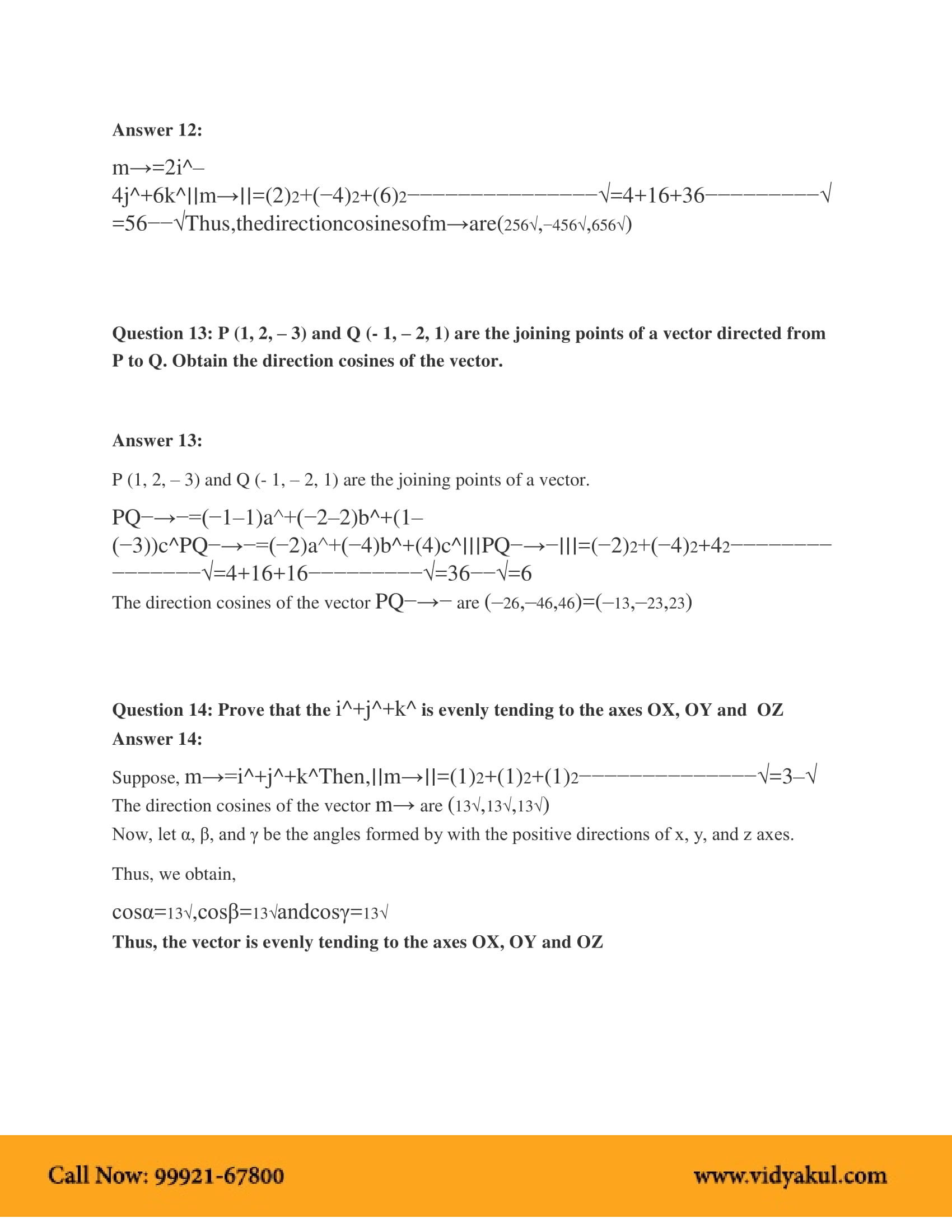 Vector algebra is one of the most interesting chapters. Practicing all the questions in the textbook and the questions provided by Vidyakul helps students achieve good test scores. Although the subject may seem a bit difficult at first, continuous practice will keep students interested. The more questions students try to solve, the more effective they can become in the subject.