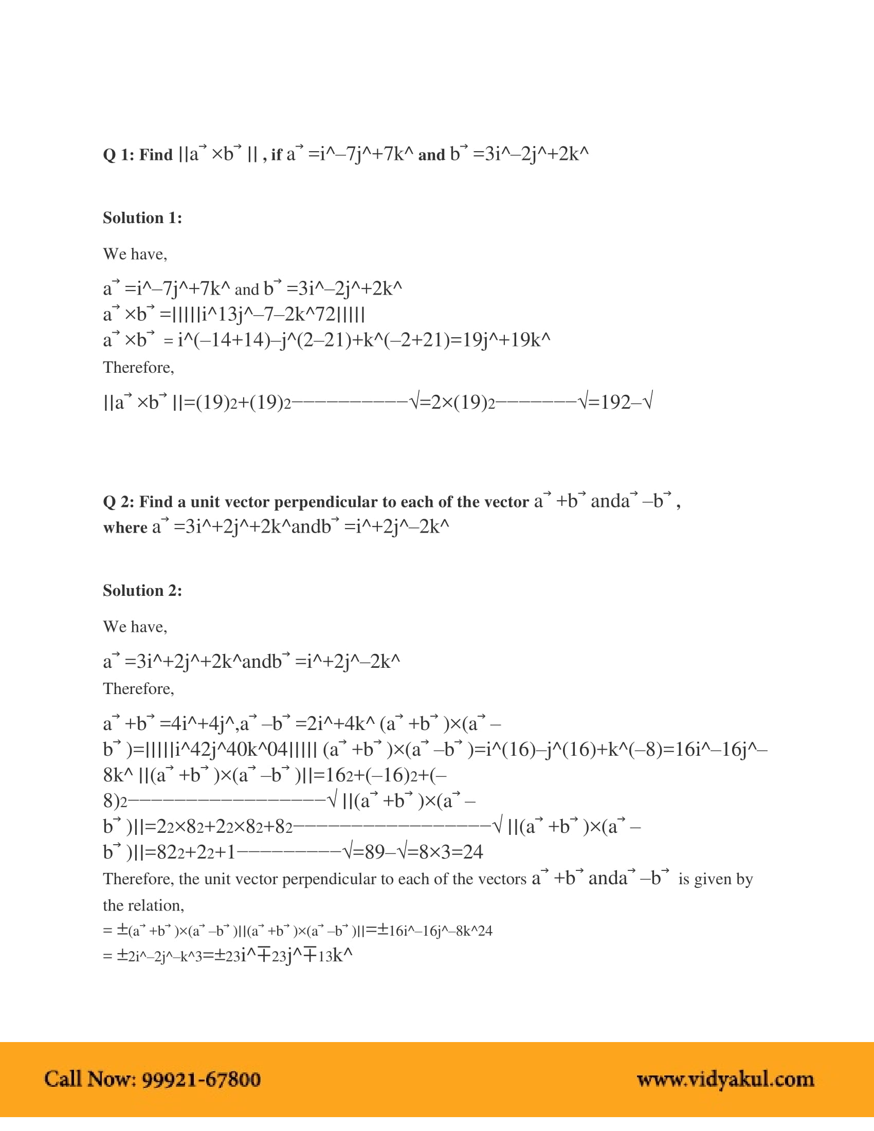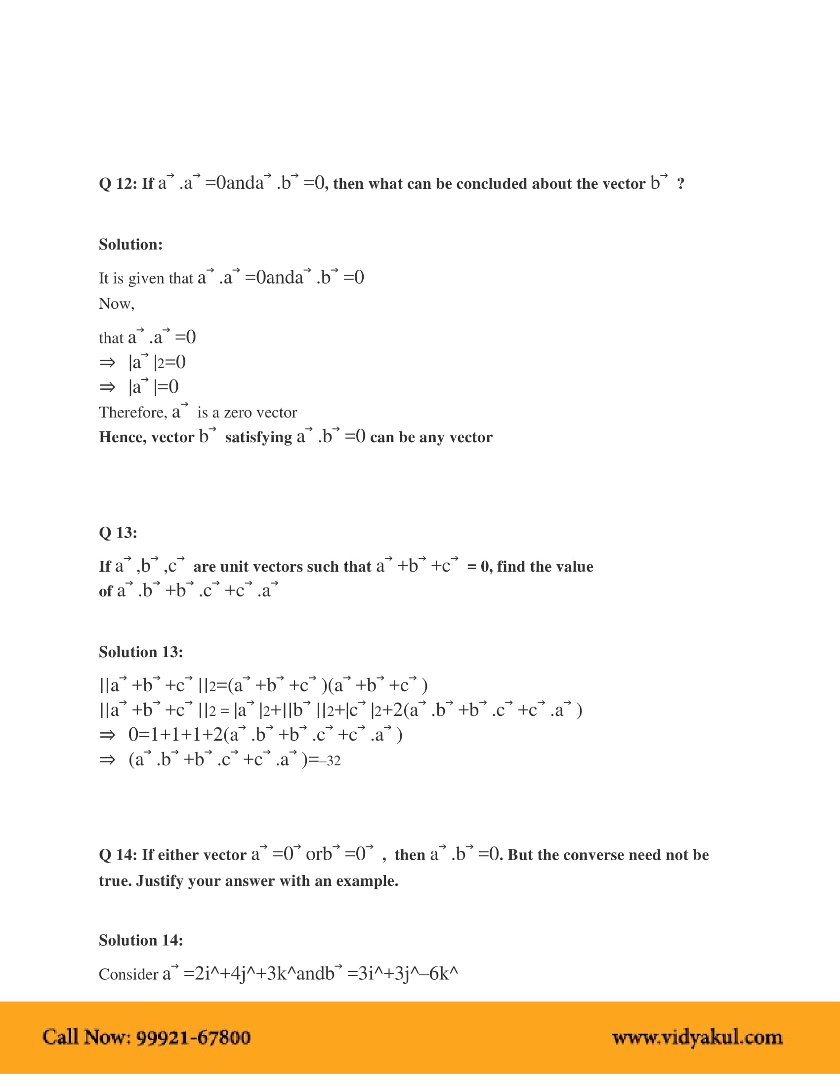 CBSE Grade 12 Math Chapter 10 talks about types and components of vectors and vector addition, vector multiplication with a scalar, product of two vectors, projection of vector onto a line and product of two vectors. Students must practice thoroughly all the questions provided by Vidyakul to do well on the tests. Scroll down to see Chapter 10 Math notes .