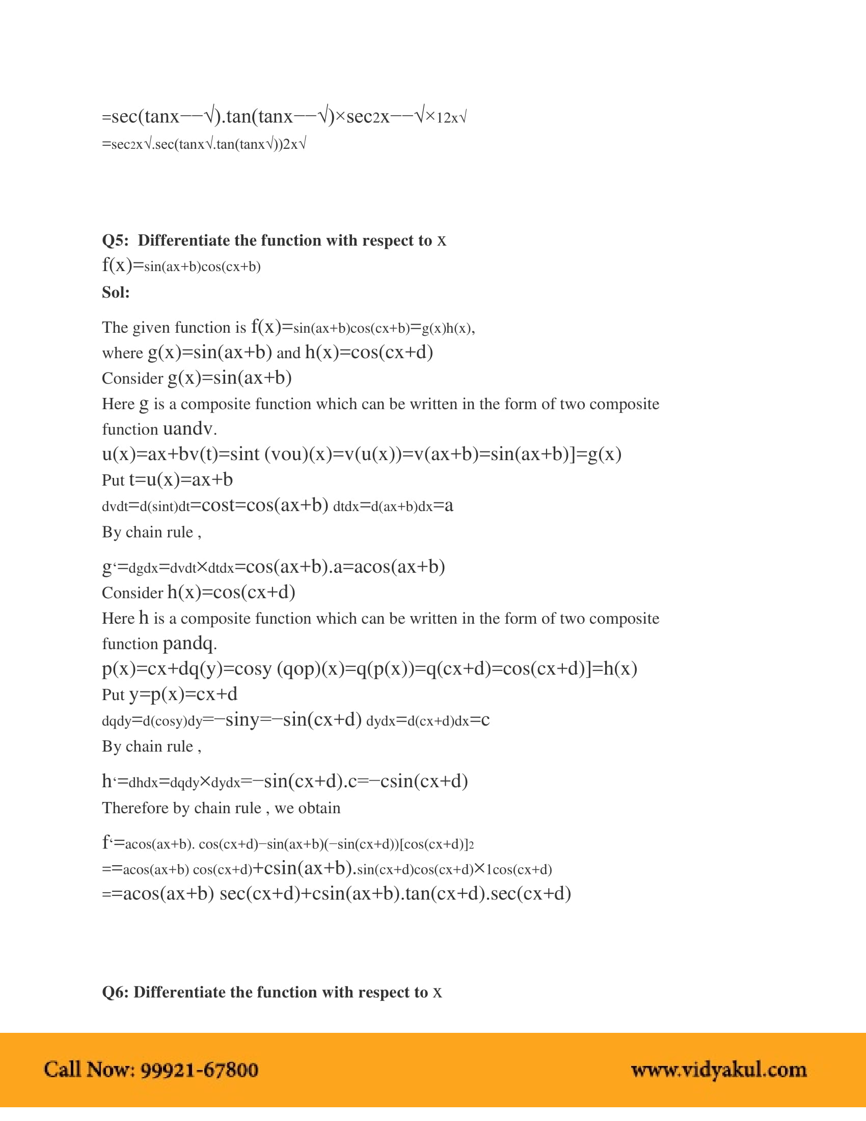 Vidyakul brings to you PDF, downloadable version of NCERT Solutions for Class 12 Maths Chapter 5, Continuity and Differentiability solved by our panel of experienced teachers as per NCERT (CBSE) book guidelines. All Continuity and Differentiability exercise questions, notes with solutions will help you to revise complete syllabus with ease and score maximum marks. Cover all important questions and solution of chapter – 5 Continuity and Differentiability. Register now and get access to our videos for a detailed explanation of the concept and other resources to help you with this chapter in depth.