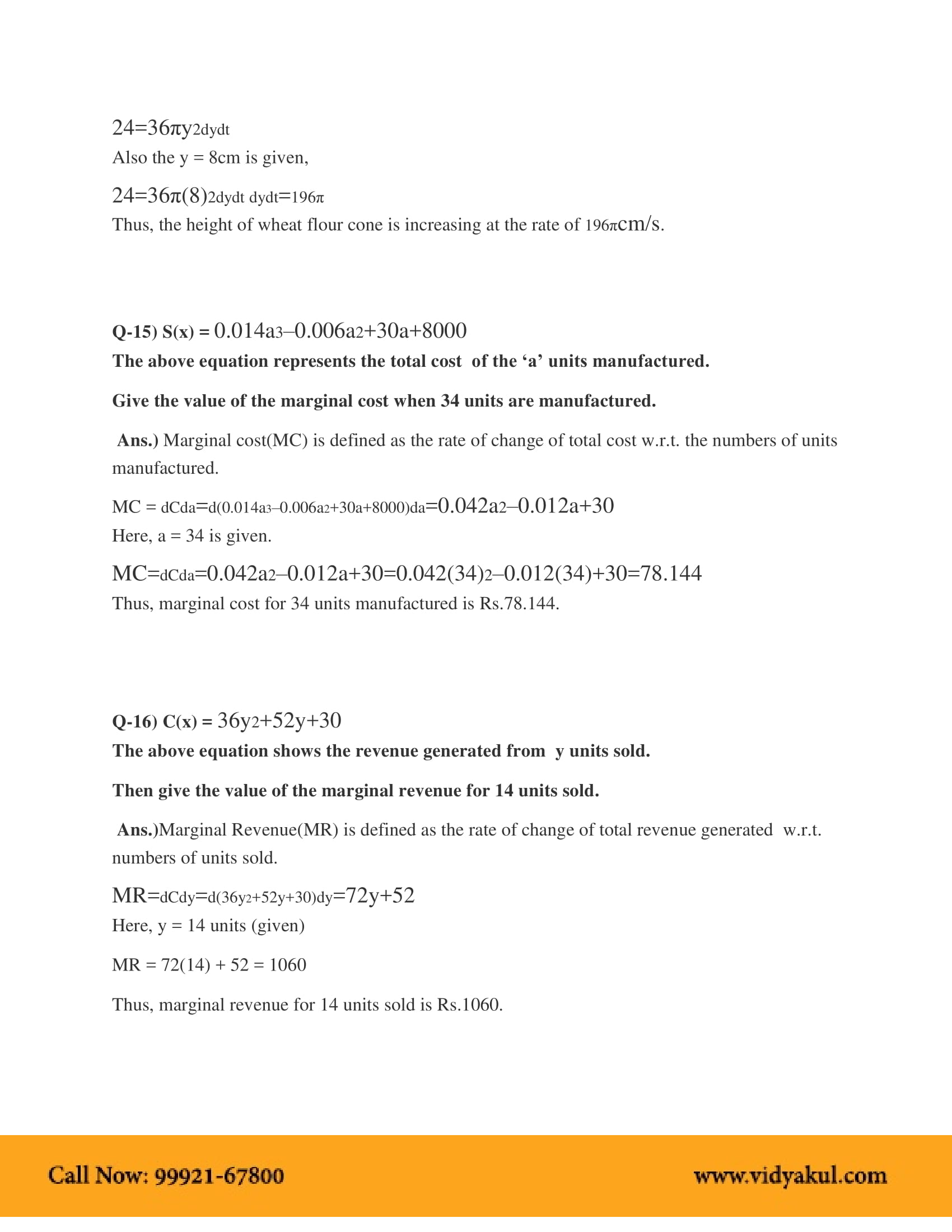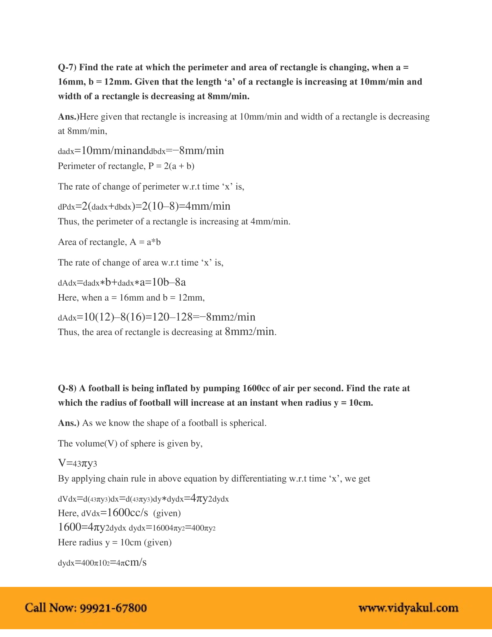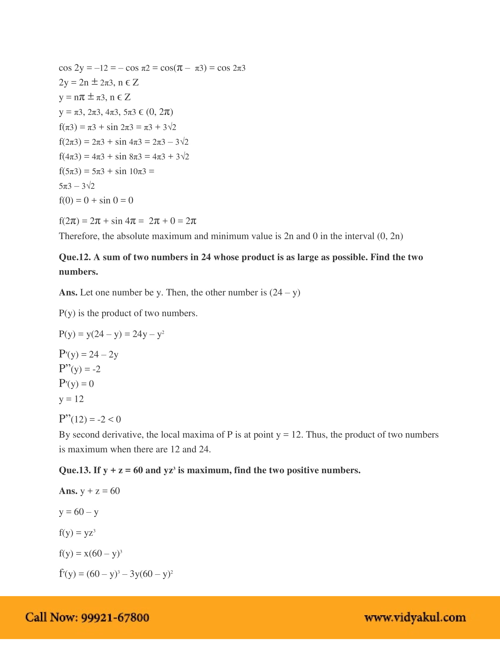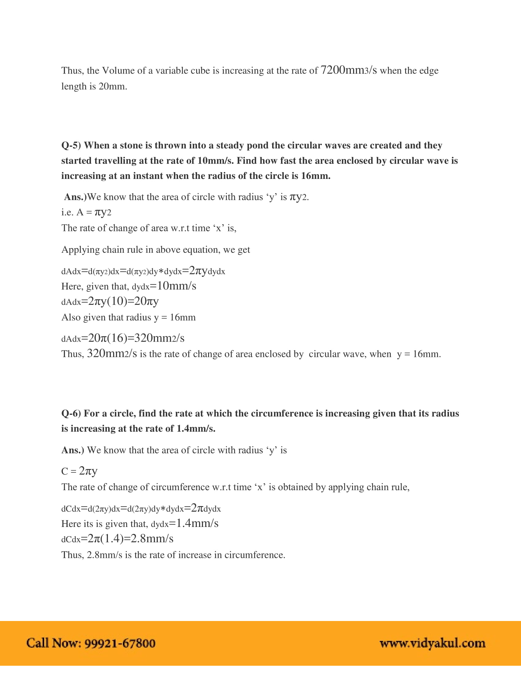 Vidyakul brings to you PDF, downloadable version of NCERT Solutions for Class 12 Maths Chapter 6 Application of Derivatives solved by our panel of experienced teachers as per NCERT (CBSE) book guidelines. All Application of Derivatives exercise questions, notes with solutions will help you to revise