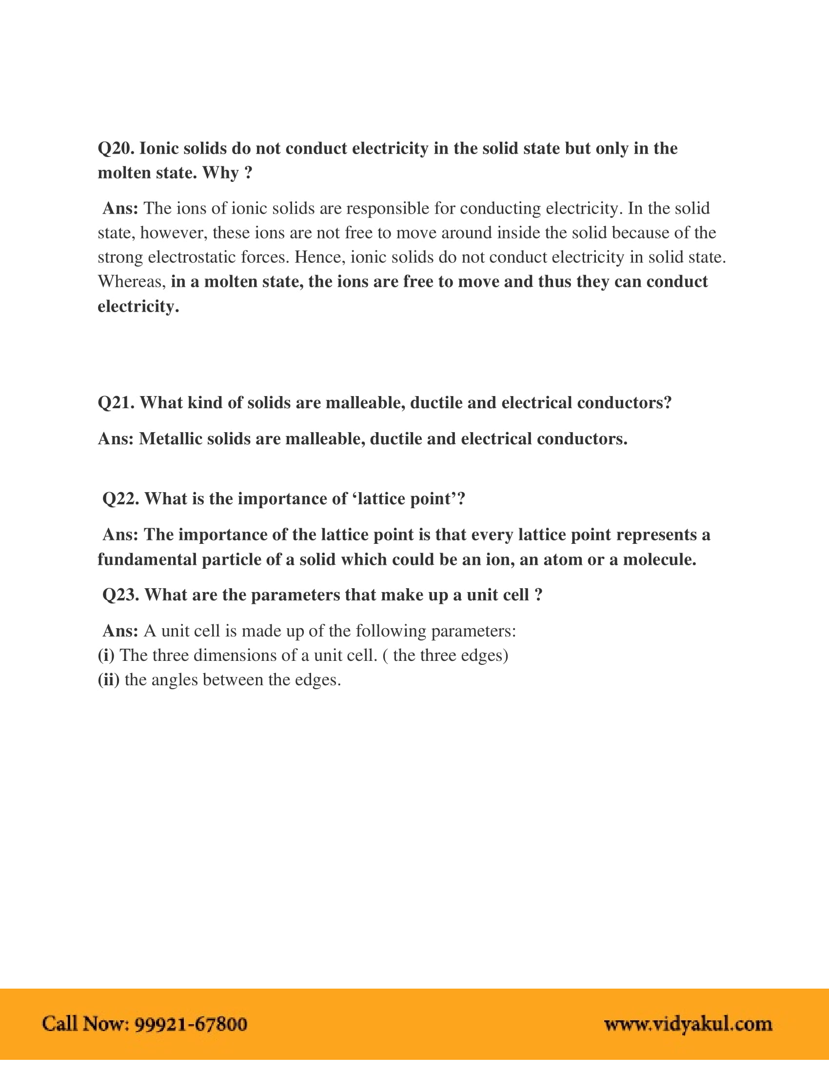Download the FREE PDF of Chemistry Class 12 NCERT Solutions Chapter 1-The Solid State and start your preparation with Vidyakul!