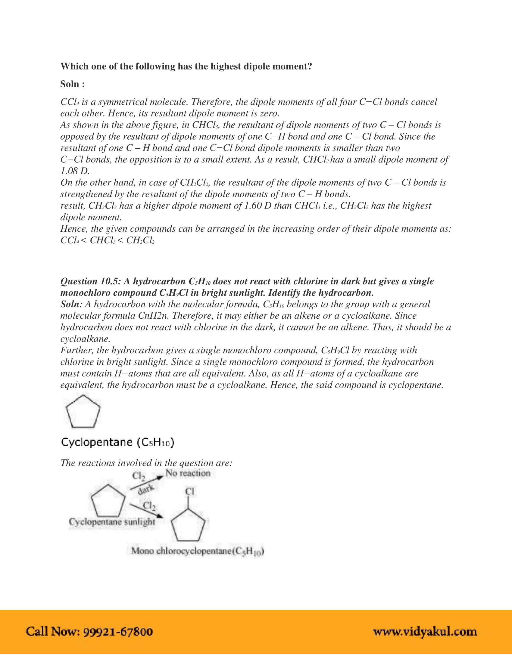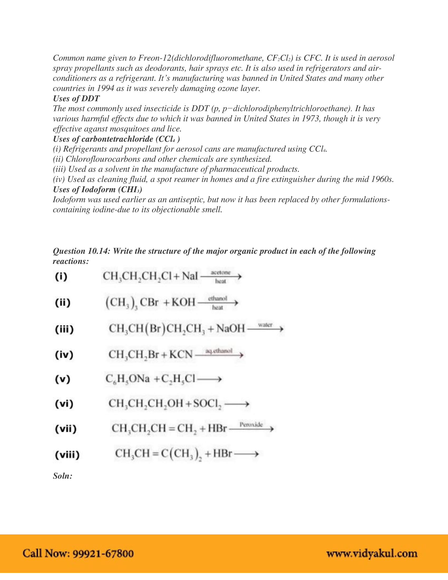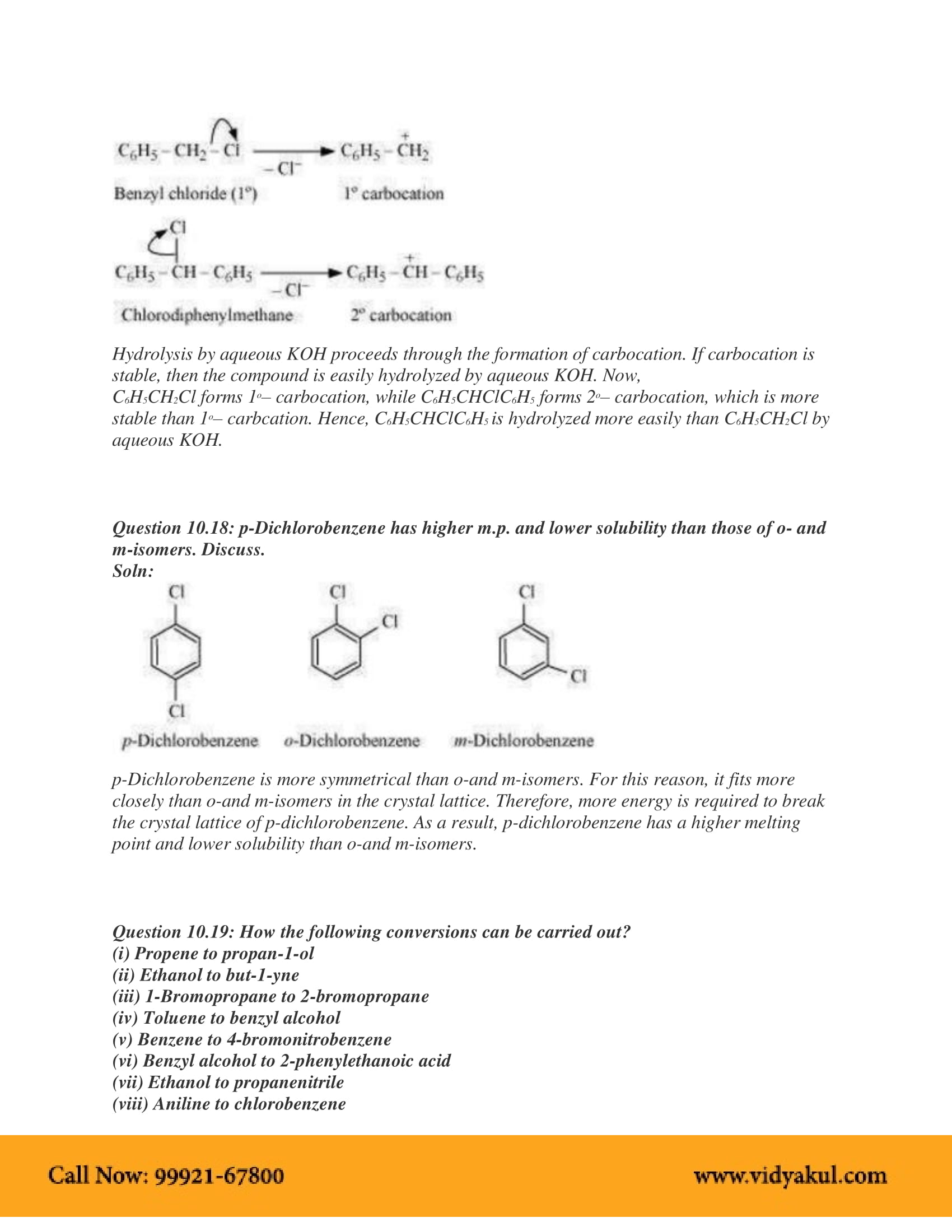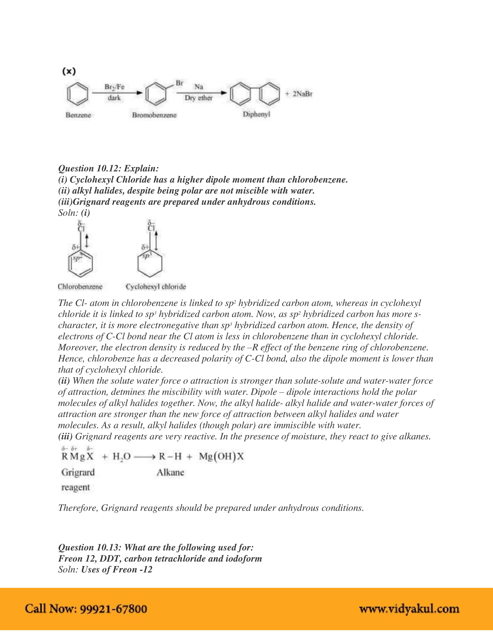 Vidyakul brings to you PDF, downloadable version of NCERT Solution Class 12 Chemistry Chapter 10 Haloalkanes and Haloarenes solved by our panel of experienced teachers as per NCERT (CBSE) book guidelines. All Haloalkanes and Haloarenes exercise questions, notes with solutions will help you to revise