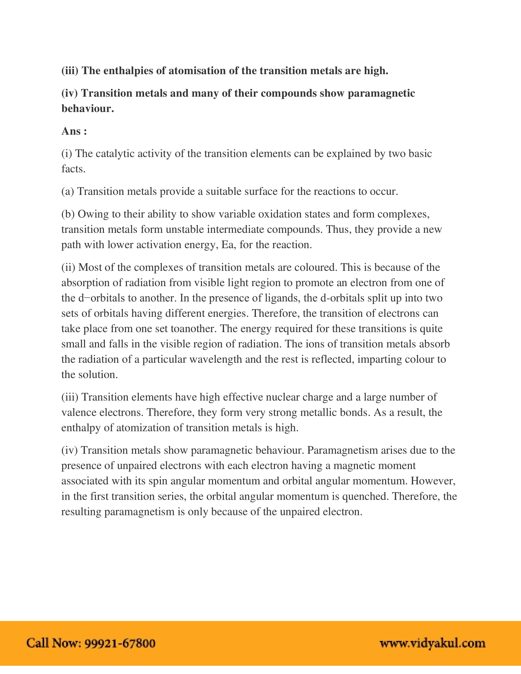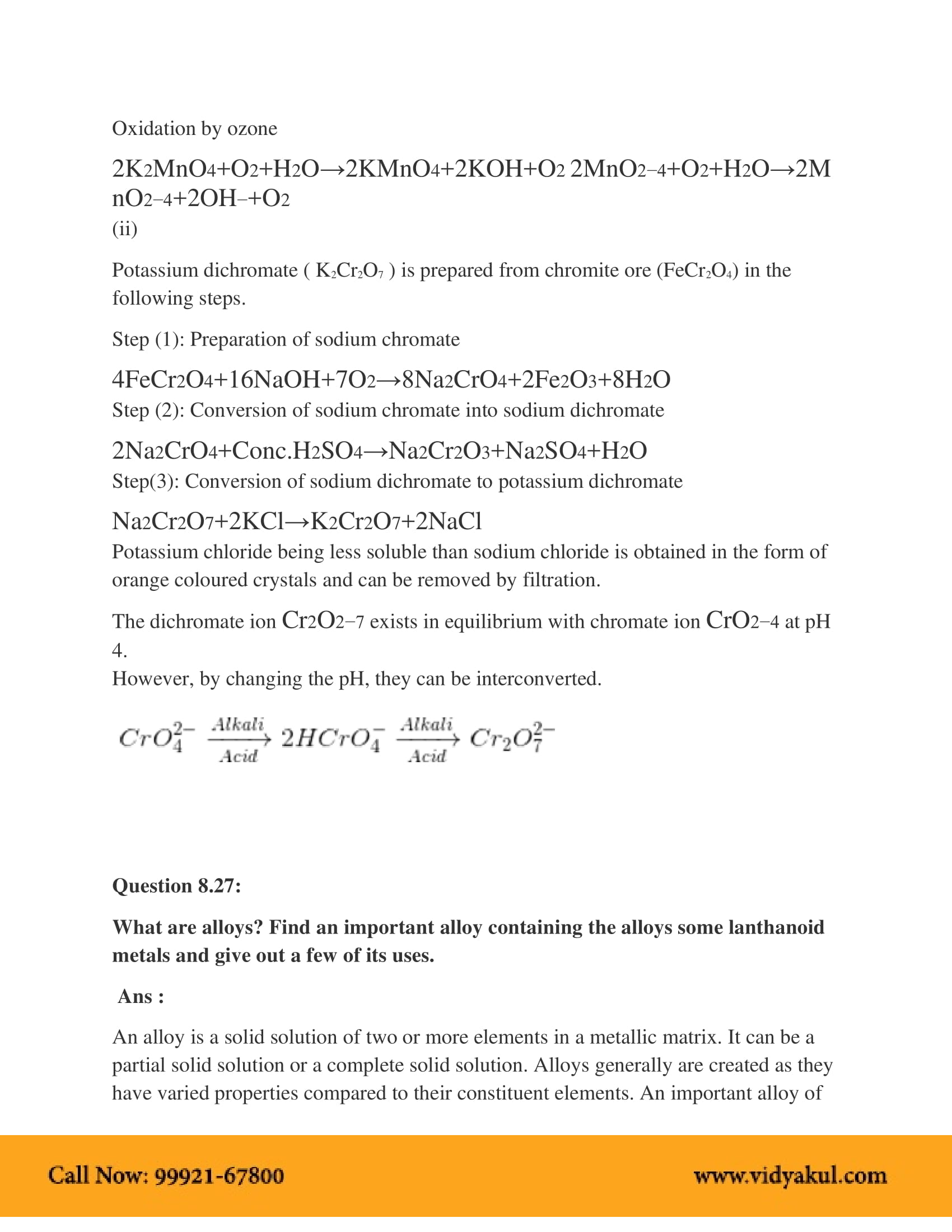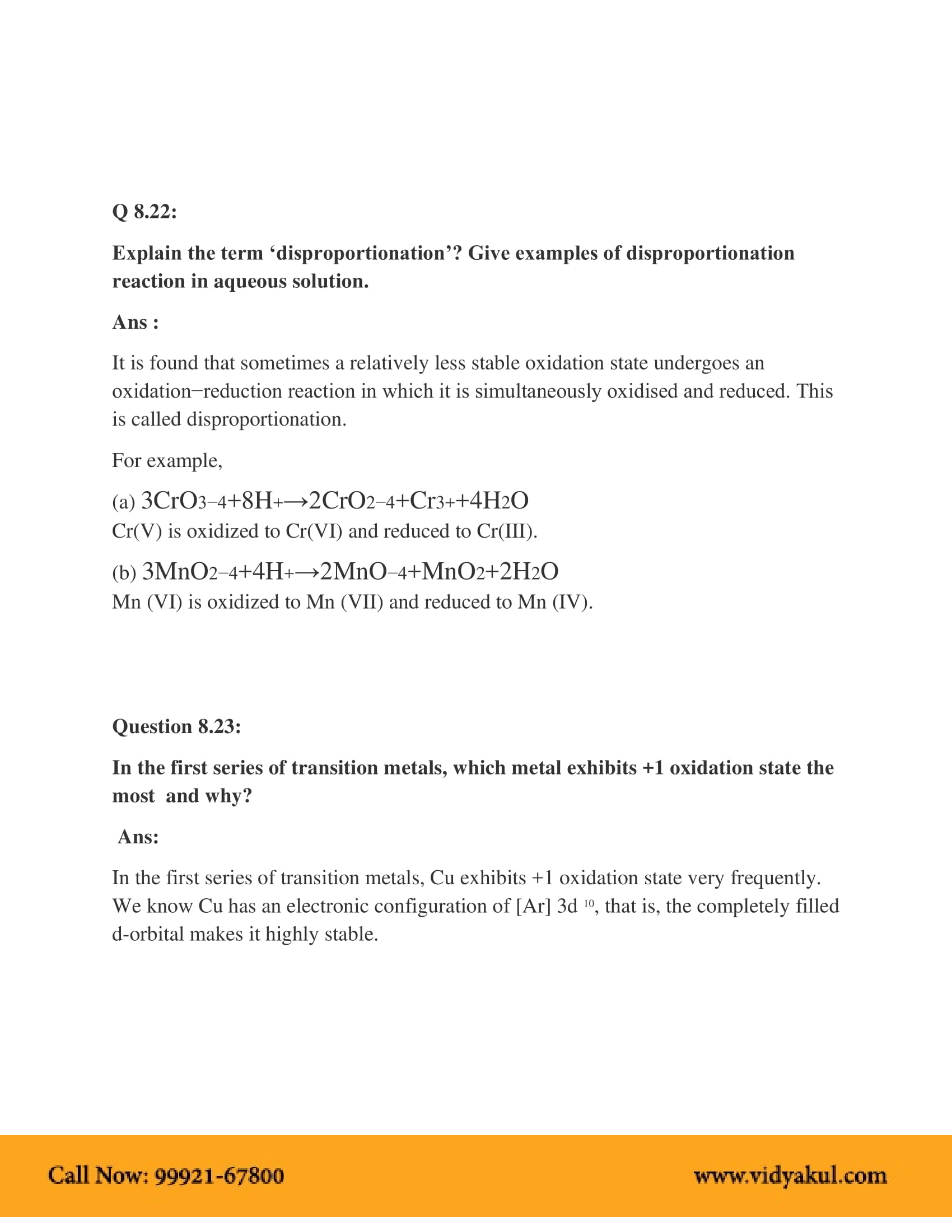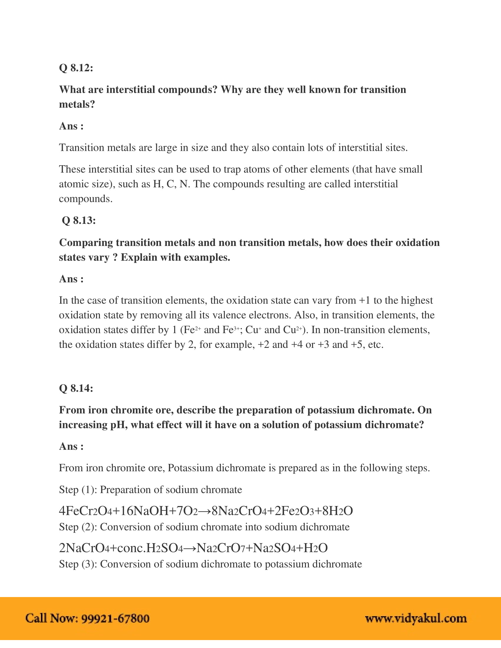 Vidyakul brings to you PDF, downloadable version of NCERT Solution Class 12 Chemistry Chapter 8 D and F Block Elements solved by our panel of experienced teachers as per NCERT (CBSE) book guidelines. All D and F Block Elements exercise questions, notes with solutions will help you to revise