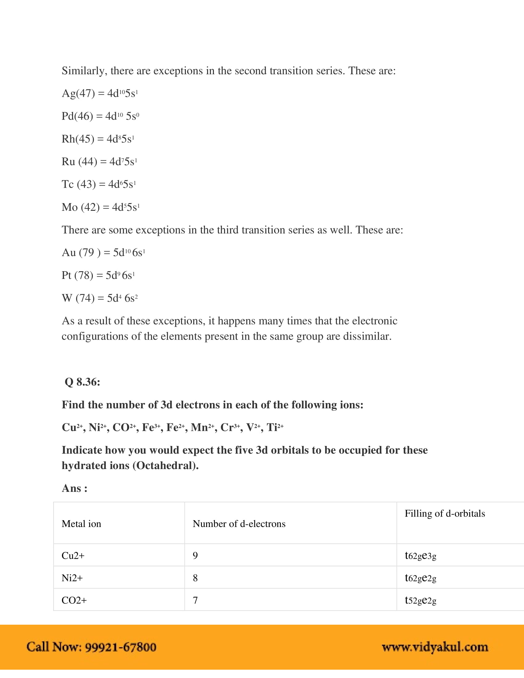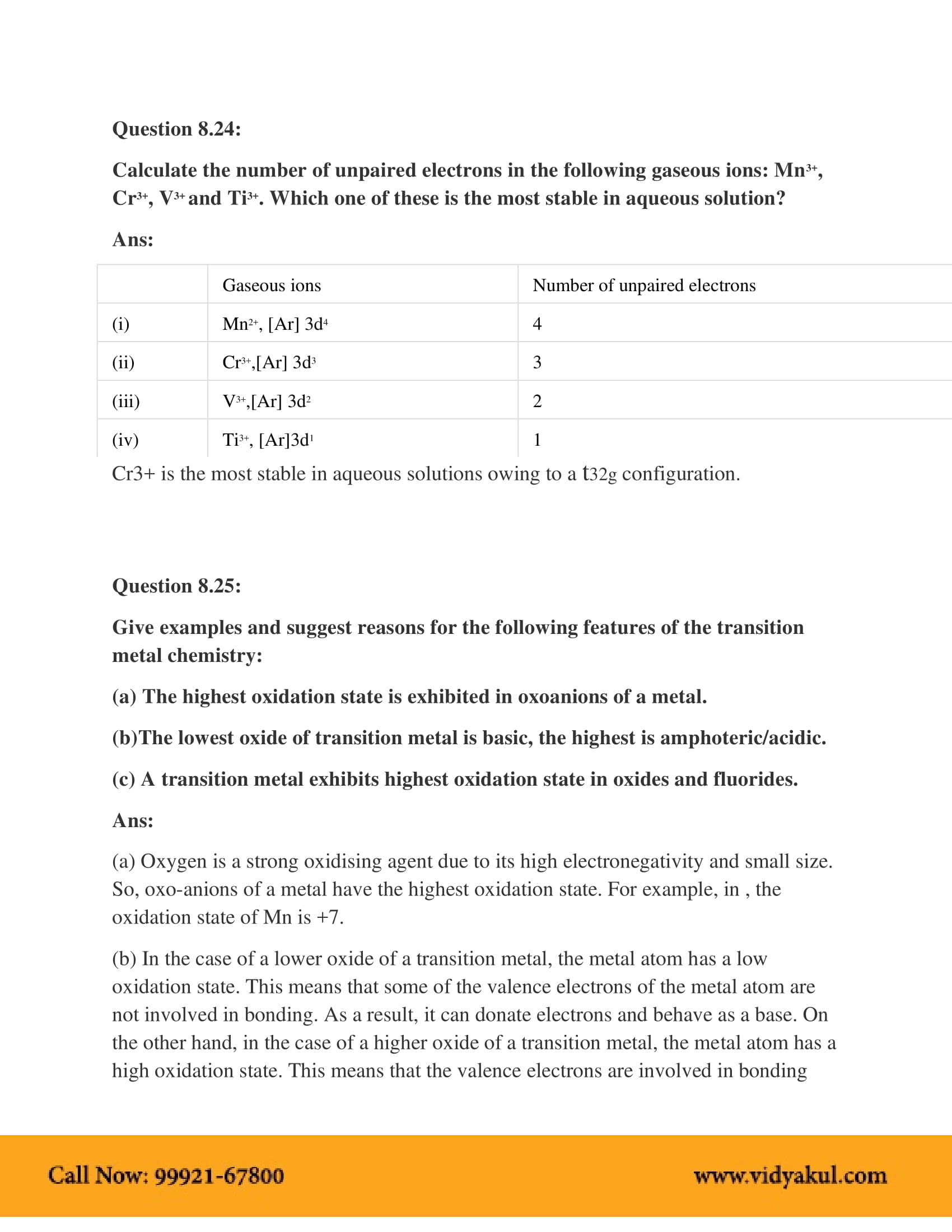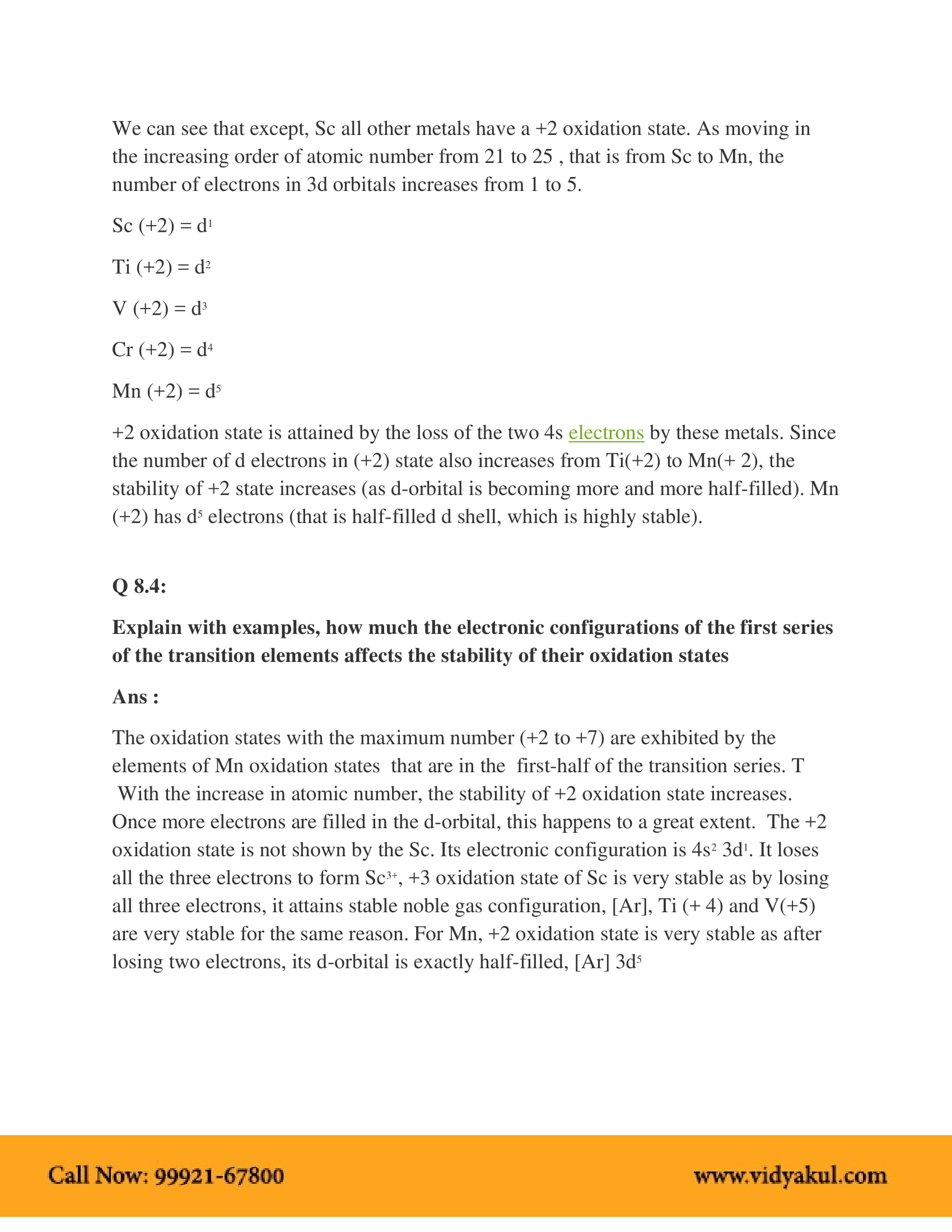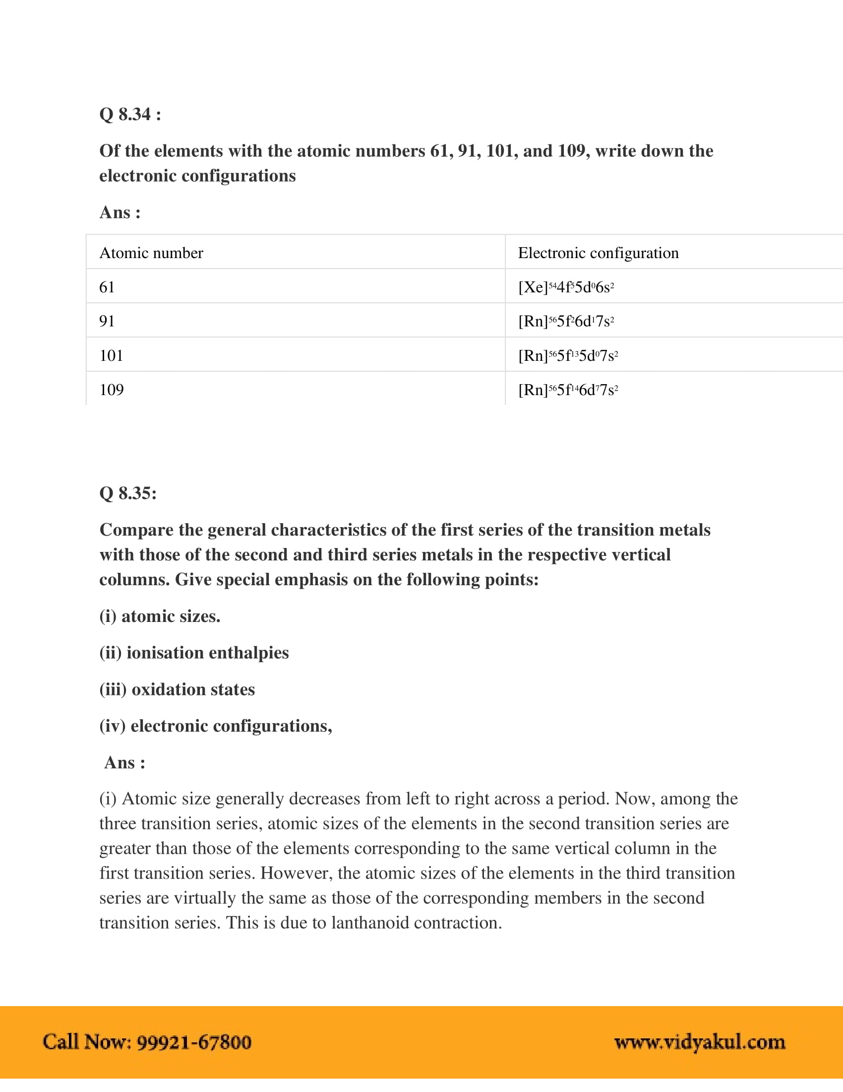 Vidyakul brings to you PDF, downloadable version of NCERT Solution Class 12 Chemistry Chapter 8 D and F Block Elements solved by our panel of experienced teachers as per NCERT (CBSE) book guidelines. All D and F Block Elements exercise questions, notes with solutions will help you to revise