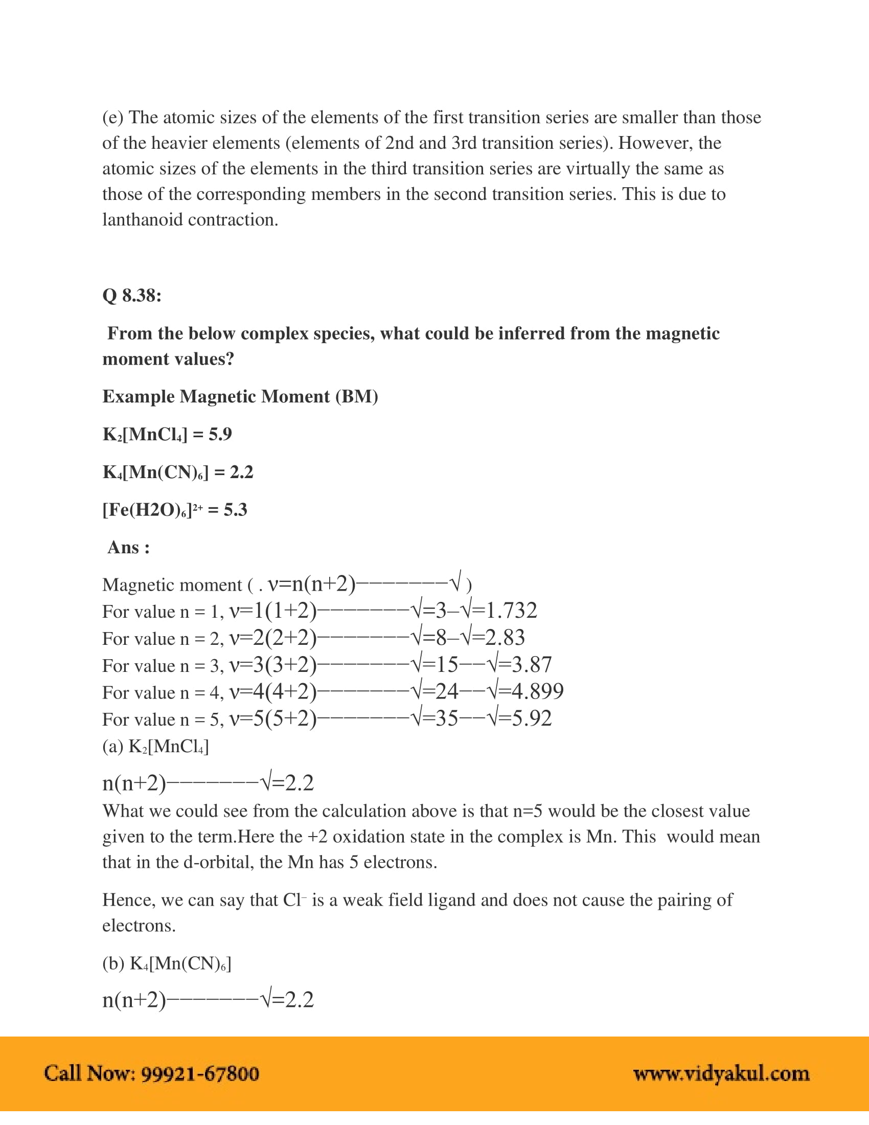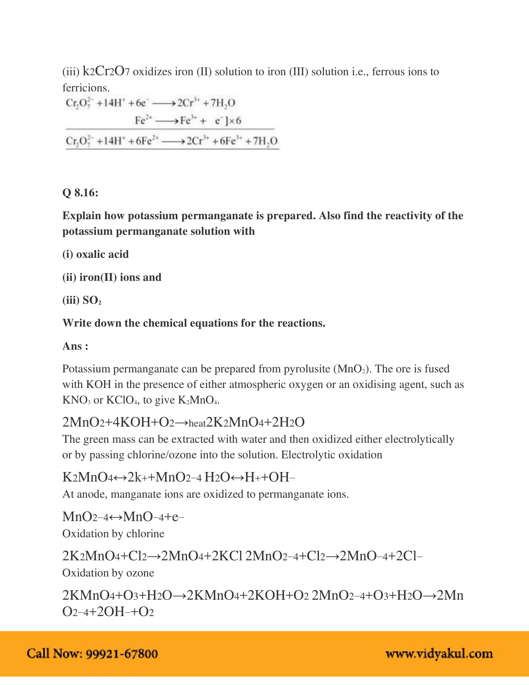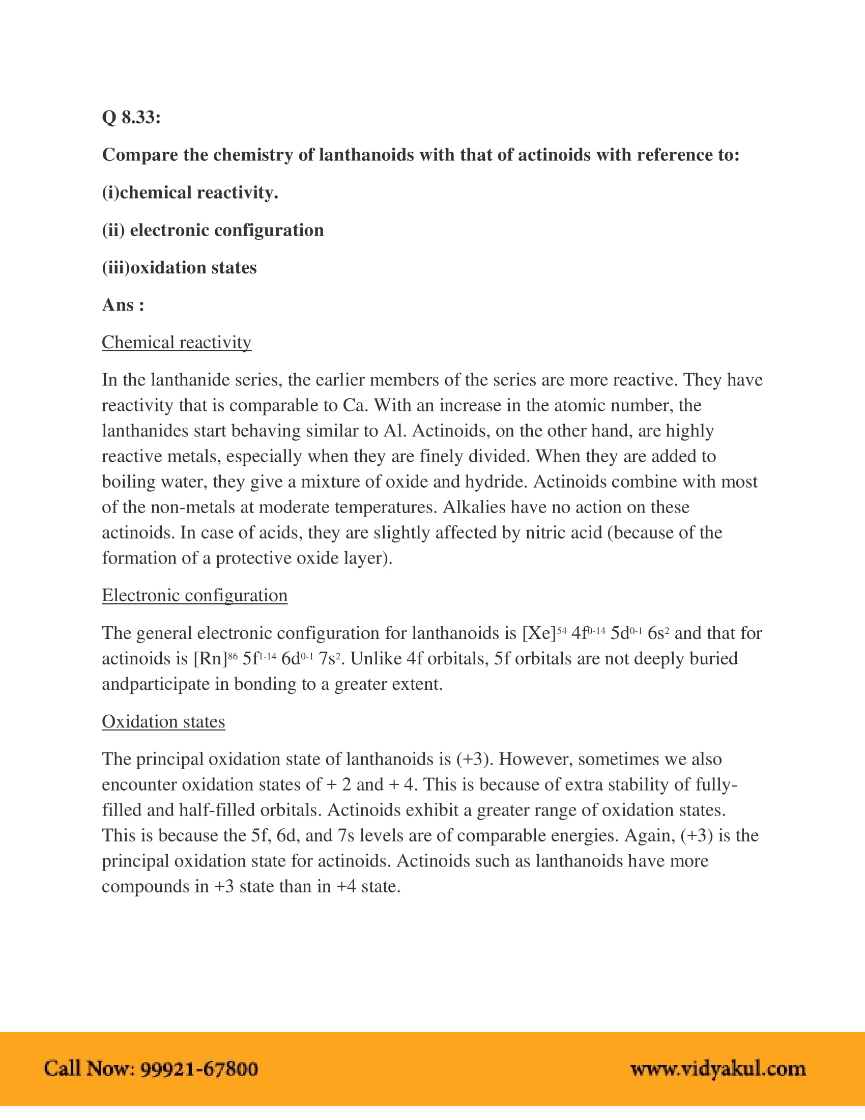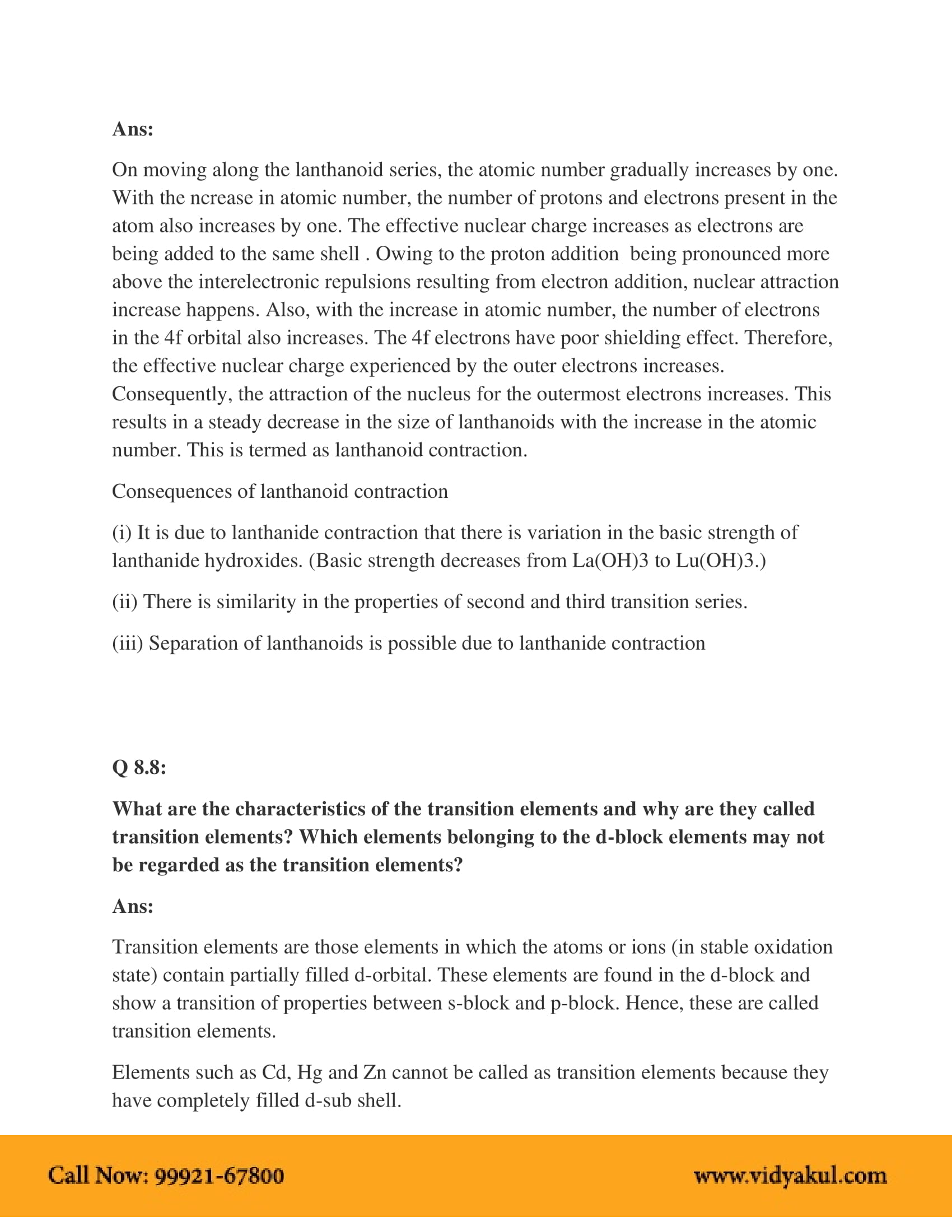 Vidyakul brings to you PDF, downloadable version of NCERT Solution Class 12 Chemistry Chapter 8 D and F Block Elements solved by our panel of experienced teachers as per NCERT (CBSE) book guidelines. All D and F Block Elements exercise questions, notes with solutions will help you to revise