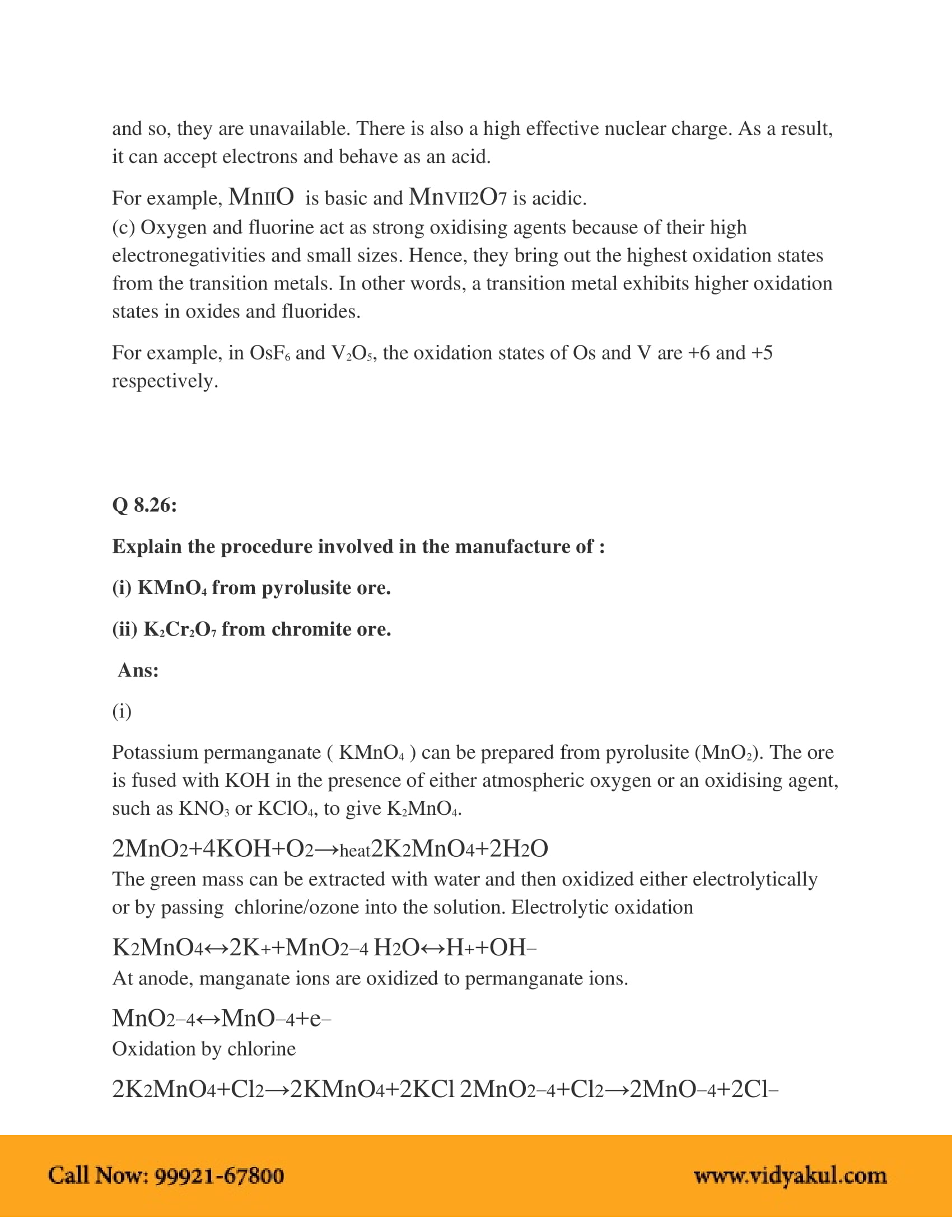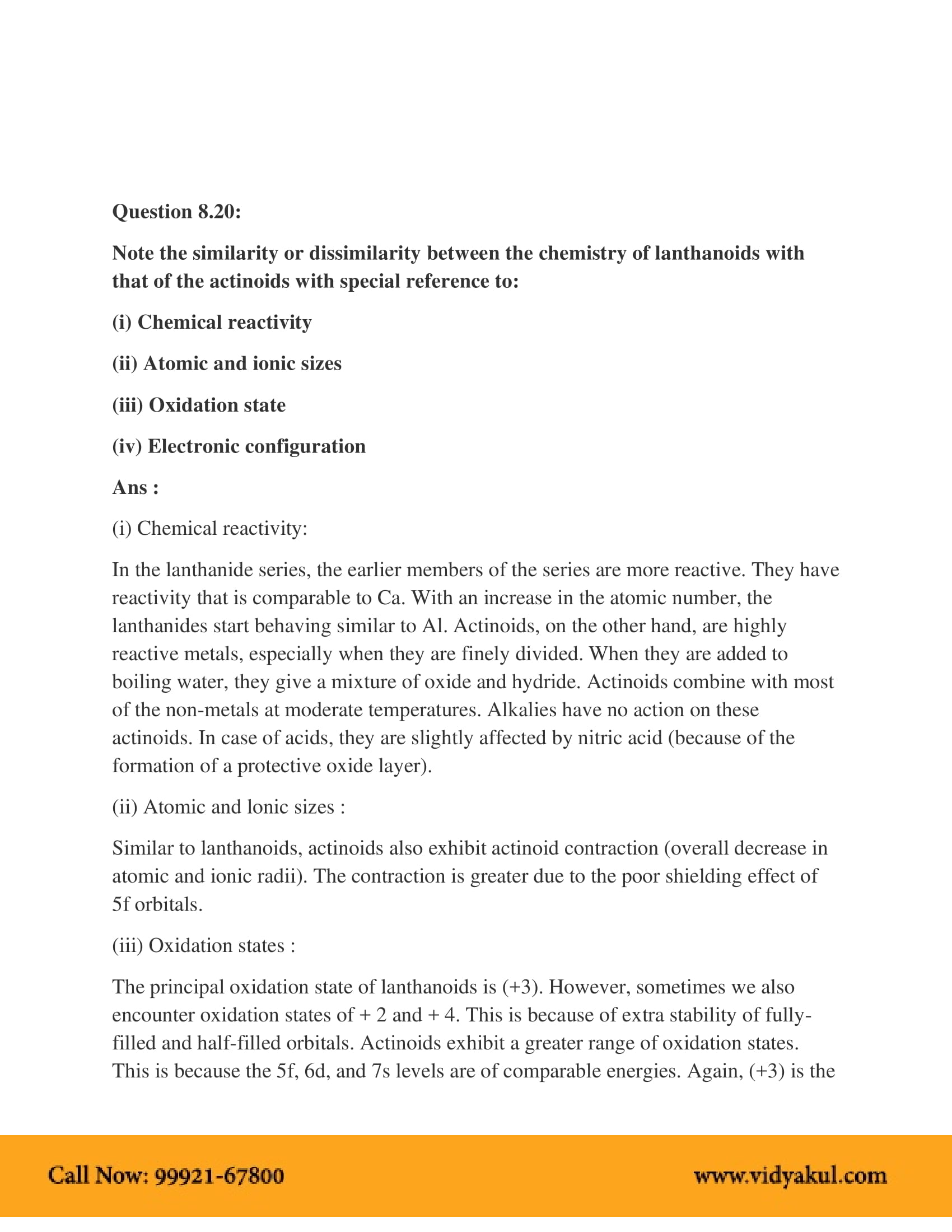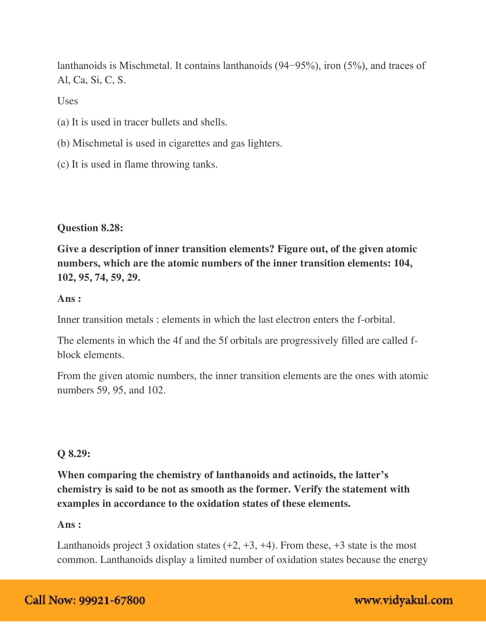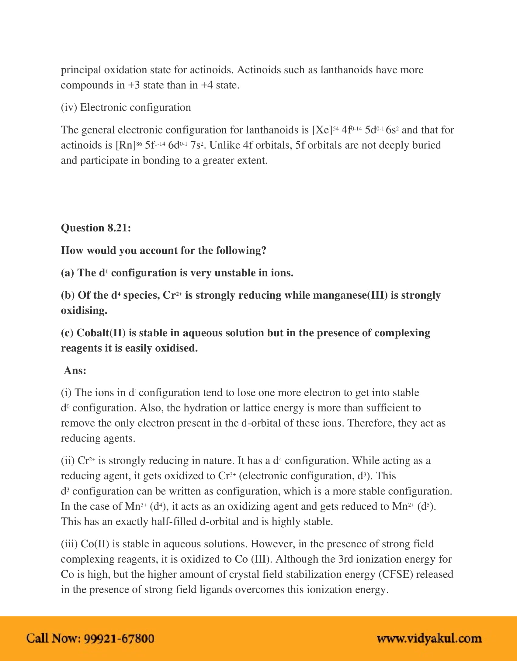 Vidyakul brings to you PDF, downloadable version of NCERT Solution Class 12 Chemistry Chapter 8 D and F Block Elements solved by our panel of experienced teachers as per NCERT (CBSE) book guidelines. All D and F Block Elements exercise questions, notes with solutions will help you to revise