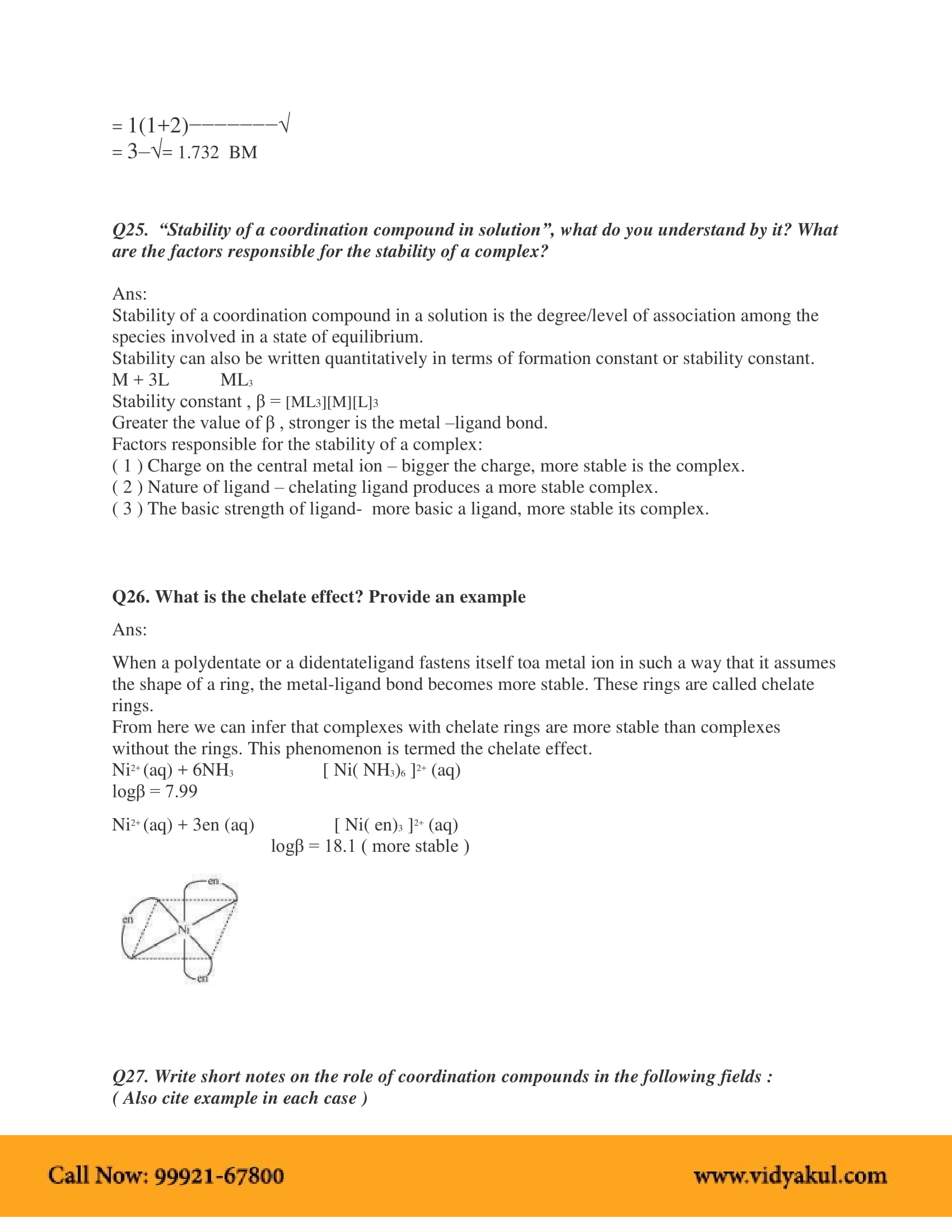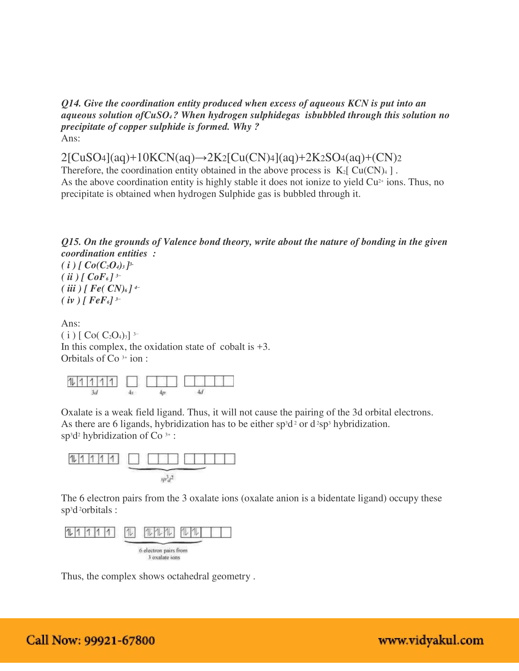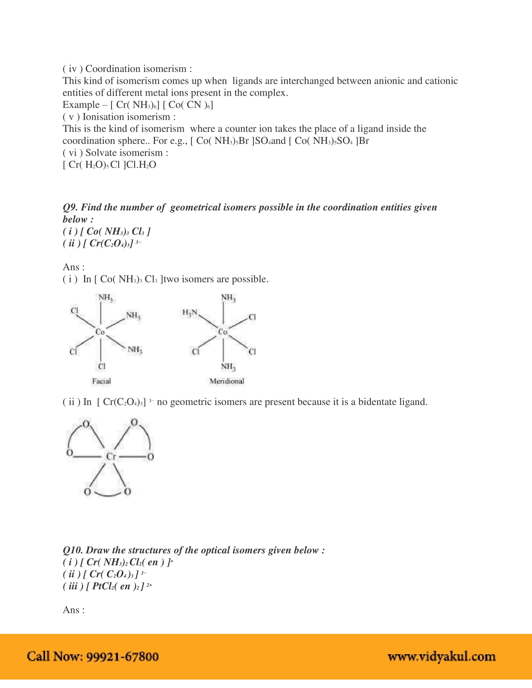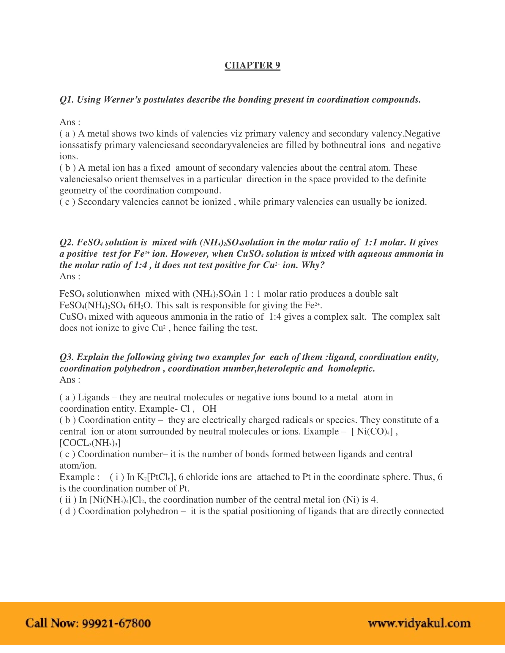 Vidyakul brings to you PDF, downloadable version of NCERT Solution Class 12 Chemistry Chapter 9 Coordination Compounds solved by our panel of experienced teachers as per NCERT (CBSE) book guidelines. All Coordination Compounds exercise questions, notes with solutions will help you to revise