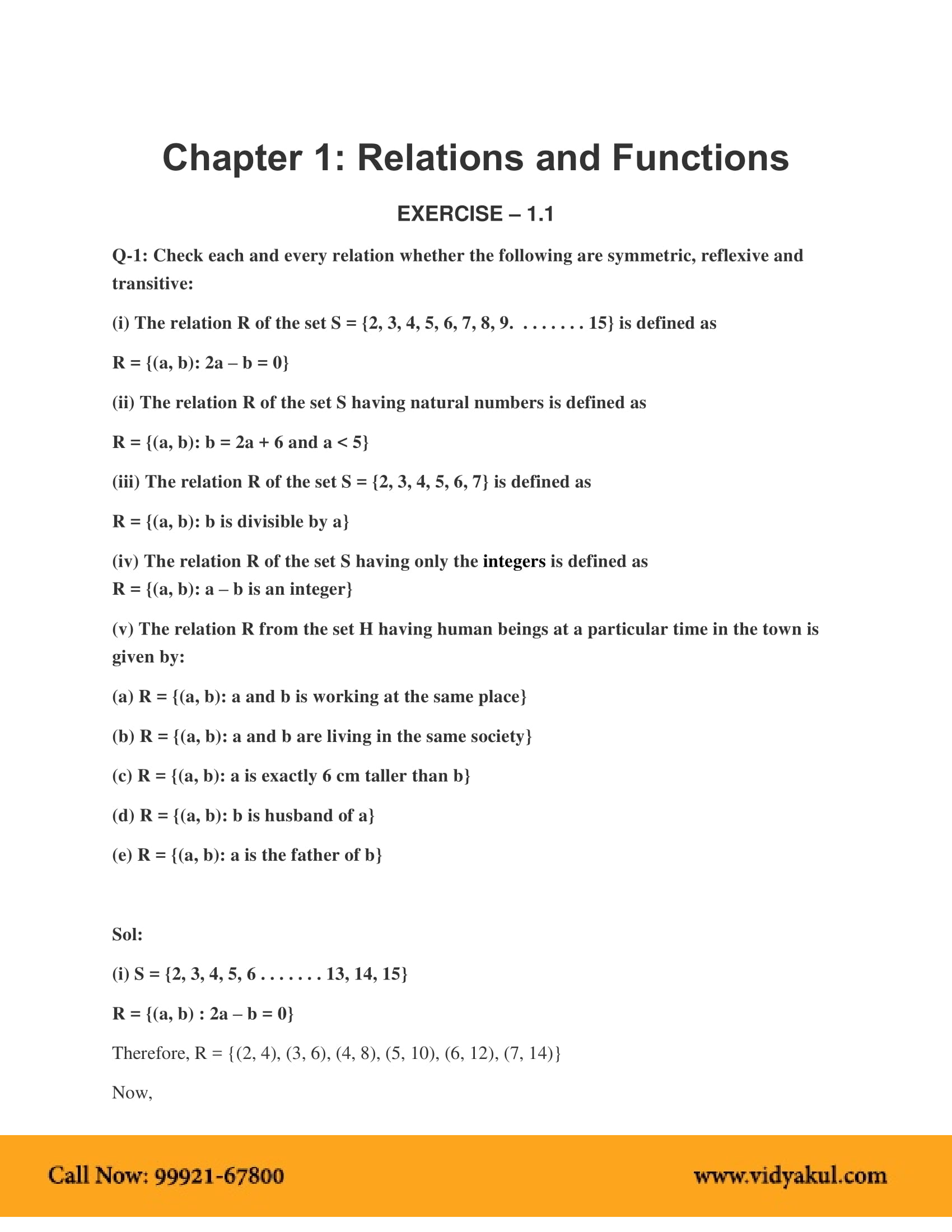 Download the FREE PDF of Maths Class 12 NCERT Solutions Chapter 1-Relations and Functions and start your preparation with Vidyakul!
