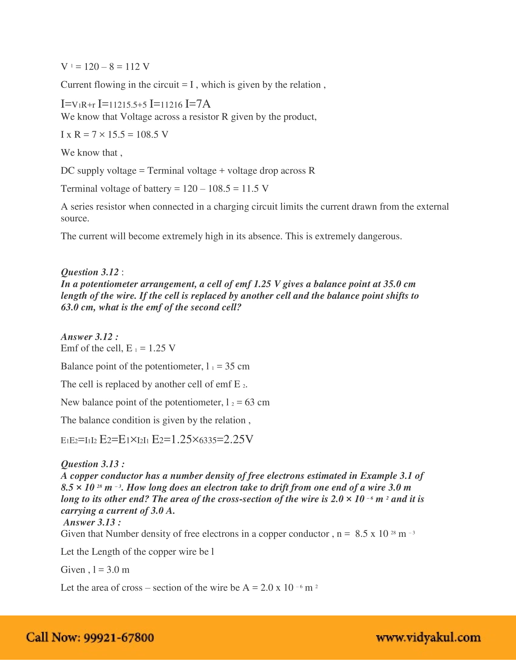 Vidyakul presents NCERT Solutions for Class 12 Physics Chapter 3 for students who want to learn fast and score more in the examination. These NCERT Solutions for Class 12 Physics Chapter 3 answers all the questions mentioned in Chapter-Current Electricity of NCERT Textbook. The NCERT Solutions for Class 12 Physics Chapter 3 pdf also contains notes which would help you understand the basic concepts in a simple yet effective way.