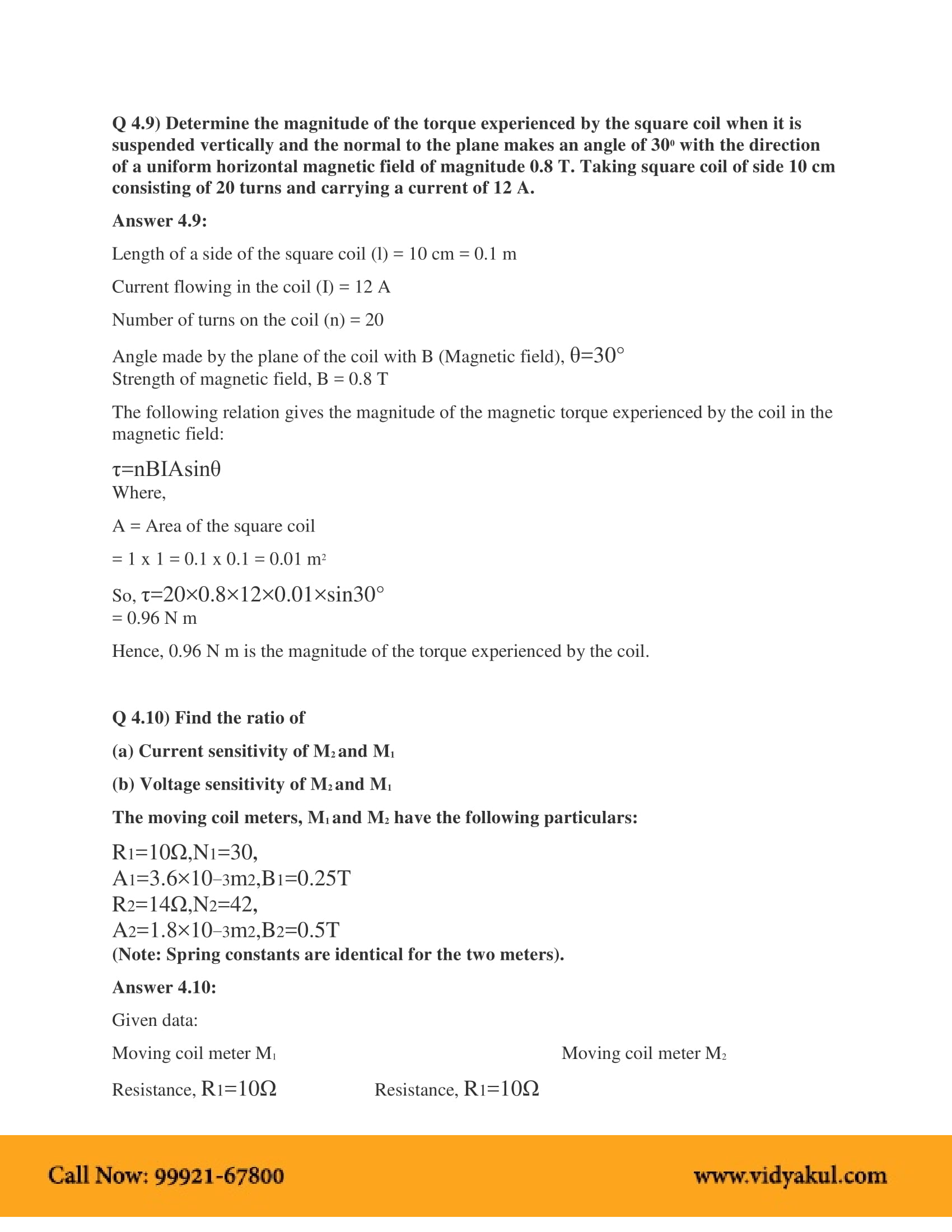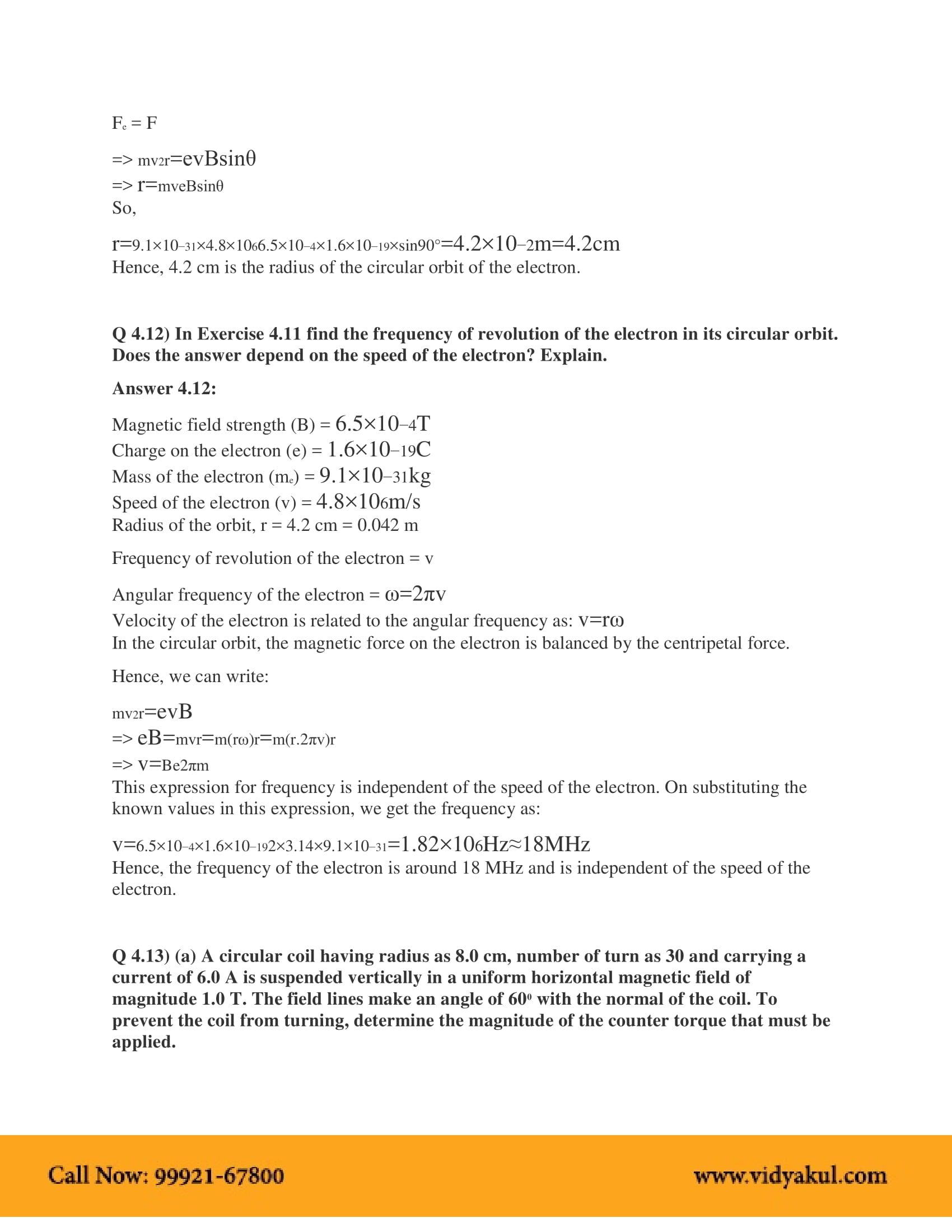 Vidyakul brings to you PDF, downloadable version of NCERT Solutions for Class 12 Physics Chapter 4, Moving Charges and Magnetism solved by our panel of experienced teachers as per NCERT (CBSE) book guidelines. All Moving Charges and Magnetism exercise questions, notes with solutions will help you to revise