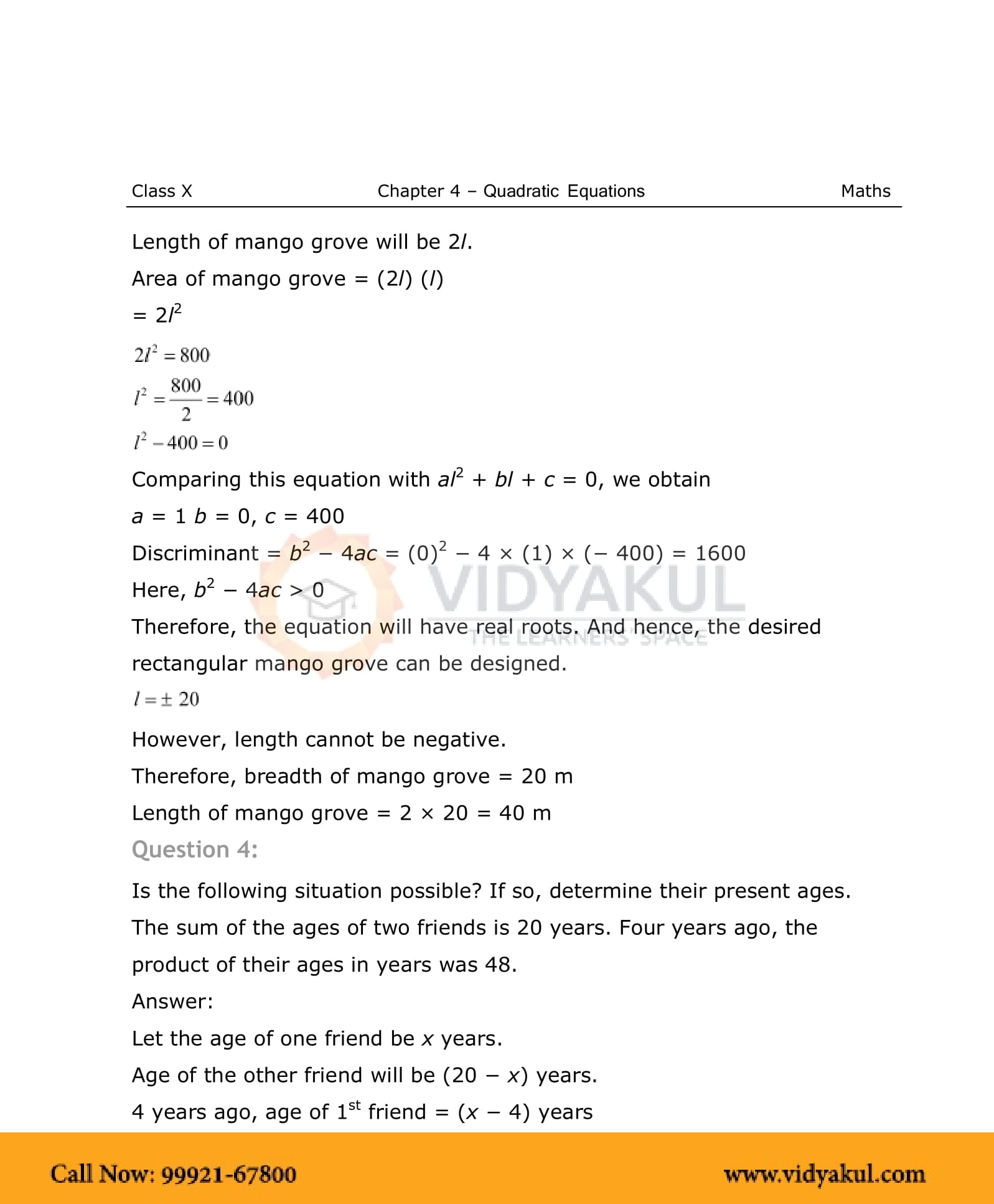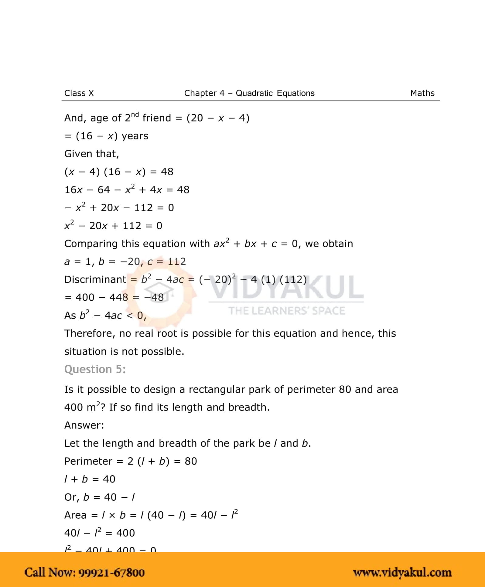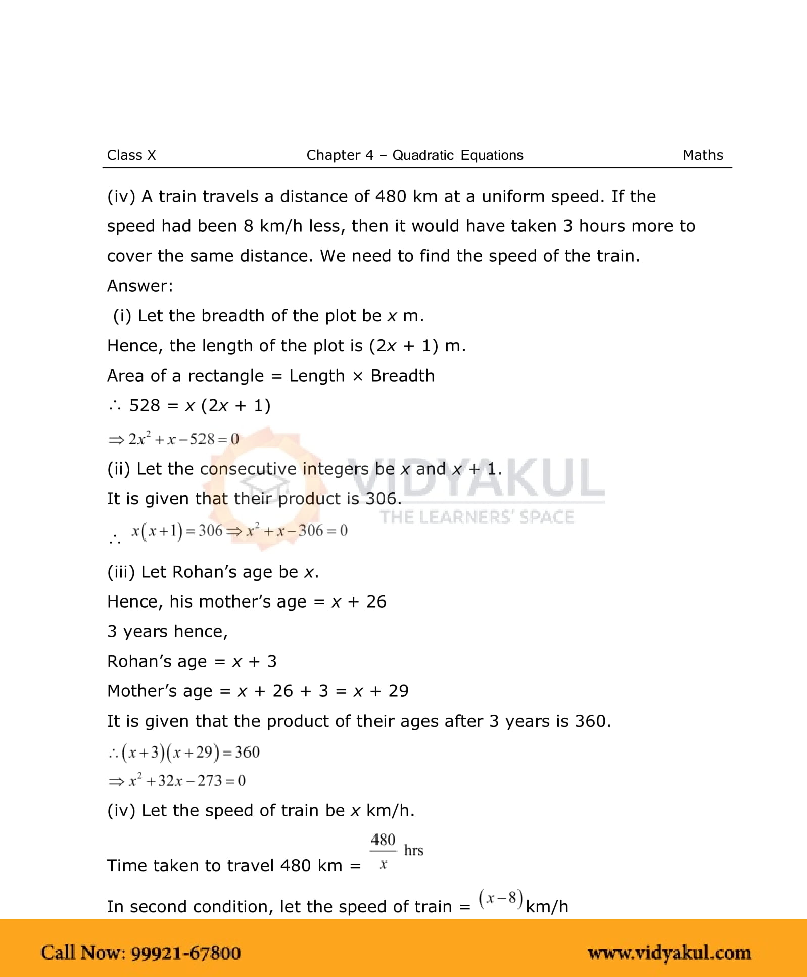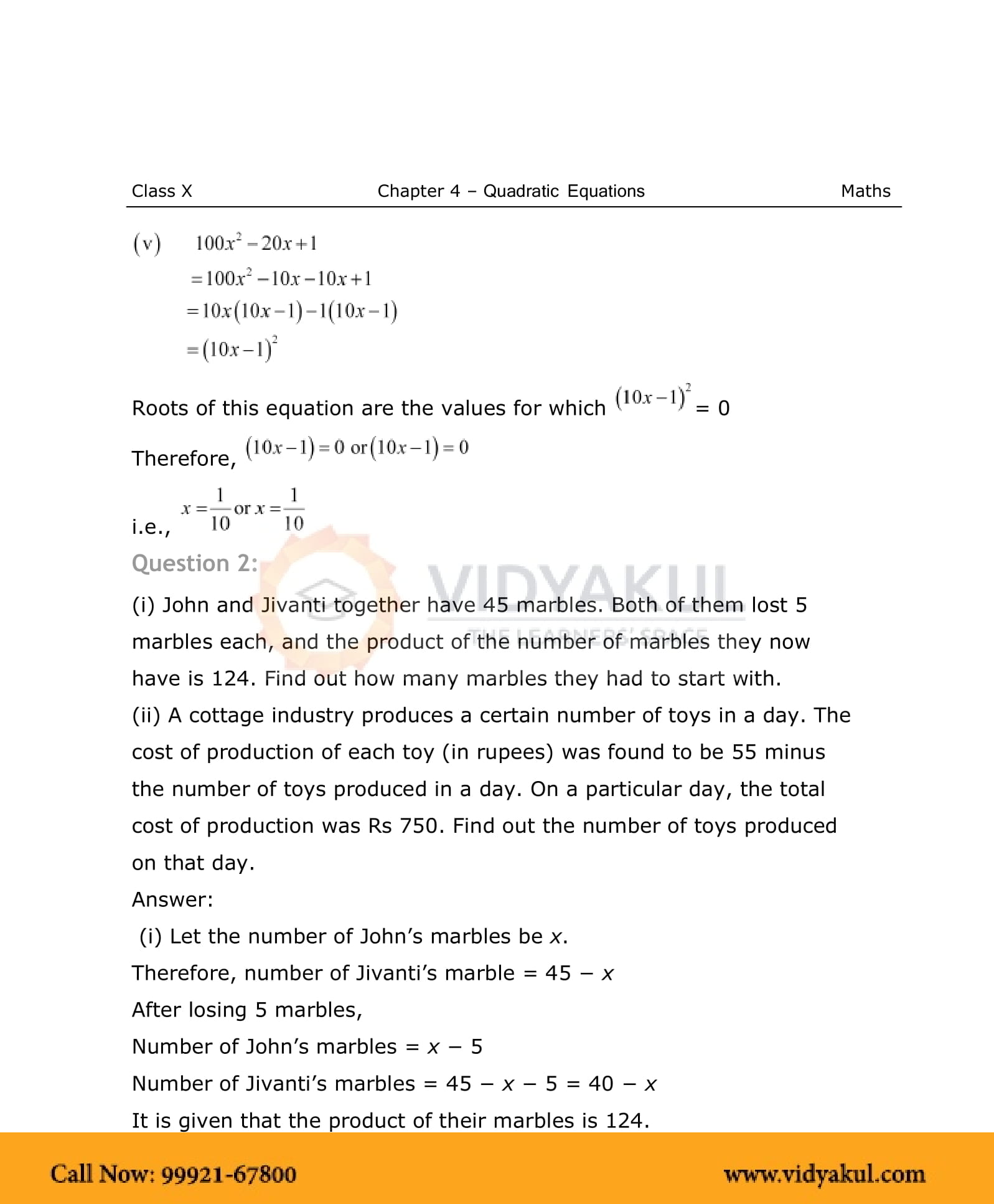 NCERT Solutions For Class 10 Maths Chapter 4 Quadratic Equations - PDF Download