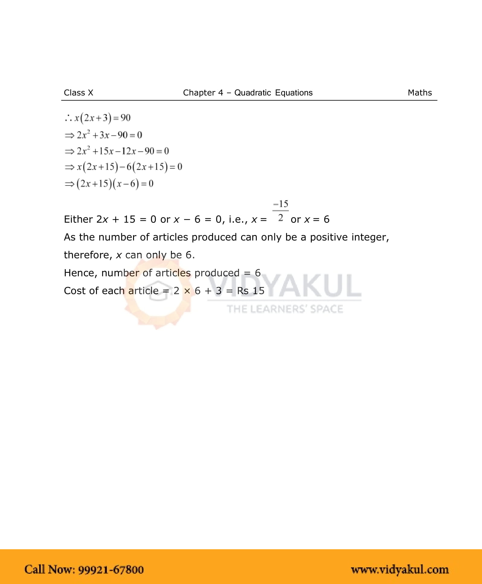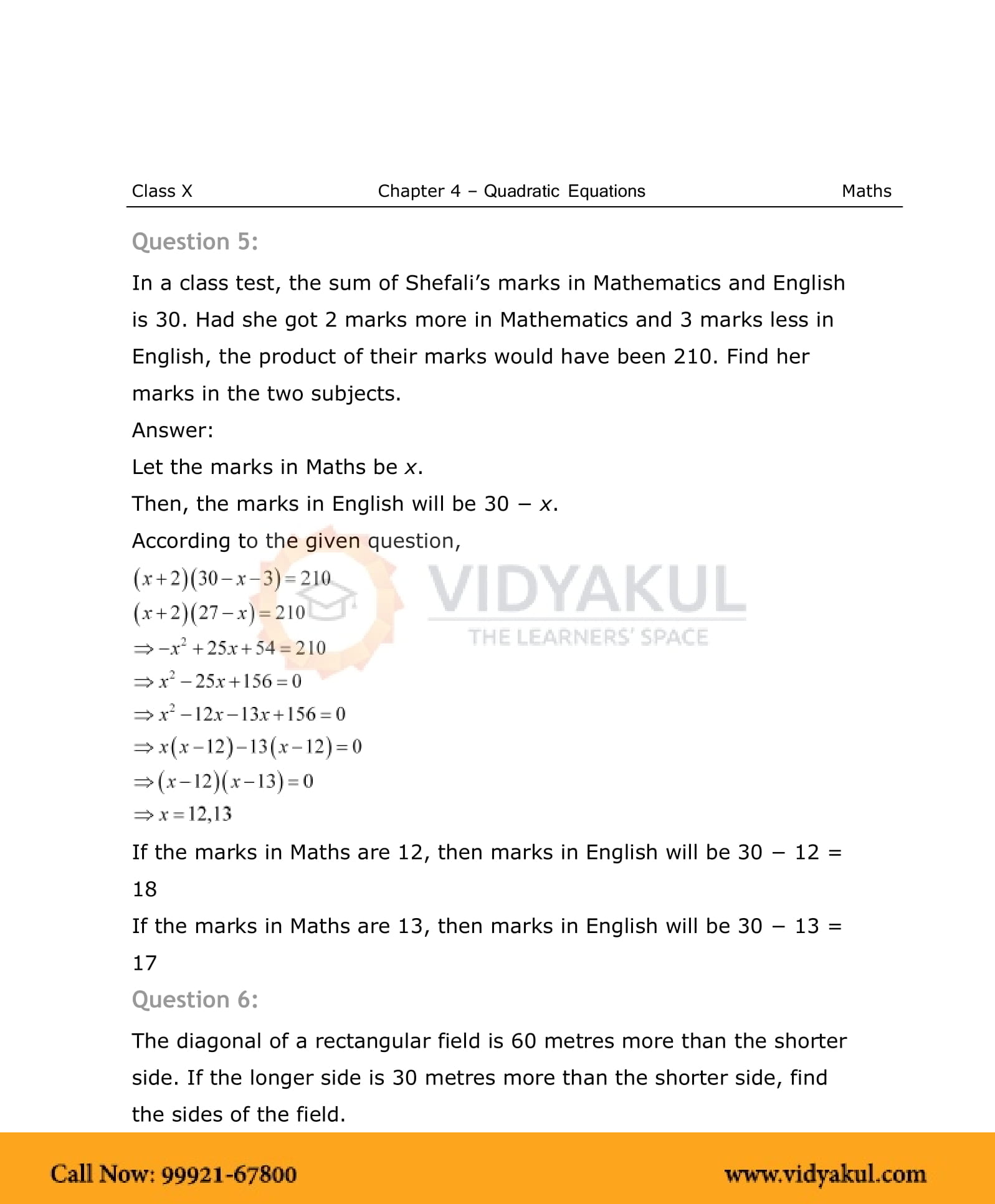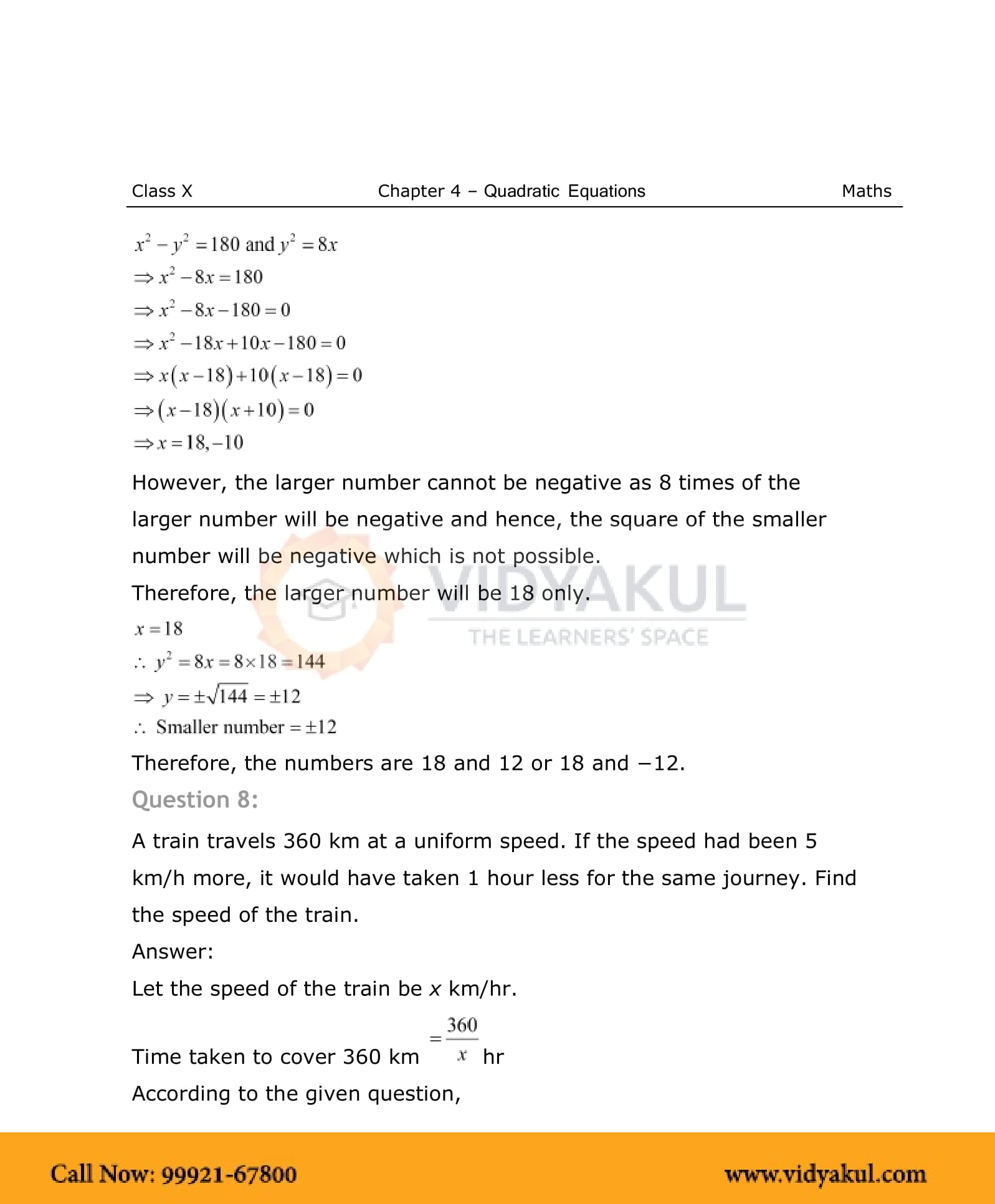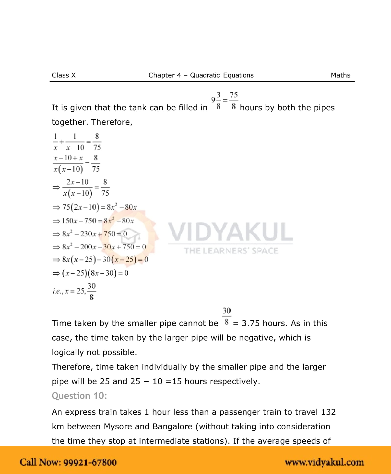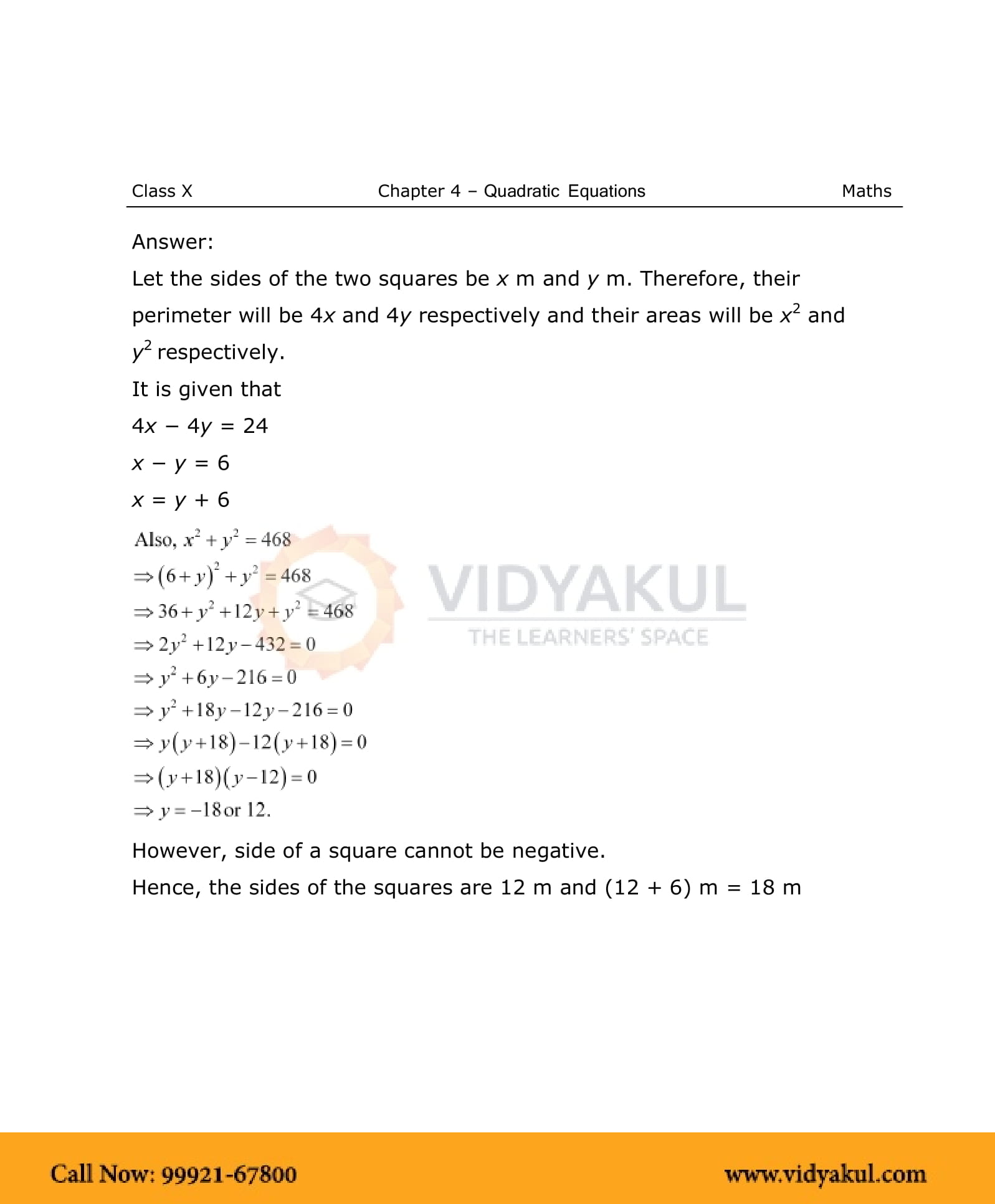 NCERT Solutions For Class 10 Maths Chapter 4 Quadratic Equations - PDF Download