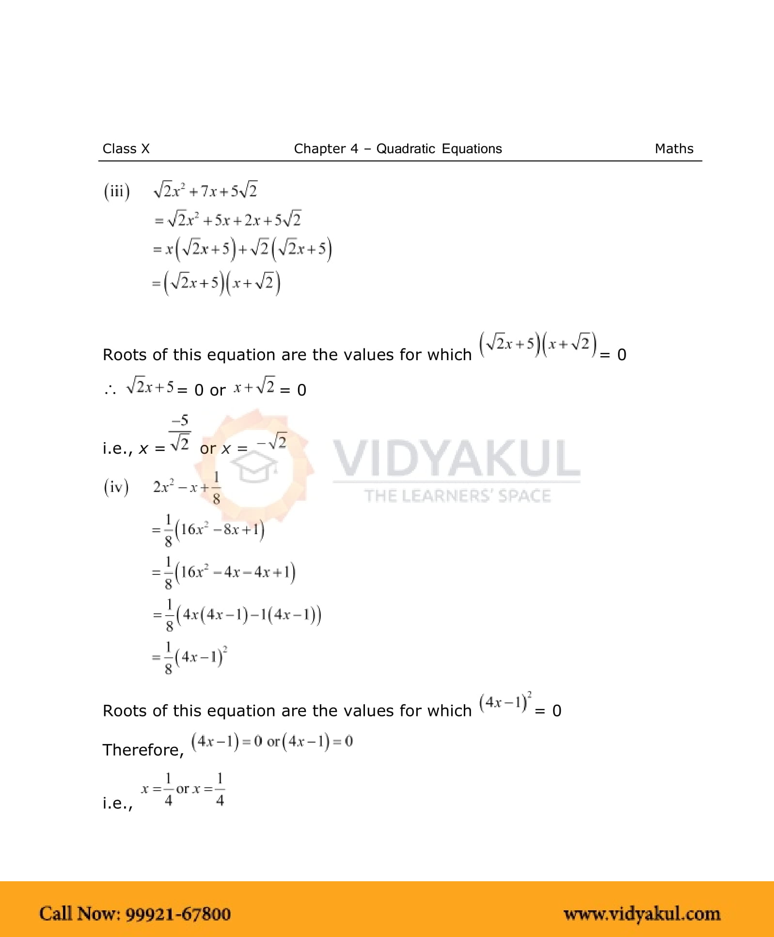4.3 Solution of a Quadratic Equation by Factorisation,