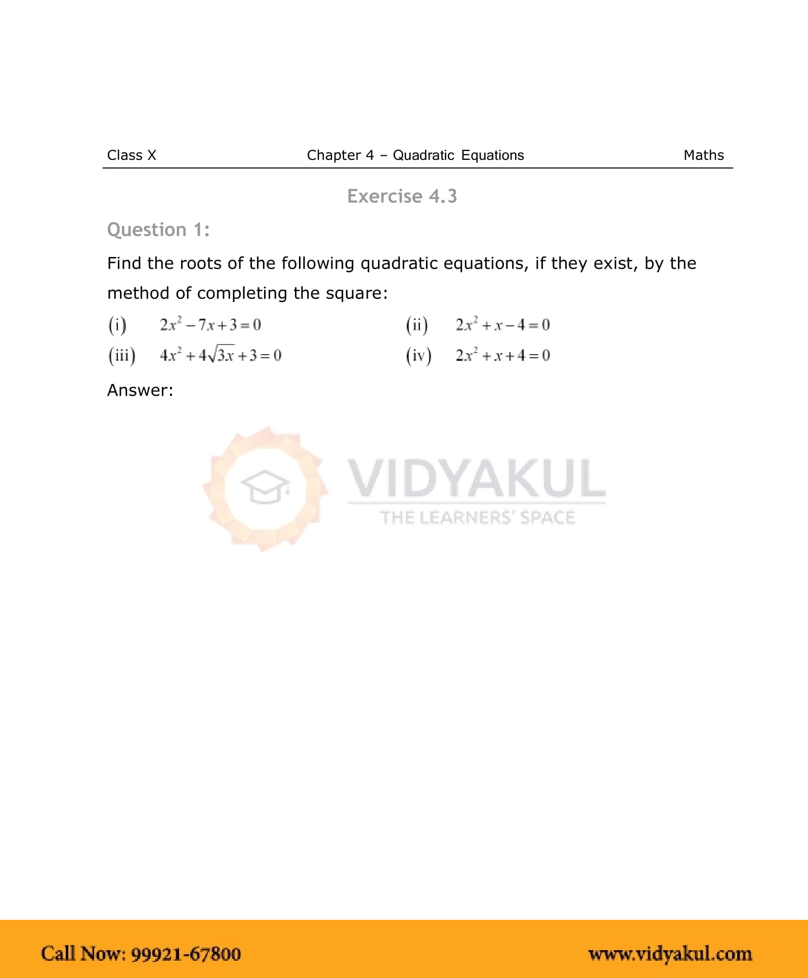 NCERT Solutions For Class 10 Maths Chapter 4