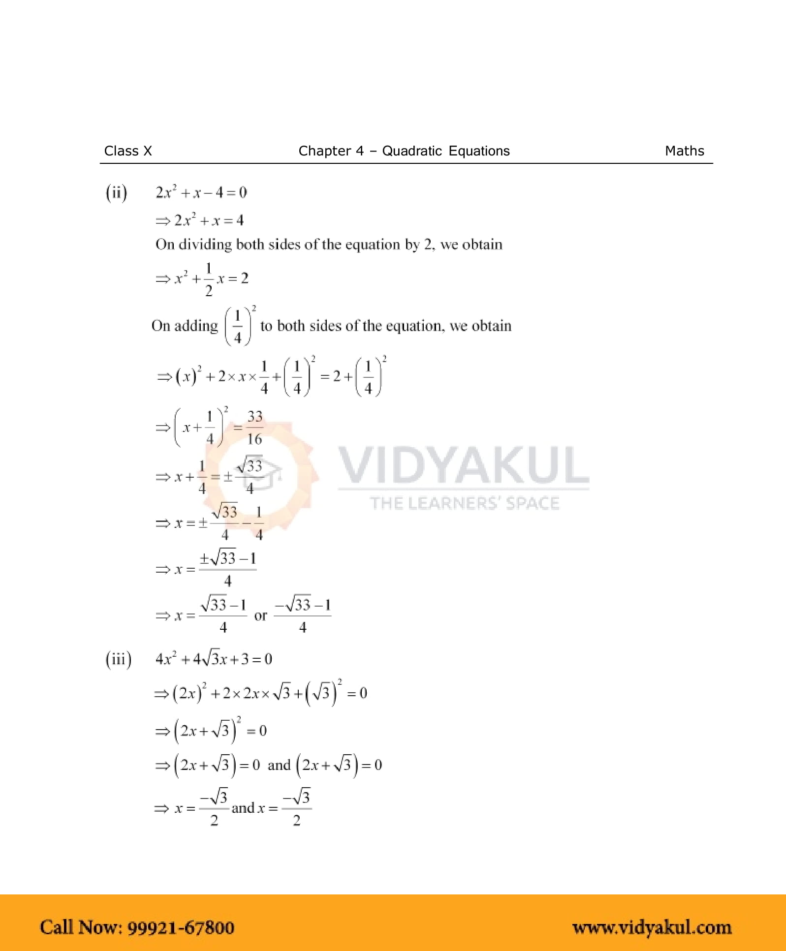 4.4 Solution of a Quadratic Equation by Completing the Square,