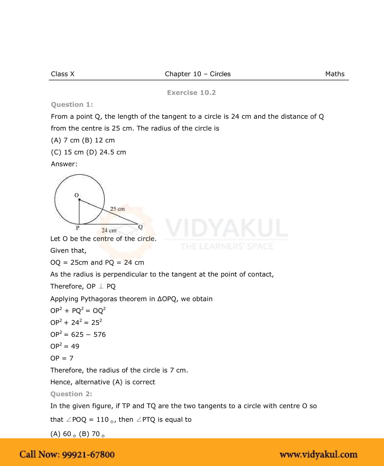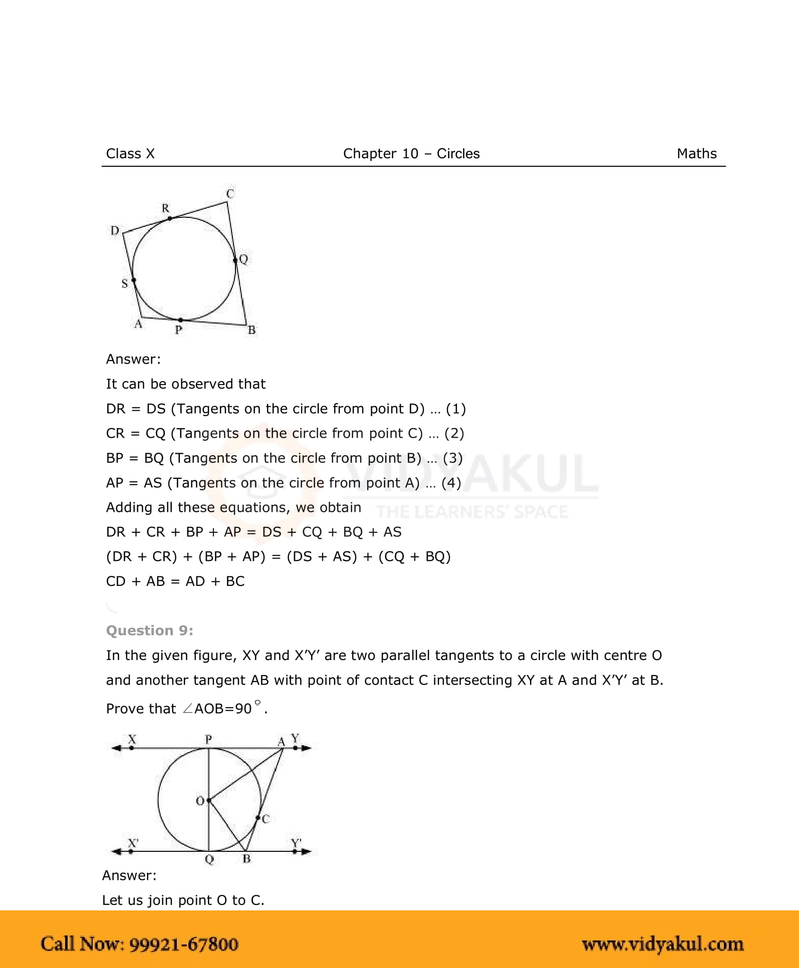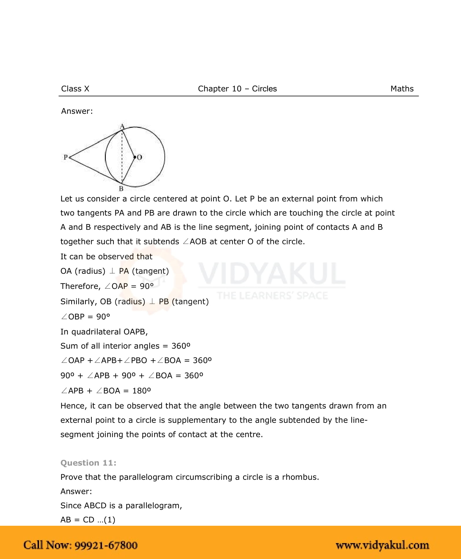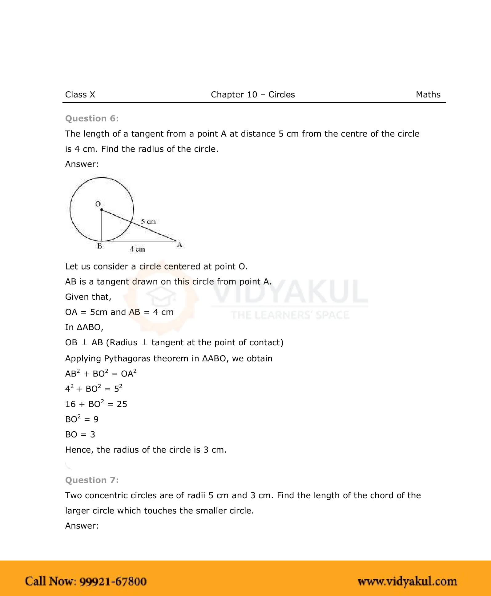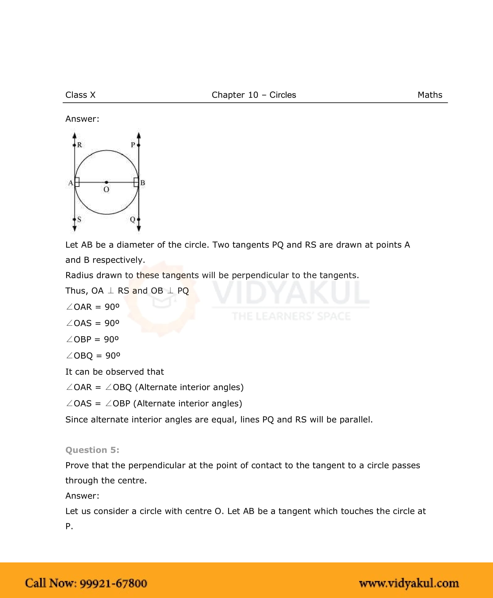 NCERT Solutions For Class 10 Maths Chapter 10 Circles - PDF Download