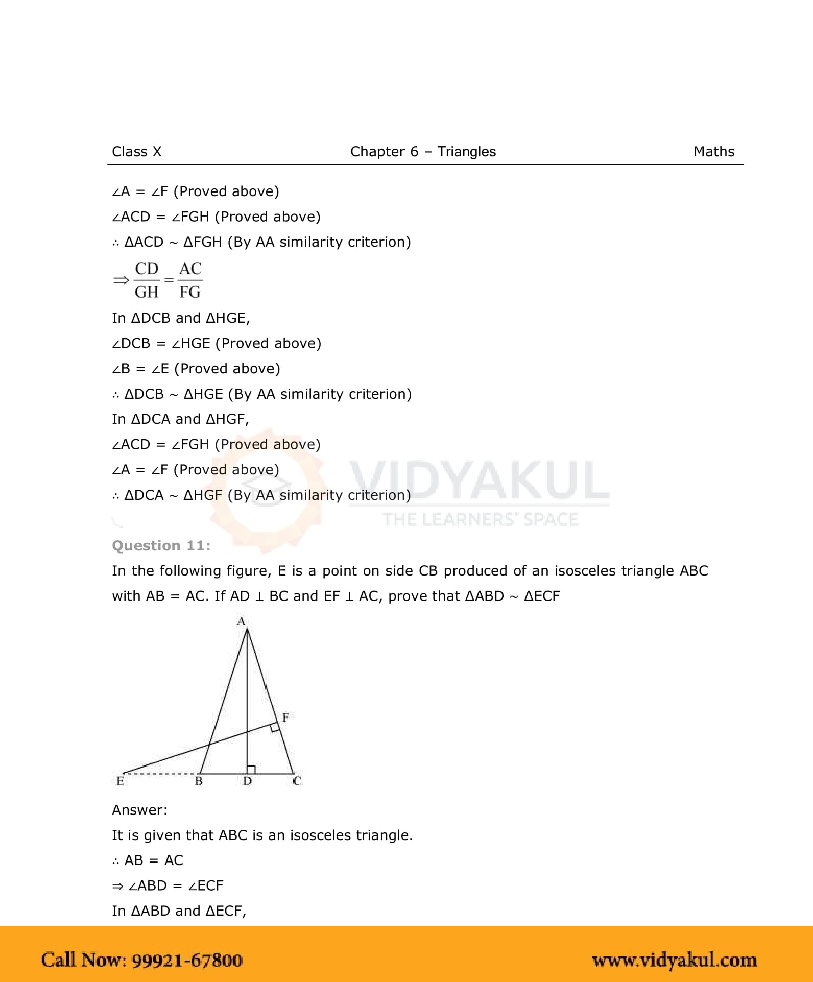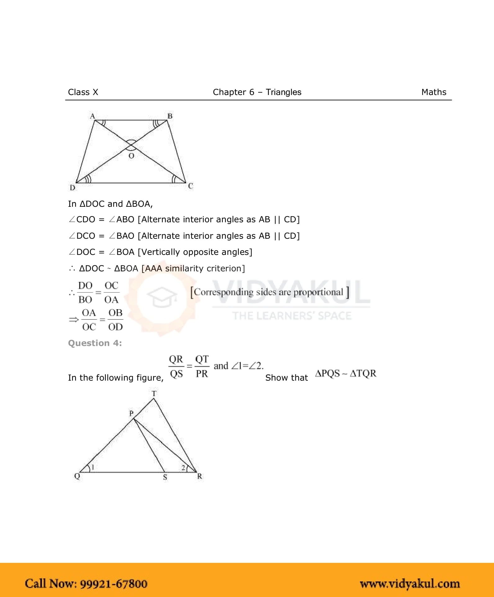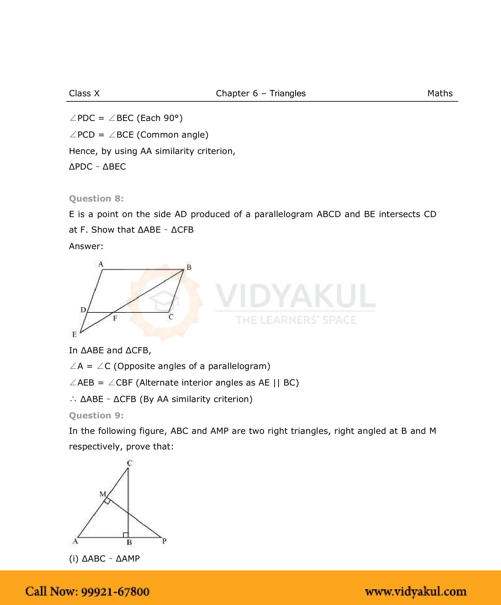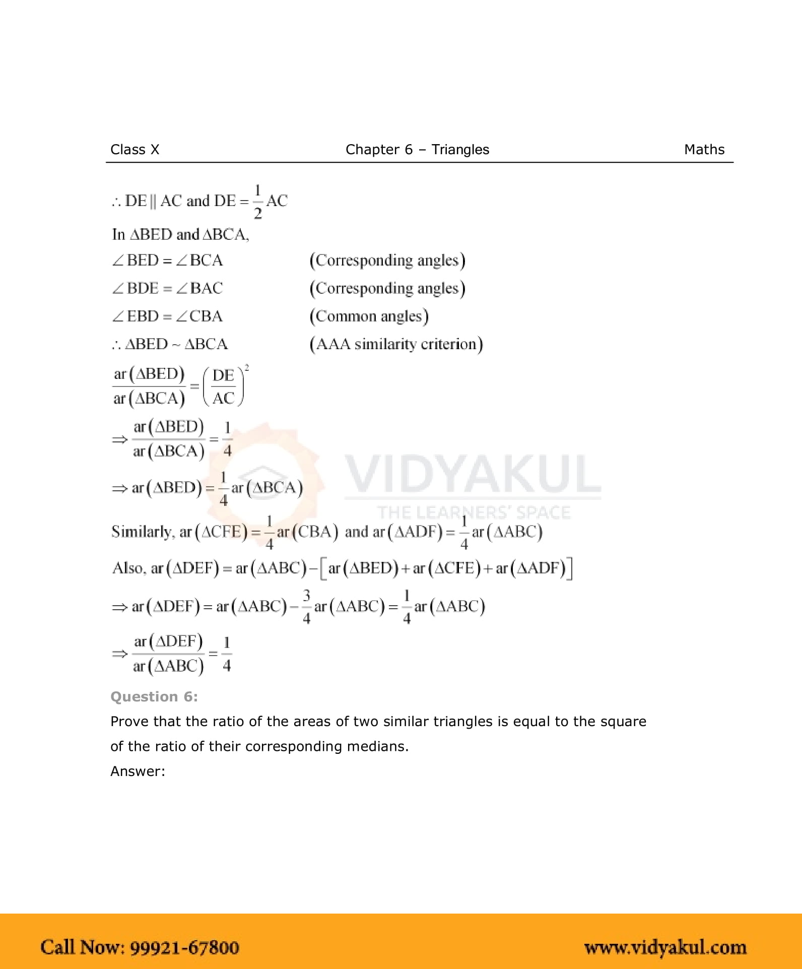 NCERT Solutions Class 10 Maths Chapter 6 Triangles - PDF Download