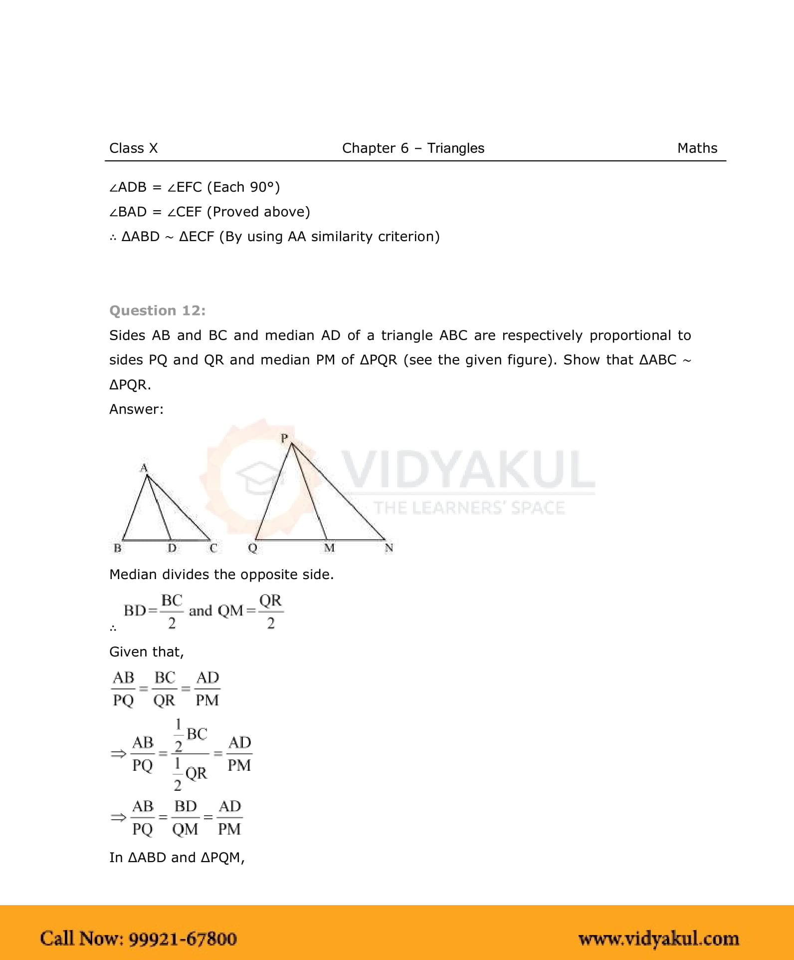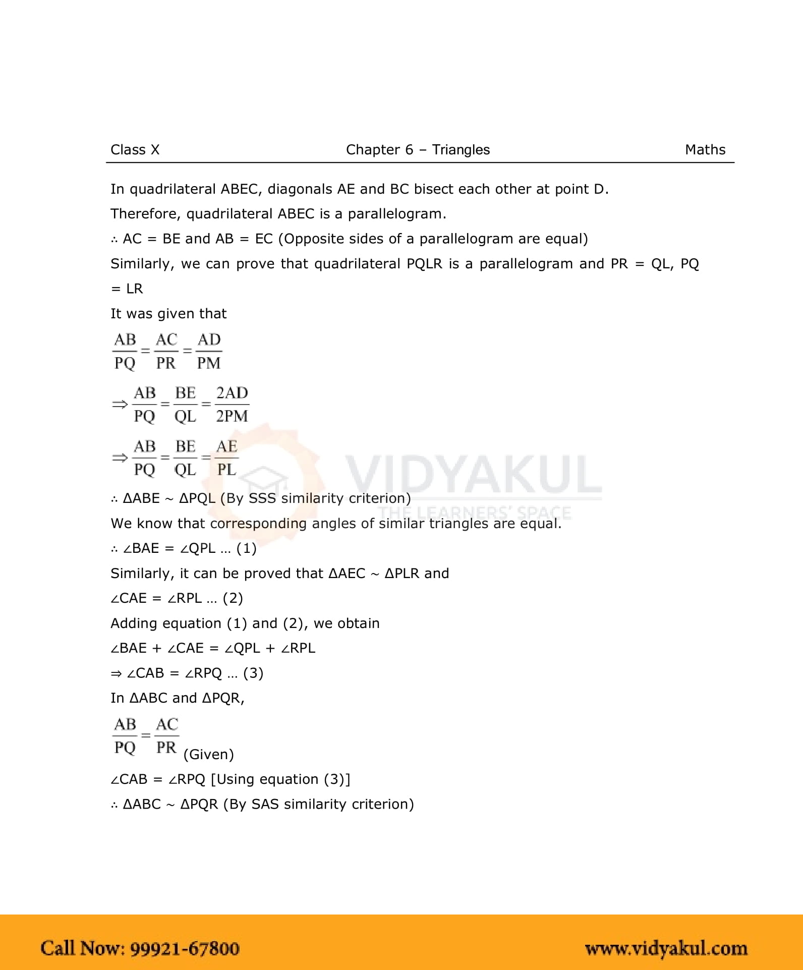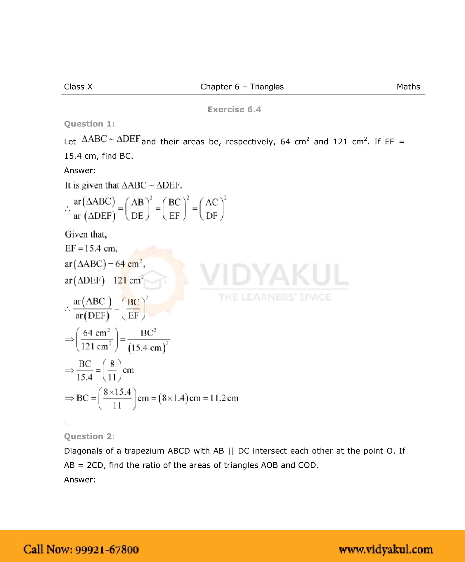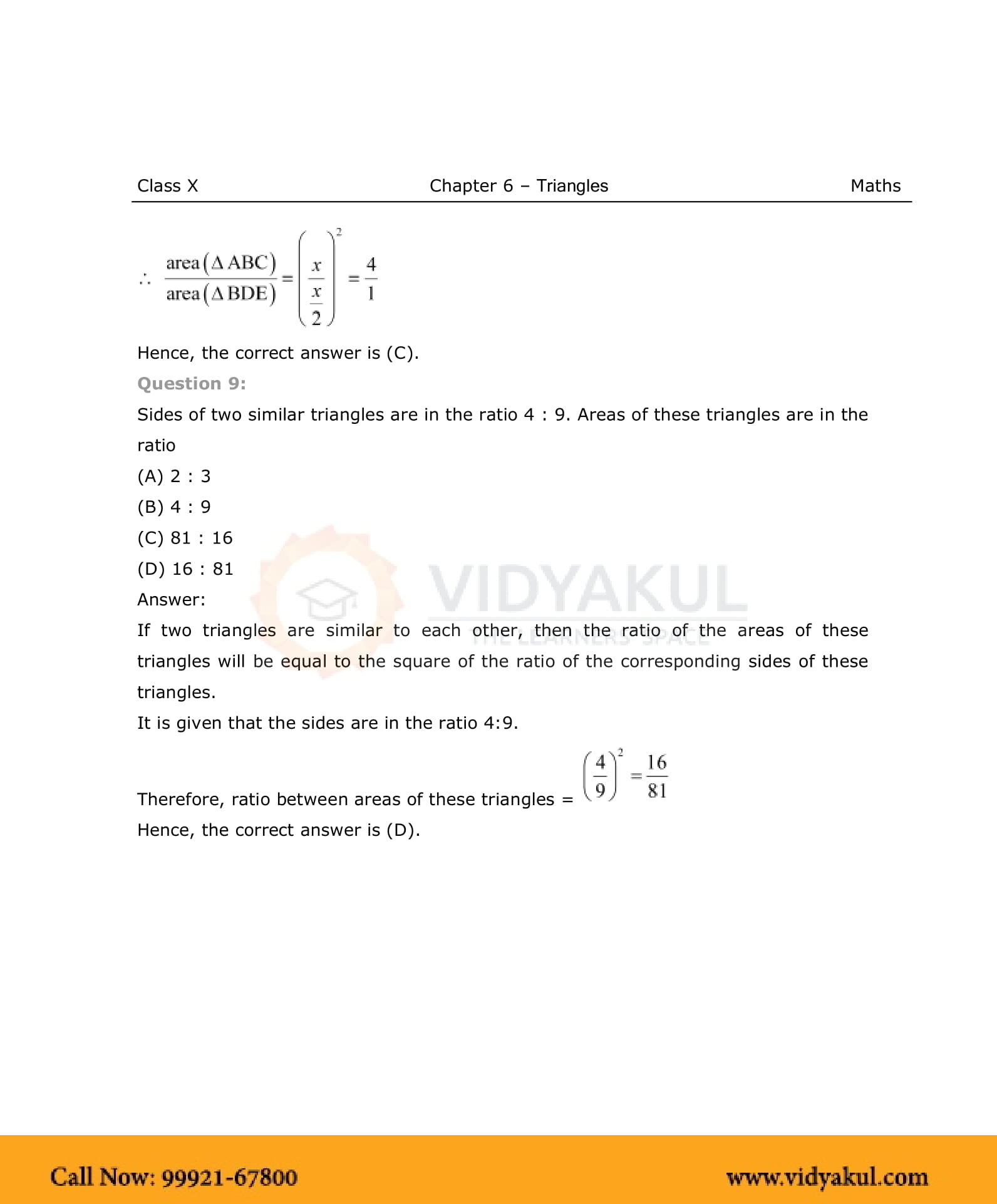 NCERT Solutions Class 10 Maths Chapter 6 Triangles - PDF Download