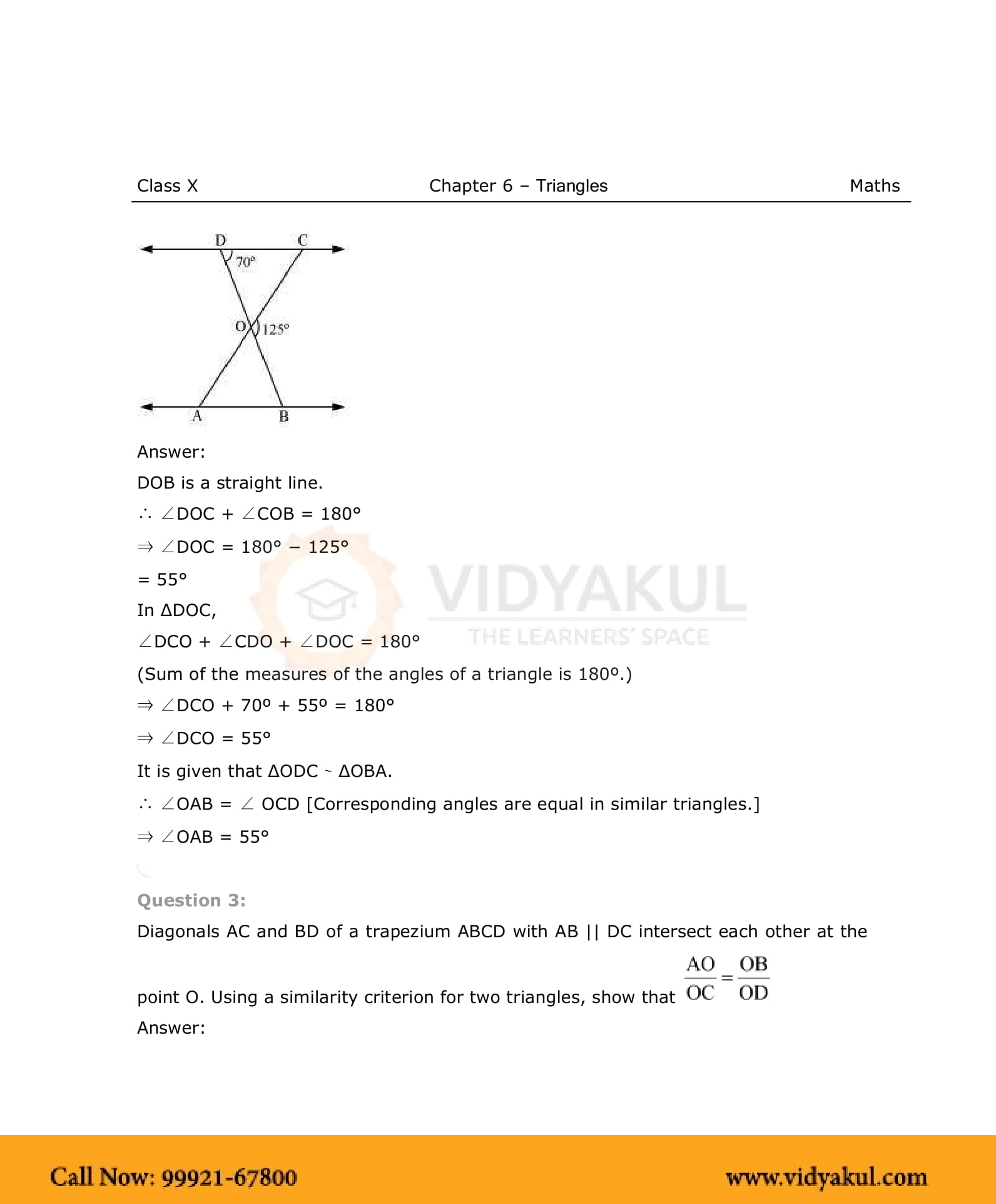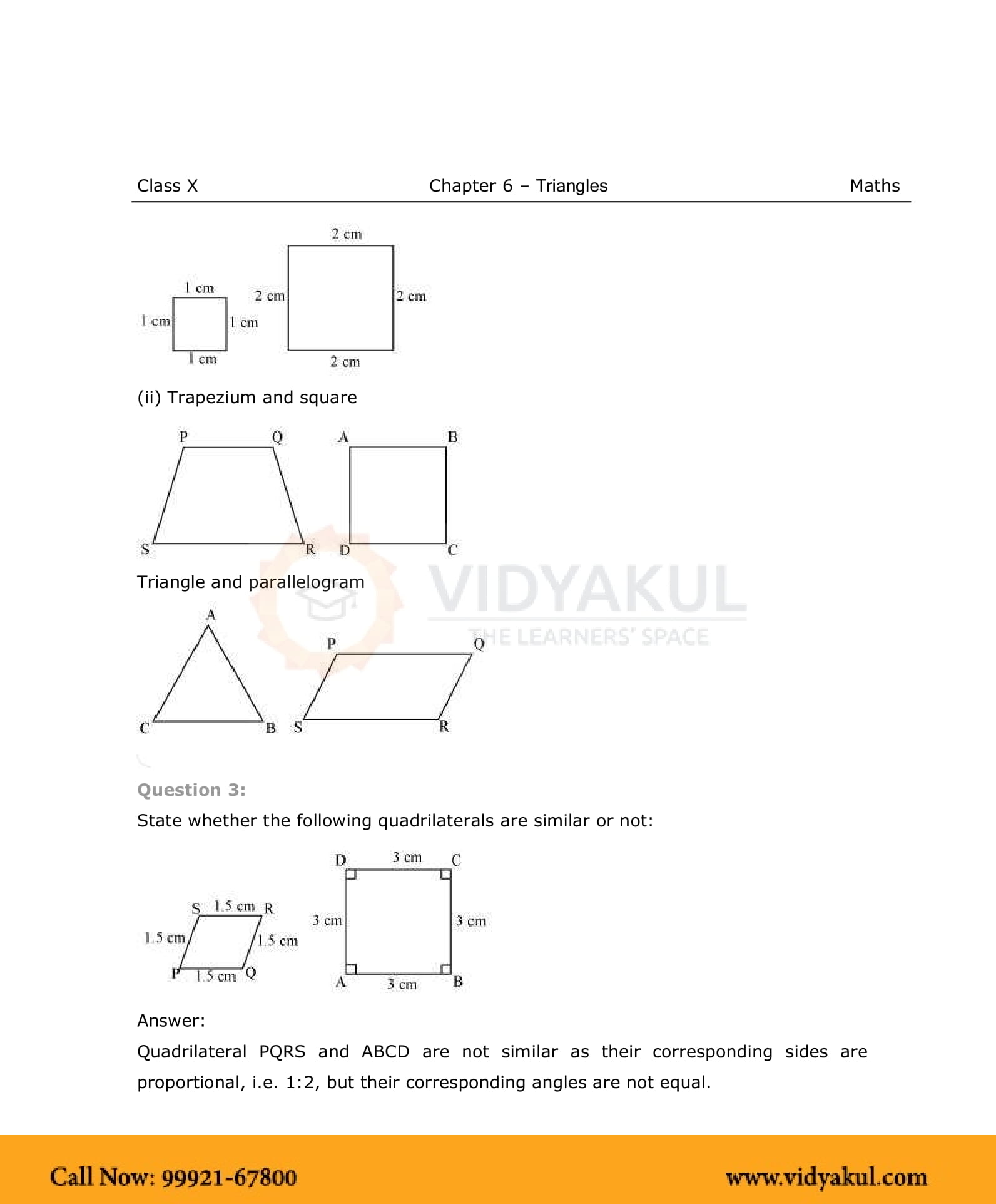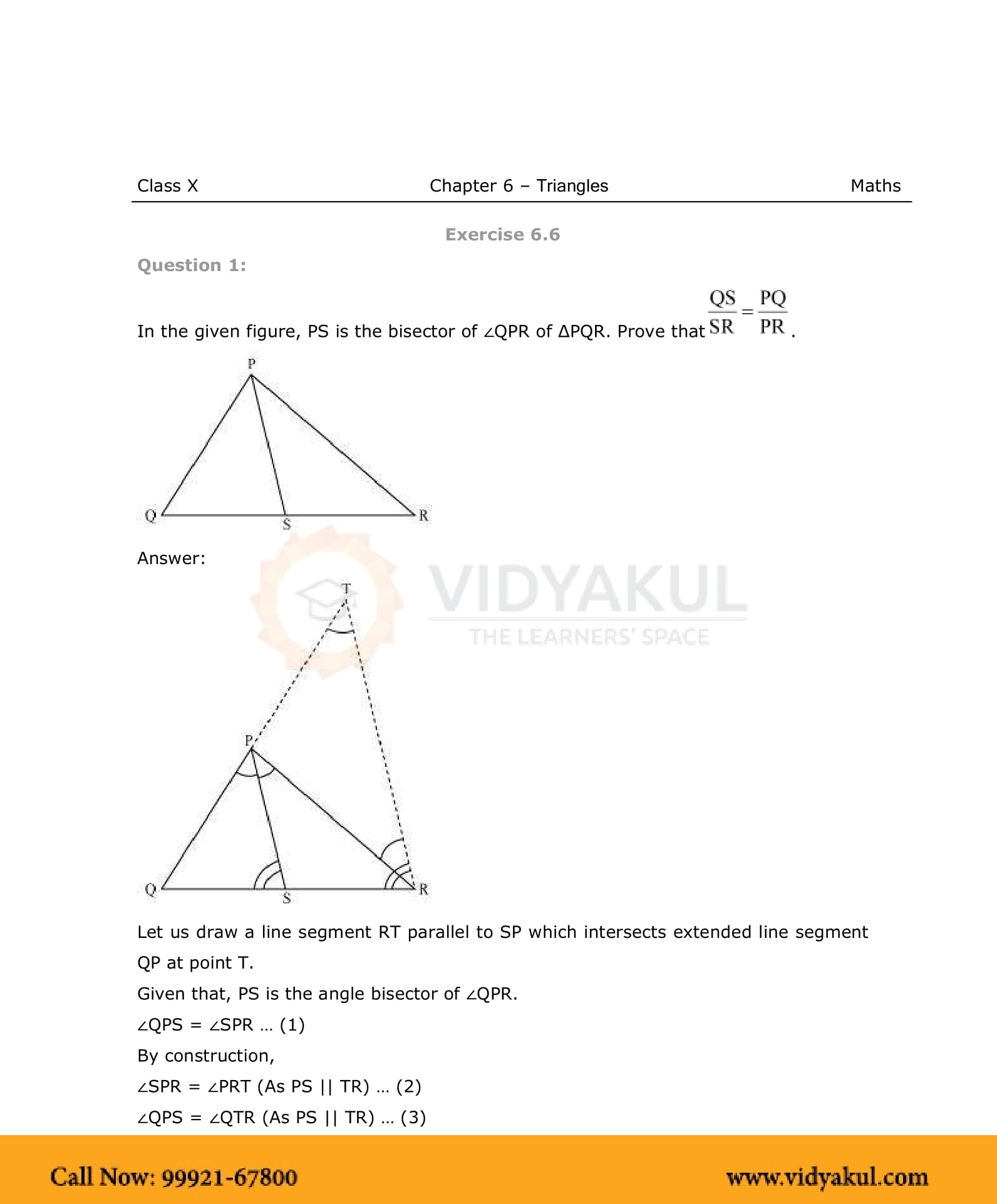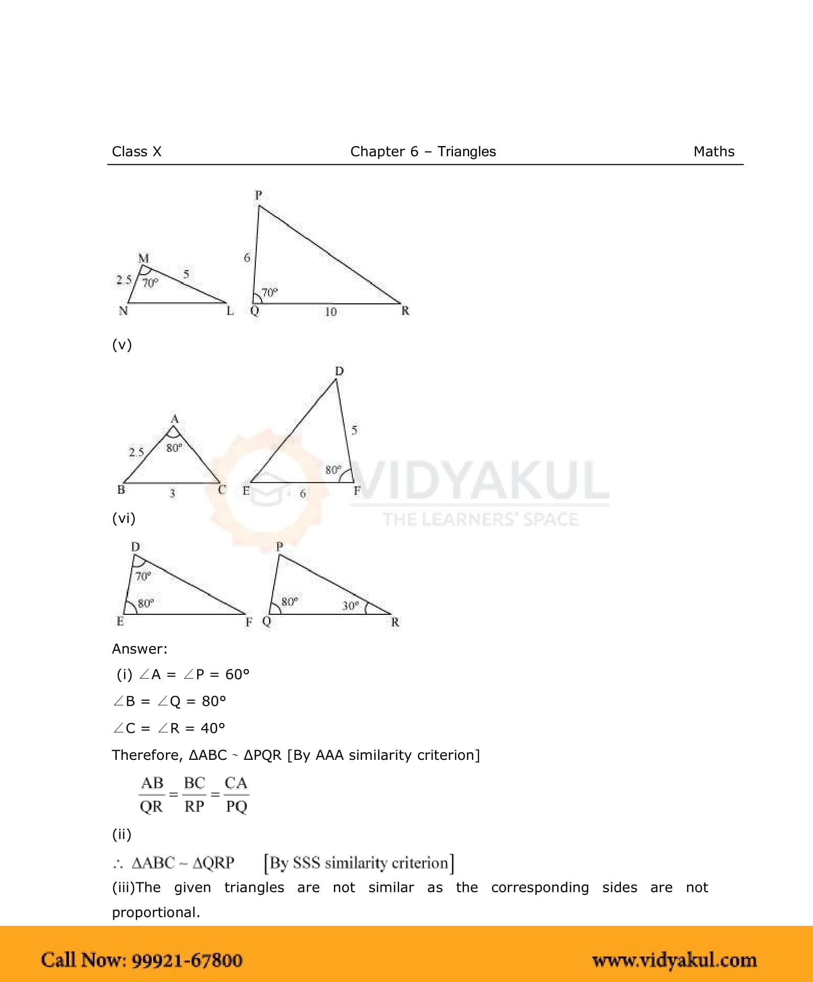 NCERT Solutions Class 10 Maths Chapter 6 Triangles - PDF Download