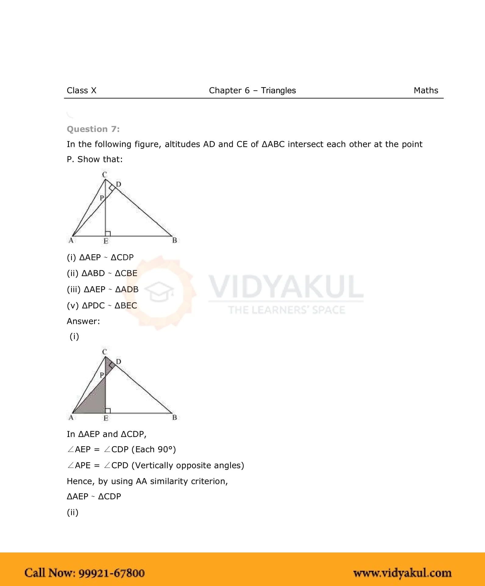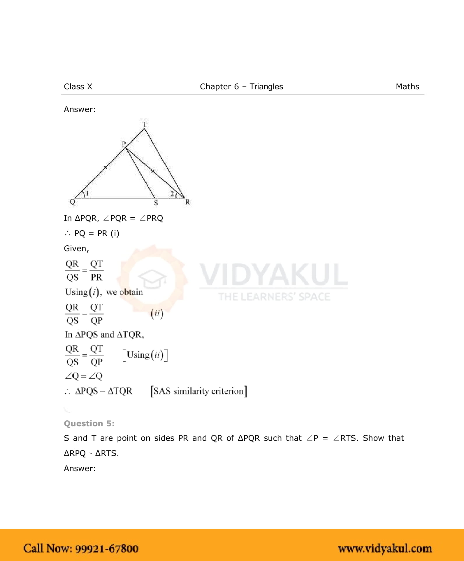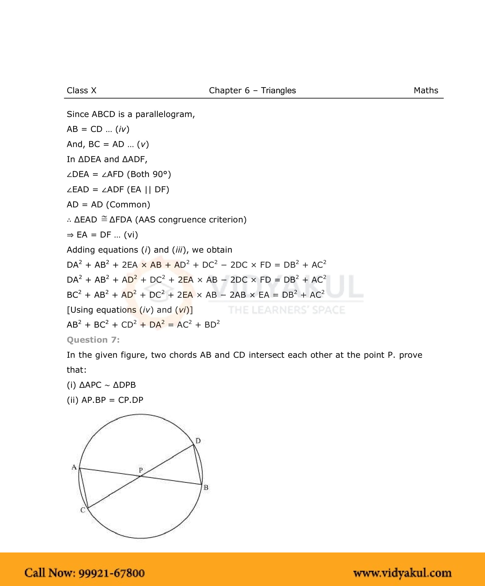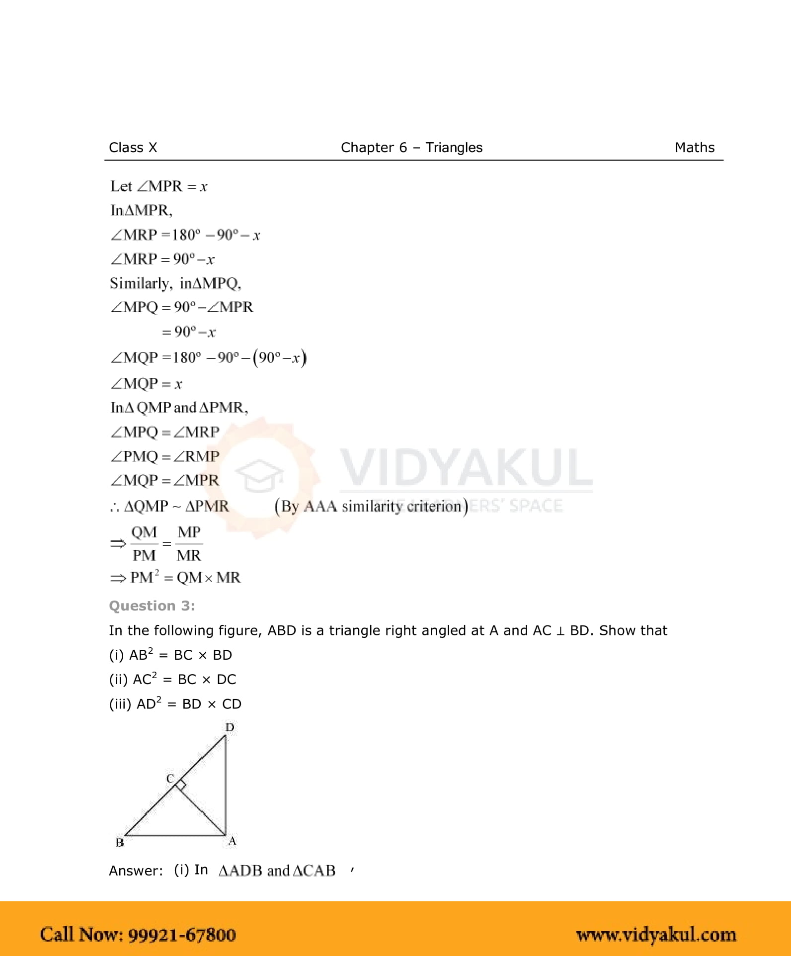 NCERT Solutions Class 10 Maths Chapter 6 Triangles - PDF Download