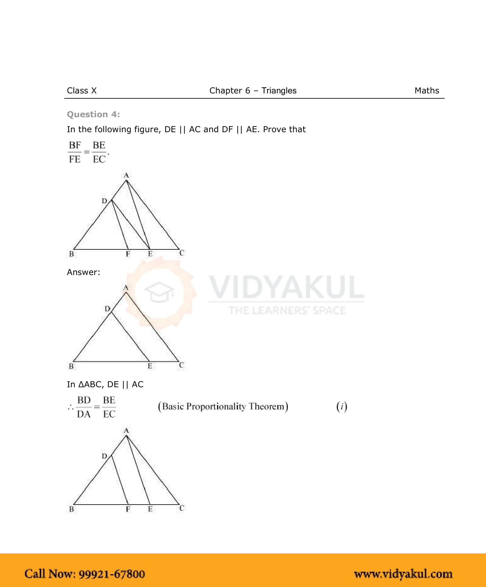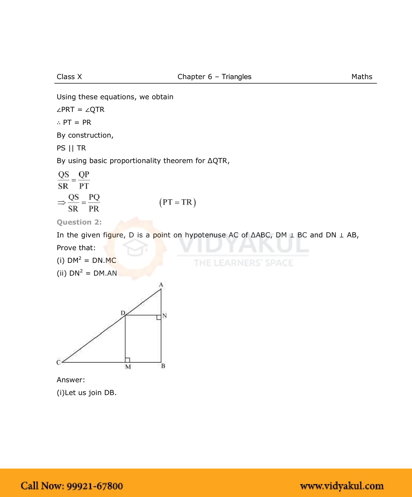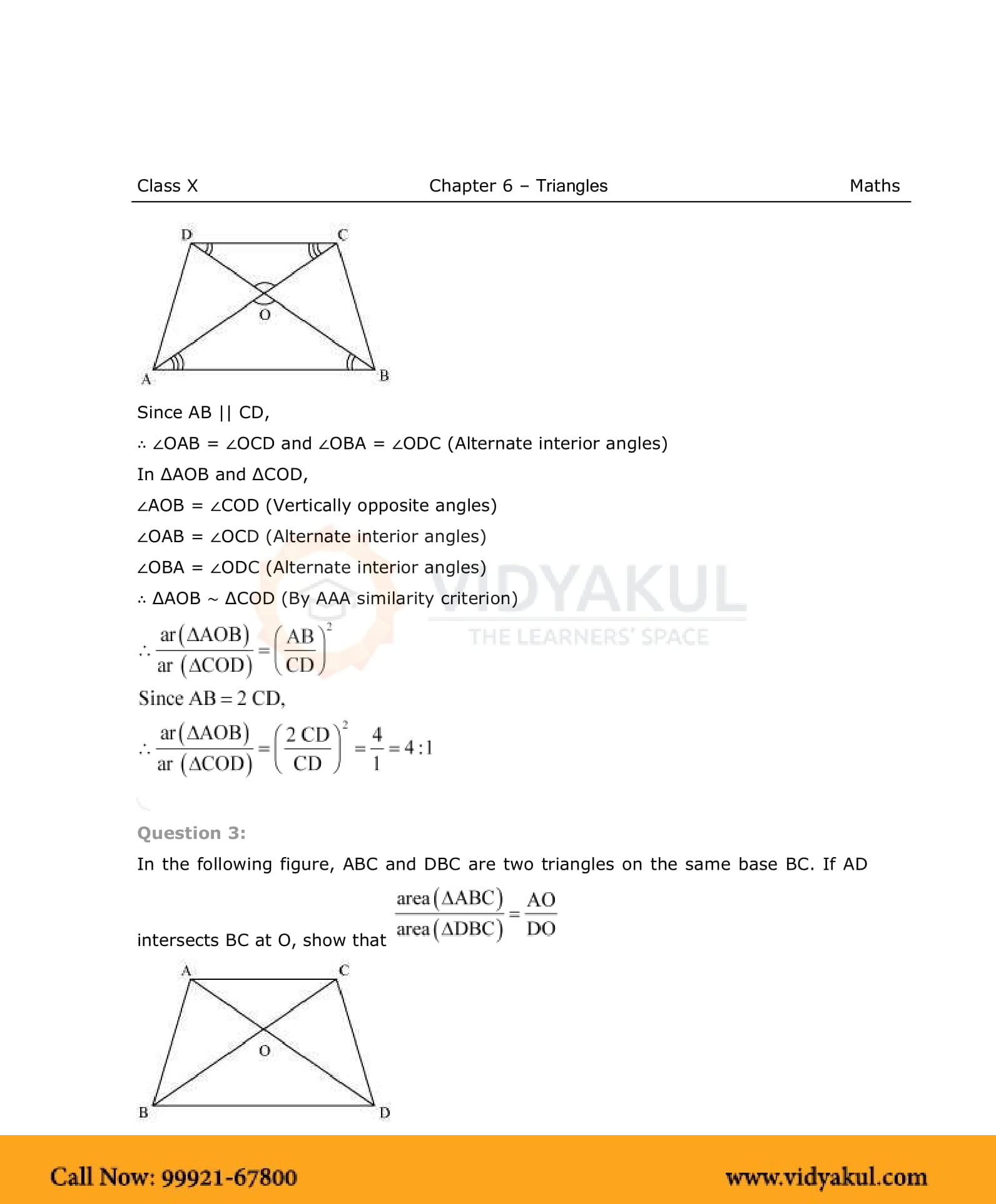 These CBSE NCERT Solutions for Class 10 Maths Chapter 6 Triangles will help you to practice all the topics in the chapter with ease and score maximum marks in the board examination.