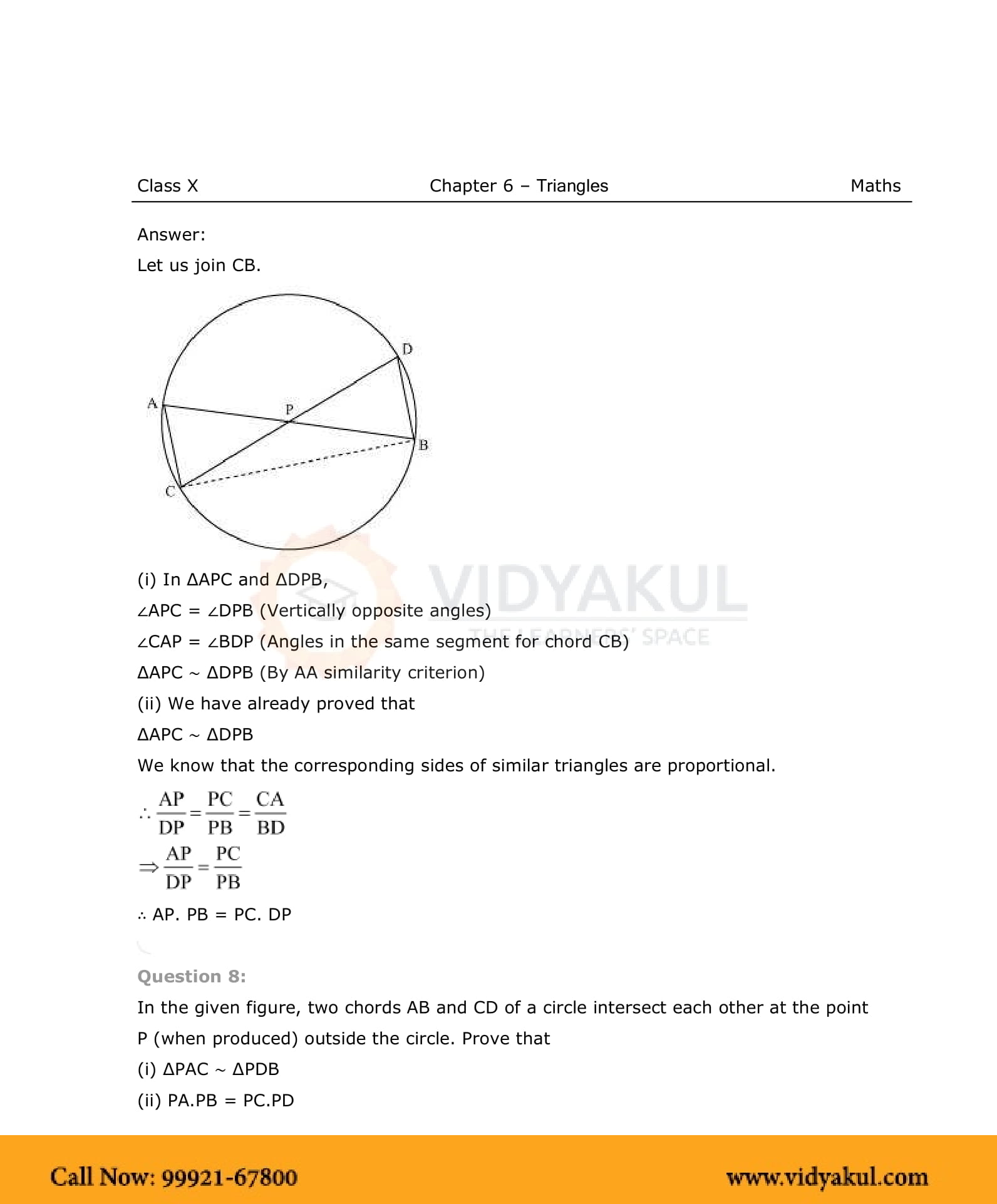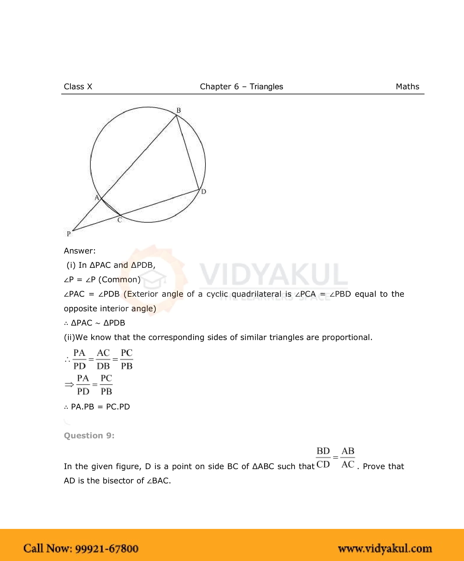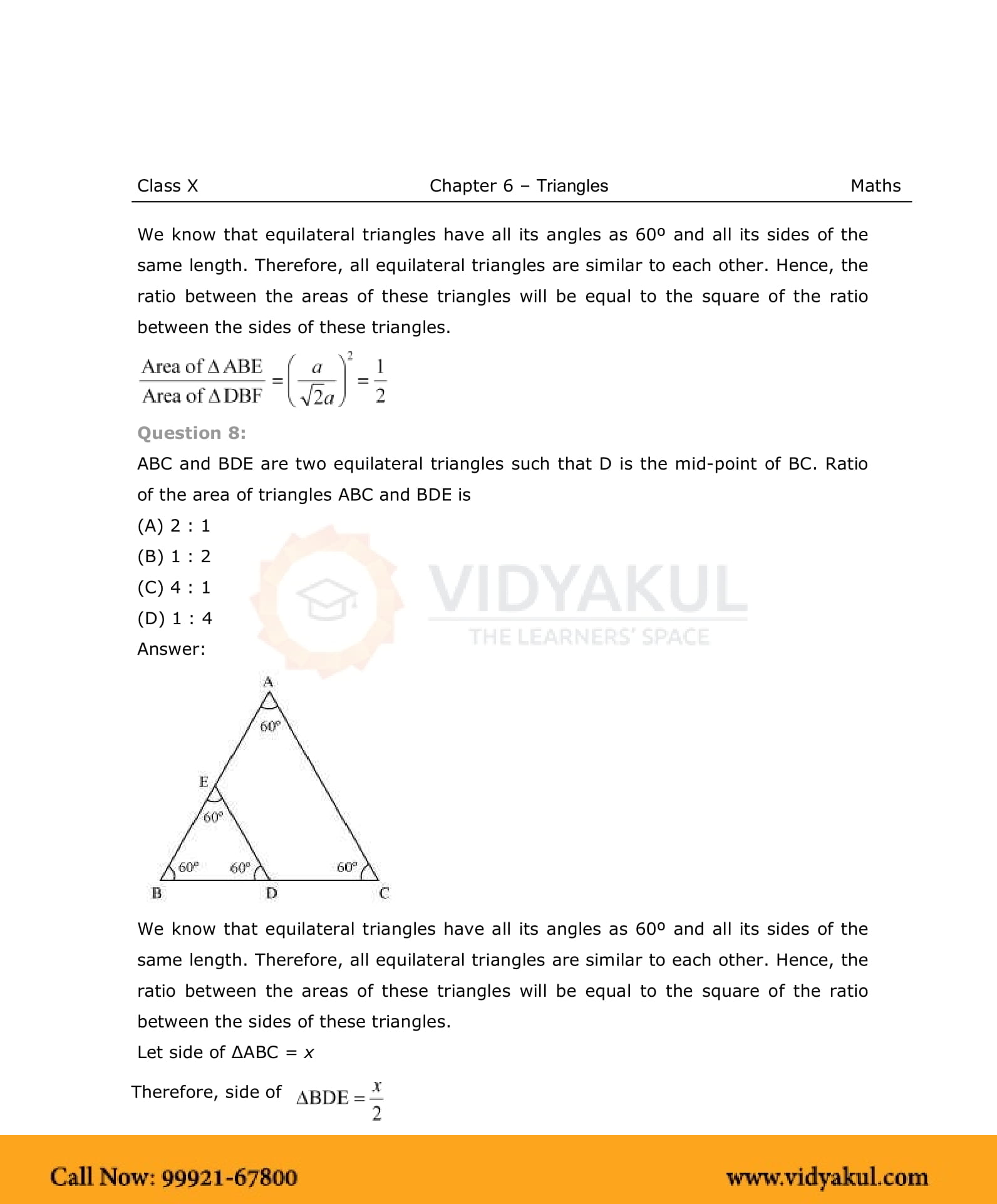 These CBSE NCERT Solutions for Class 10 Maths Chapter 6 Triangles will help you to practice all the topics in the chapter with ease and score maximum marks in the board examination.