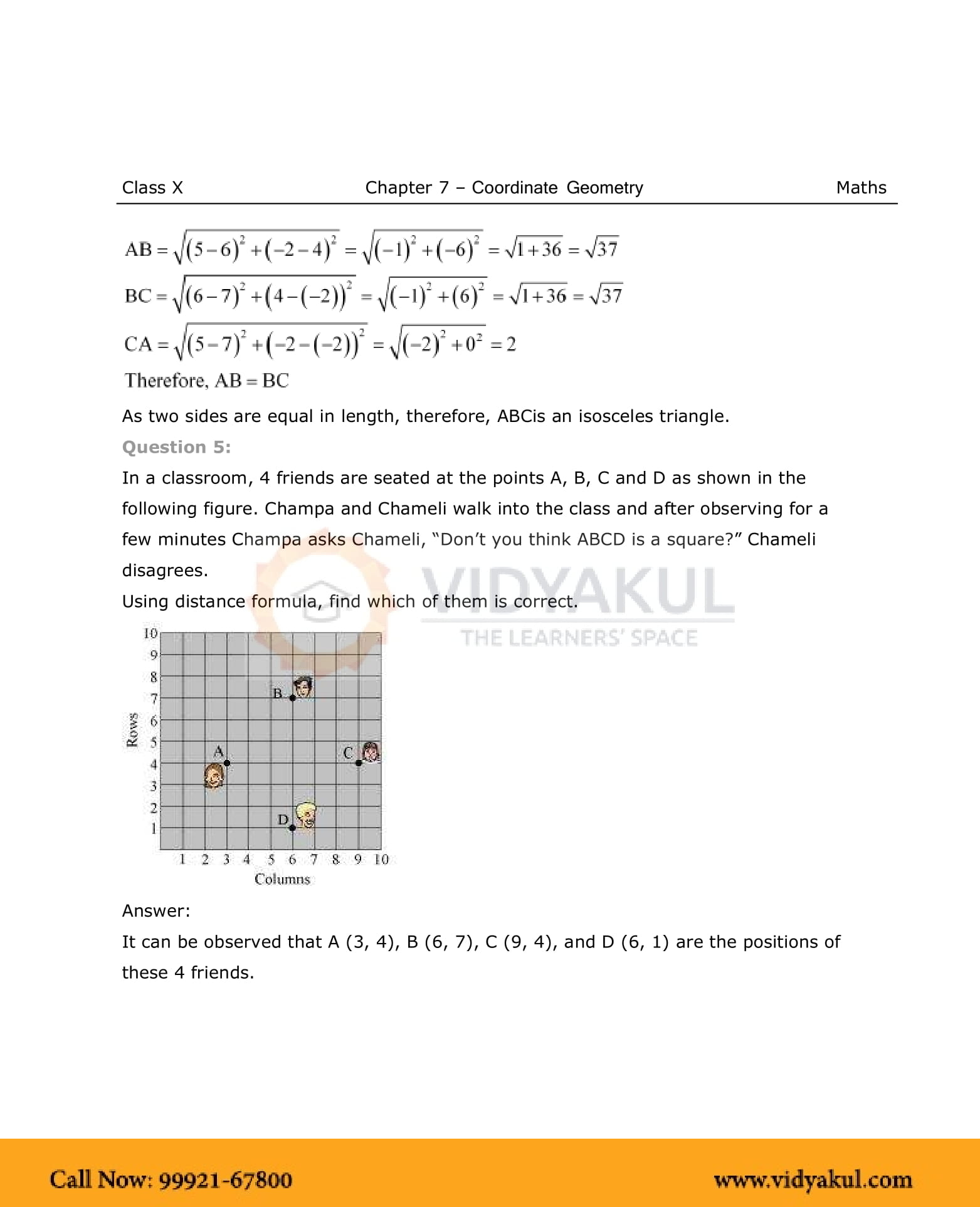 NCERT Solutions For Class 10 Maths Chapter 7 Coordinate Geometry - PDF Download