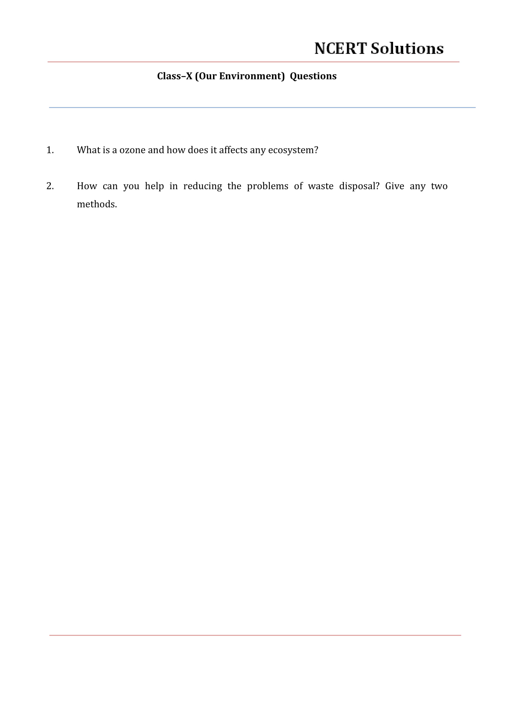 These CBSE NCERT Solutions for Class 10 Science Chapter 15 Our Environment will help you to practice all the topics in the chapter with ease and score maximum marks in the board examination.