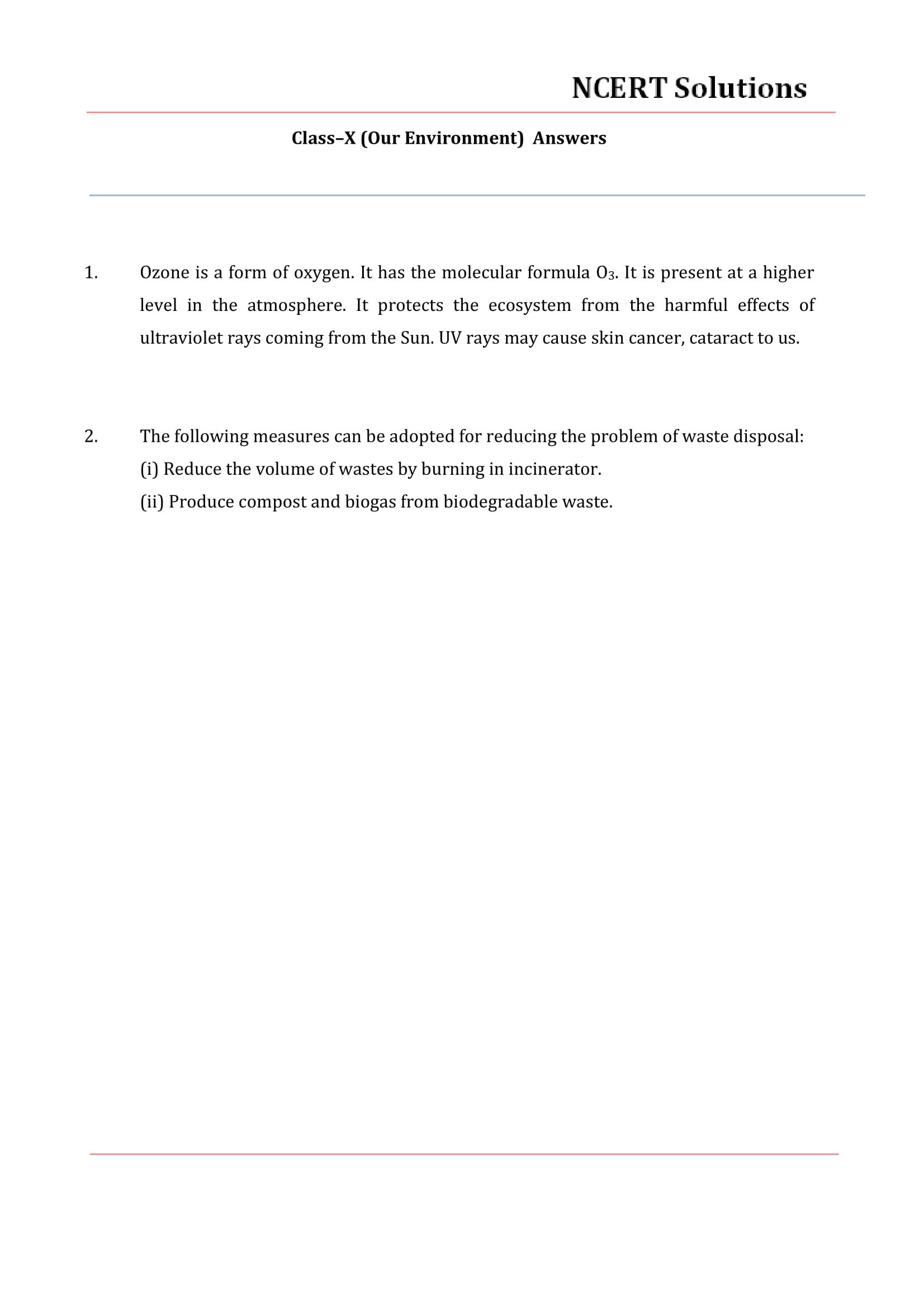 NCERT Solutions For Class 10 Science Chapter 15 Our Environment - PDF Download