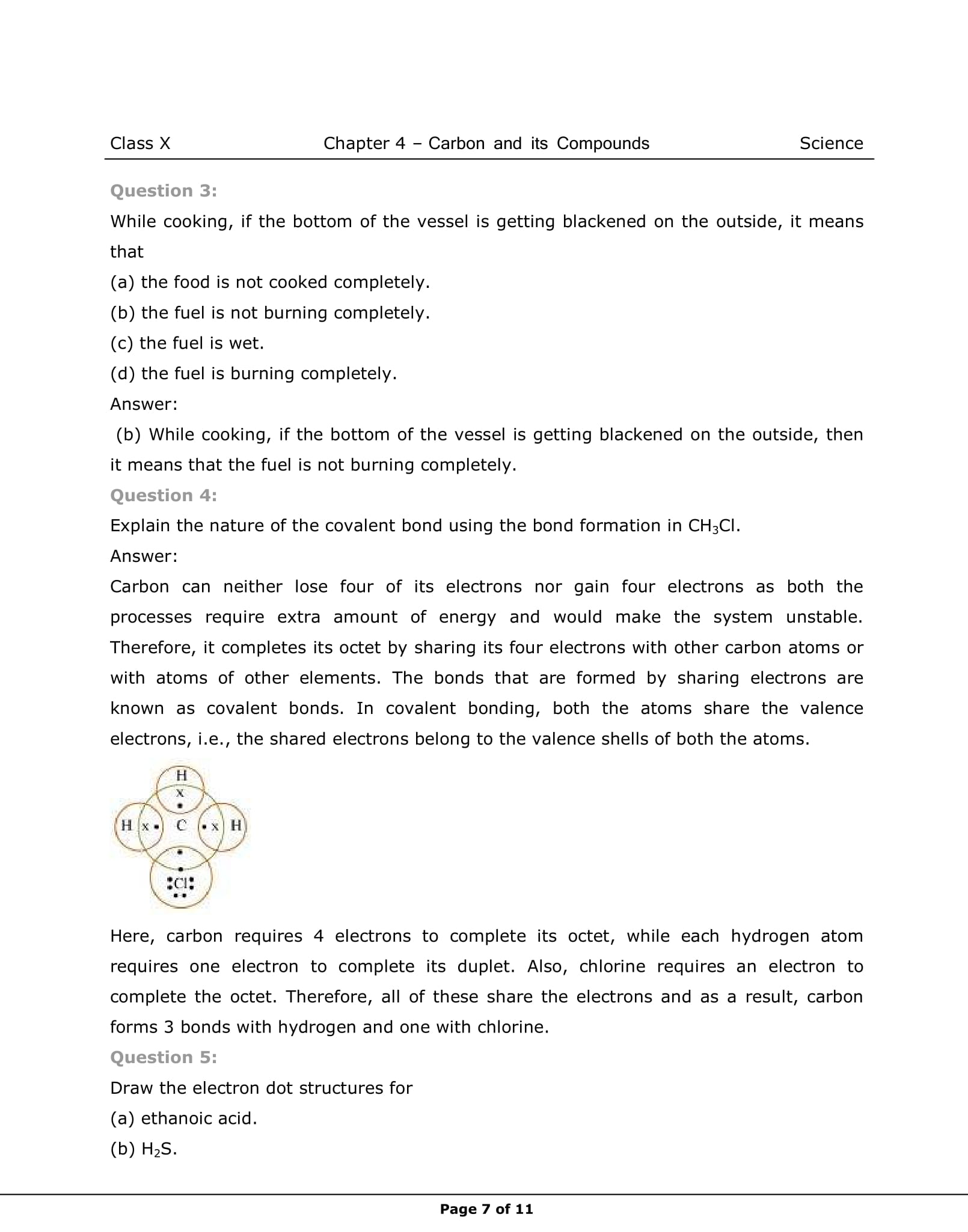 Students require NCERT Solutions for class 10 science chapter 4 Carbon and Its Compounds for better CBSE Board Preparation. In this chapter, you will learn Carbon is a versatile element that forms the basis for all living organisms and many of the things we use. This large variety of compounds is formed by carbon because of its tetravalency and the property of catenation that it exhibits. Covalent bonds are formed by the sharing of electrons between two atoms so that both can achieve a completely filled outermost shell.