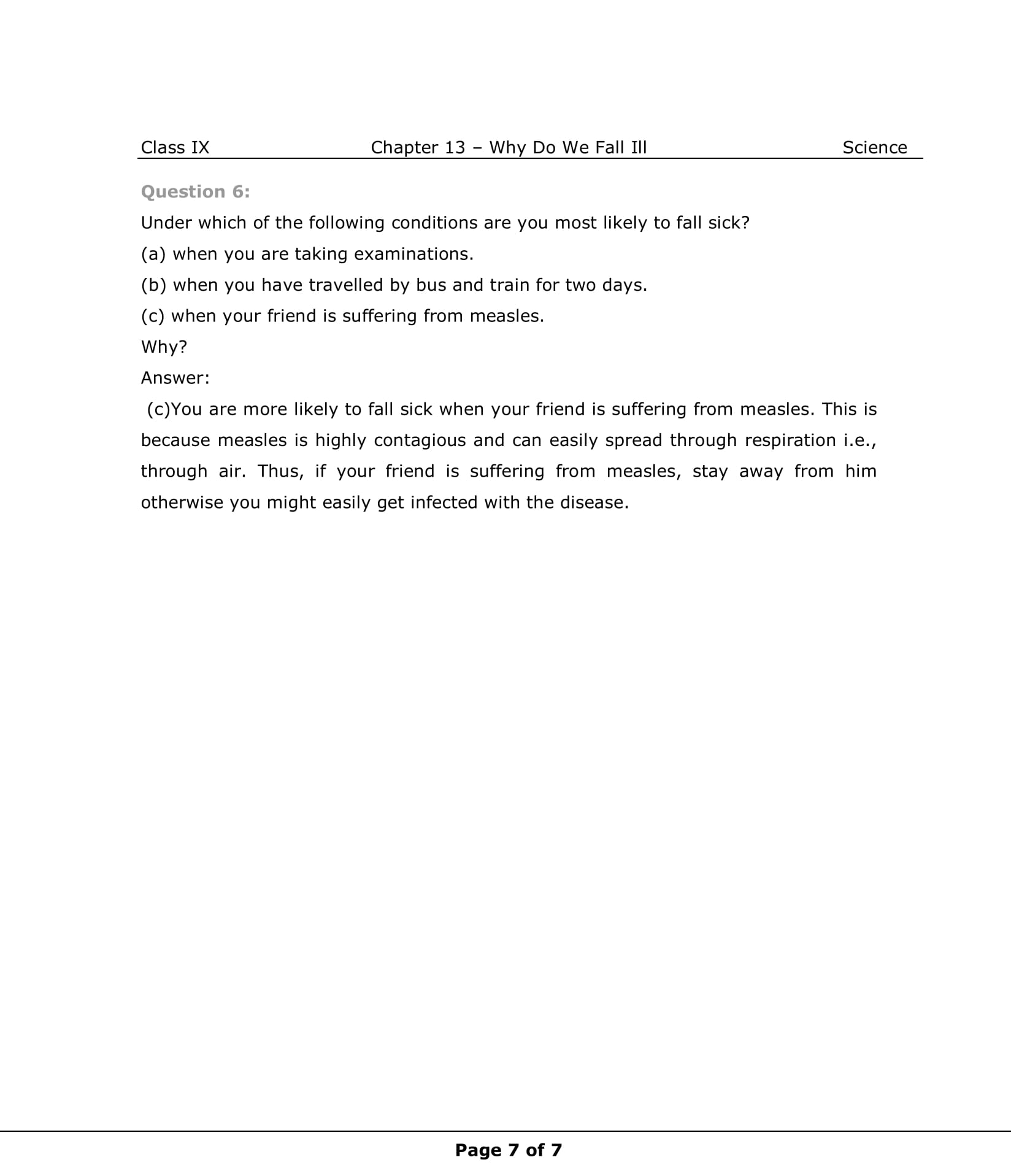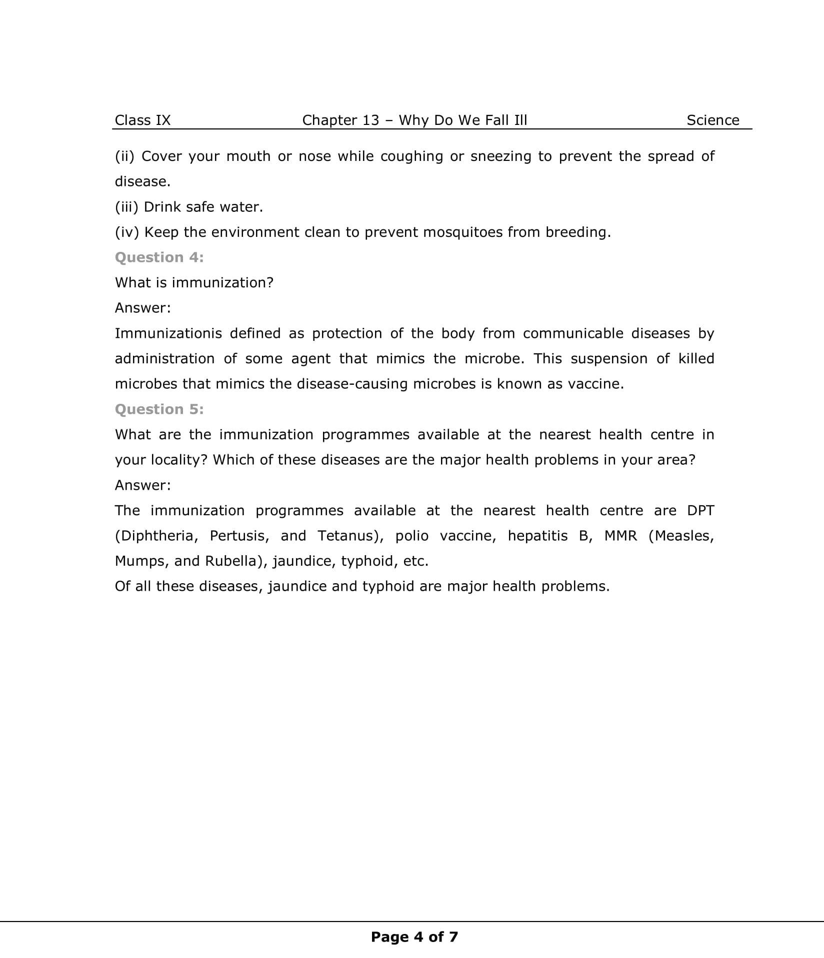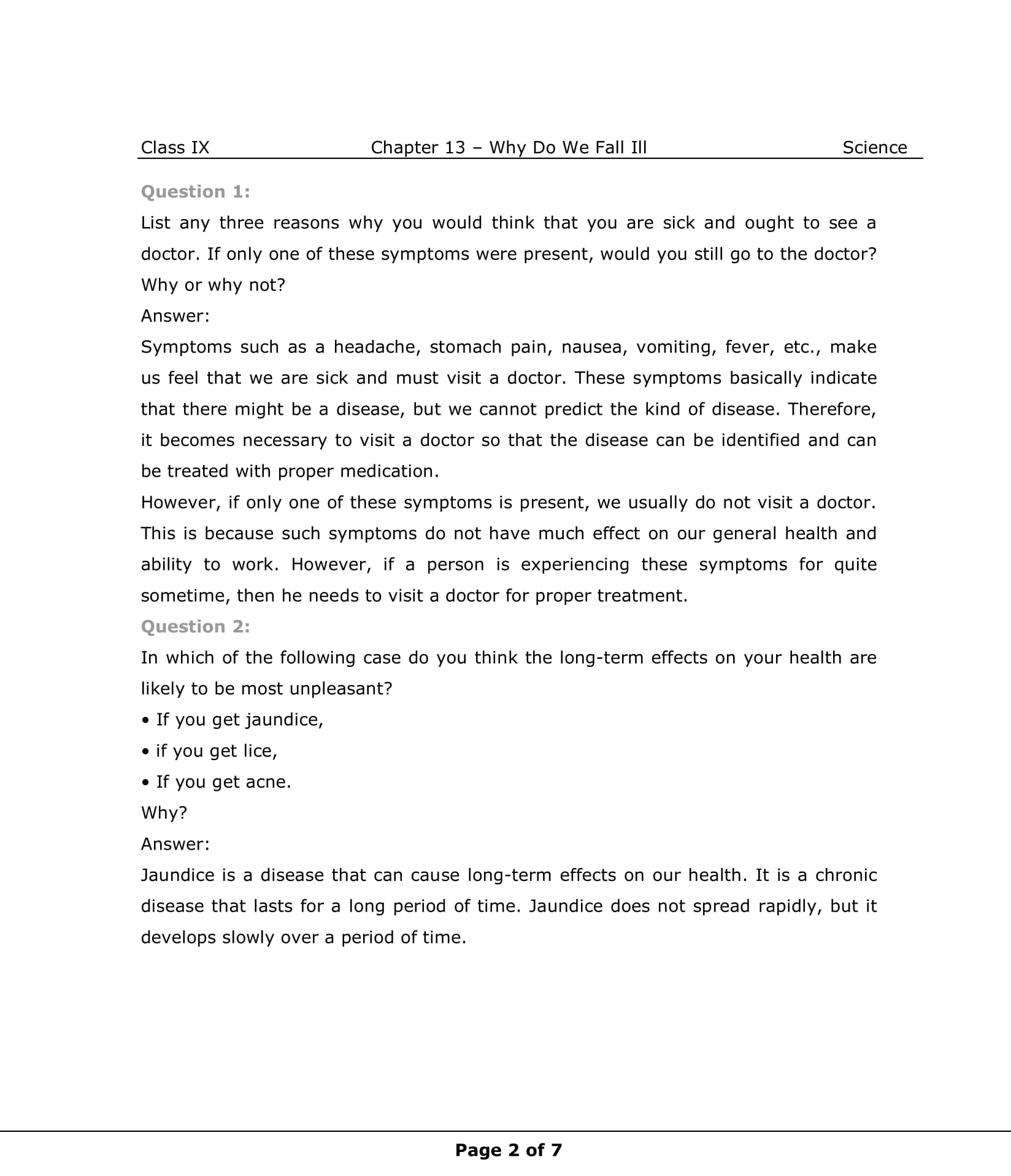These CBSE NCERT Solutions for class 9 science chapter 13 Why Do We Fall ill will help you to practice all the topics in the chapter with ease and score maximum marks in the examination.