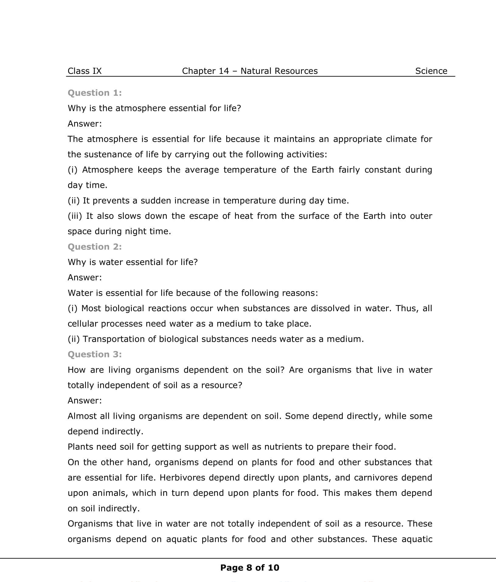 These CBSE NCERT Solutions for class 9 science chapter14 Natural Resources will help you to practice all the topics in the chapter with ease and score maximum marks in the examination.