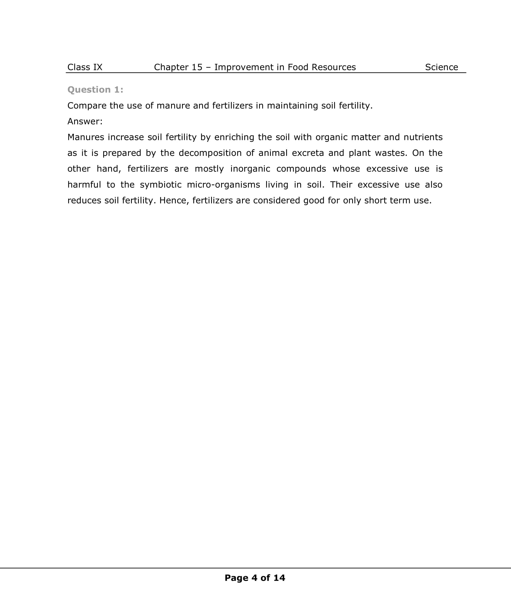 Students take help from NCERT Solutions for class 9 science chapter 15 Improvement in Food Resources to study for their examinations. In this chapter, you will learn There are thirteen nutrients essential for crops. Of these, six are required in large quantities and are known as macronutrients whereas seven nutrients are required in small quantities and are known as micro-nutrients. Manure and fertilizers are the main sources of nutrient supply to crops.