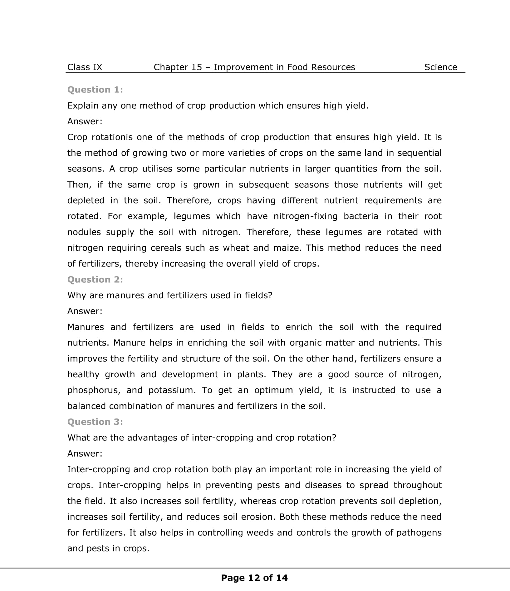 Exercises covered in our NCERT Solution for CBSE Class 9 Science Chapter 15 Improvement in Food Resources are given below: –