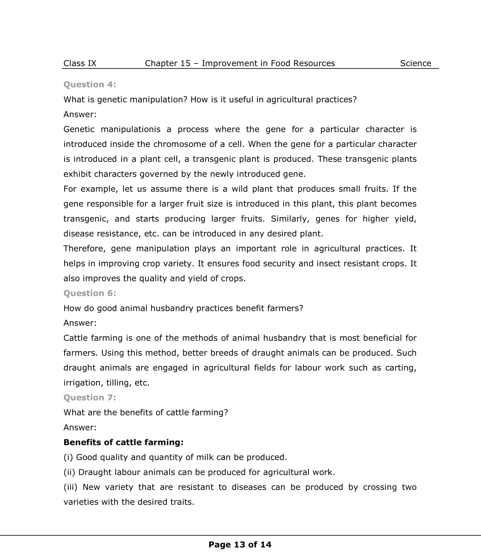 NCERT Solutions For Class 9 Science Chapter 15 Improvement in Food Resources - PDF Download