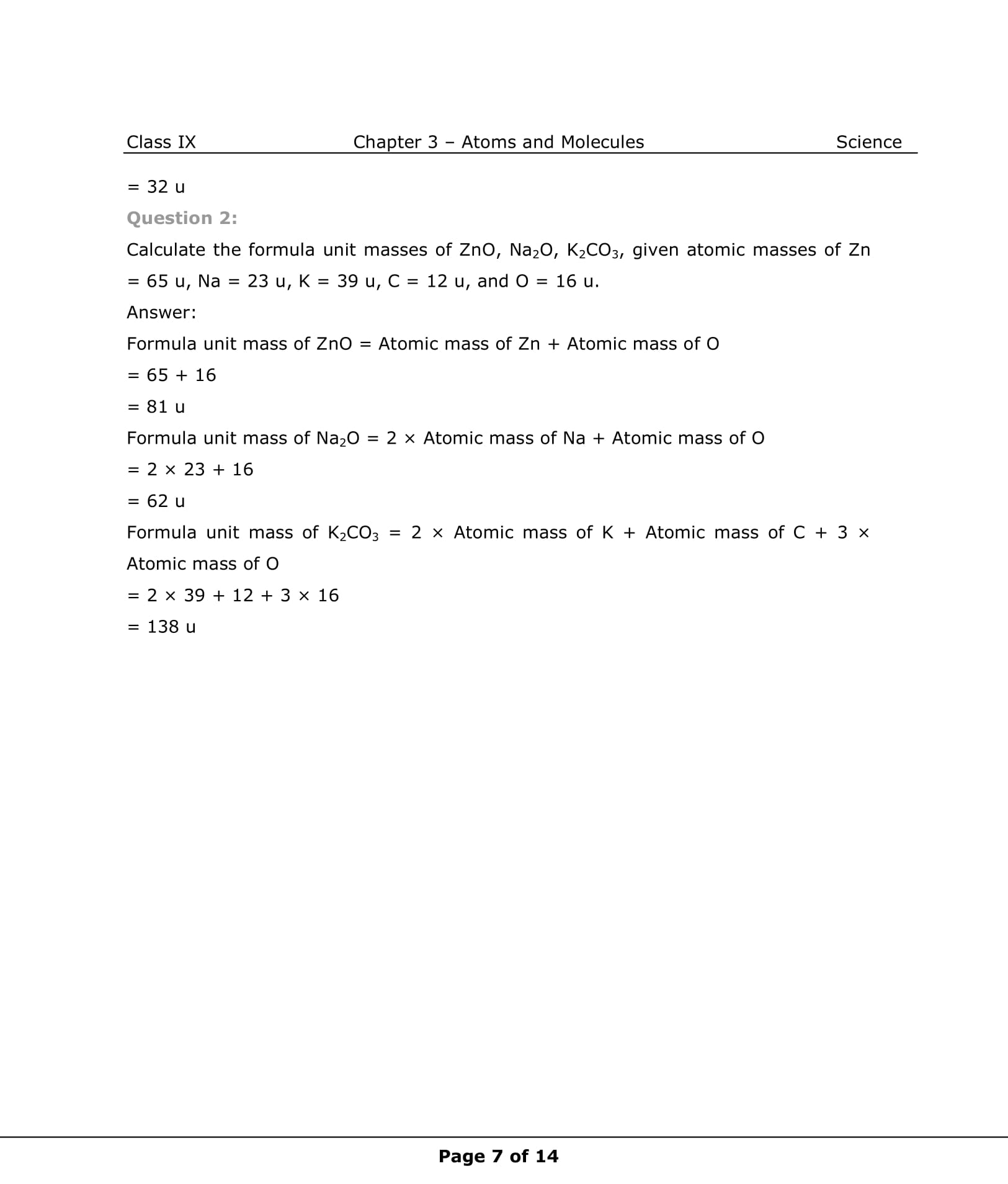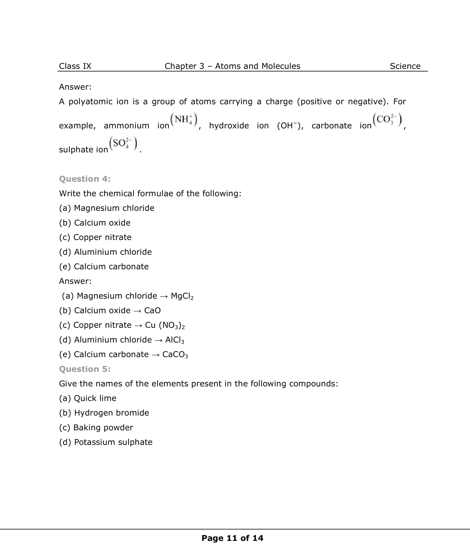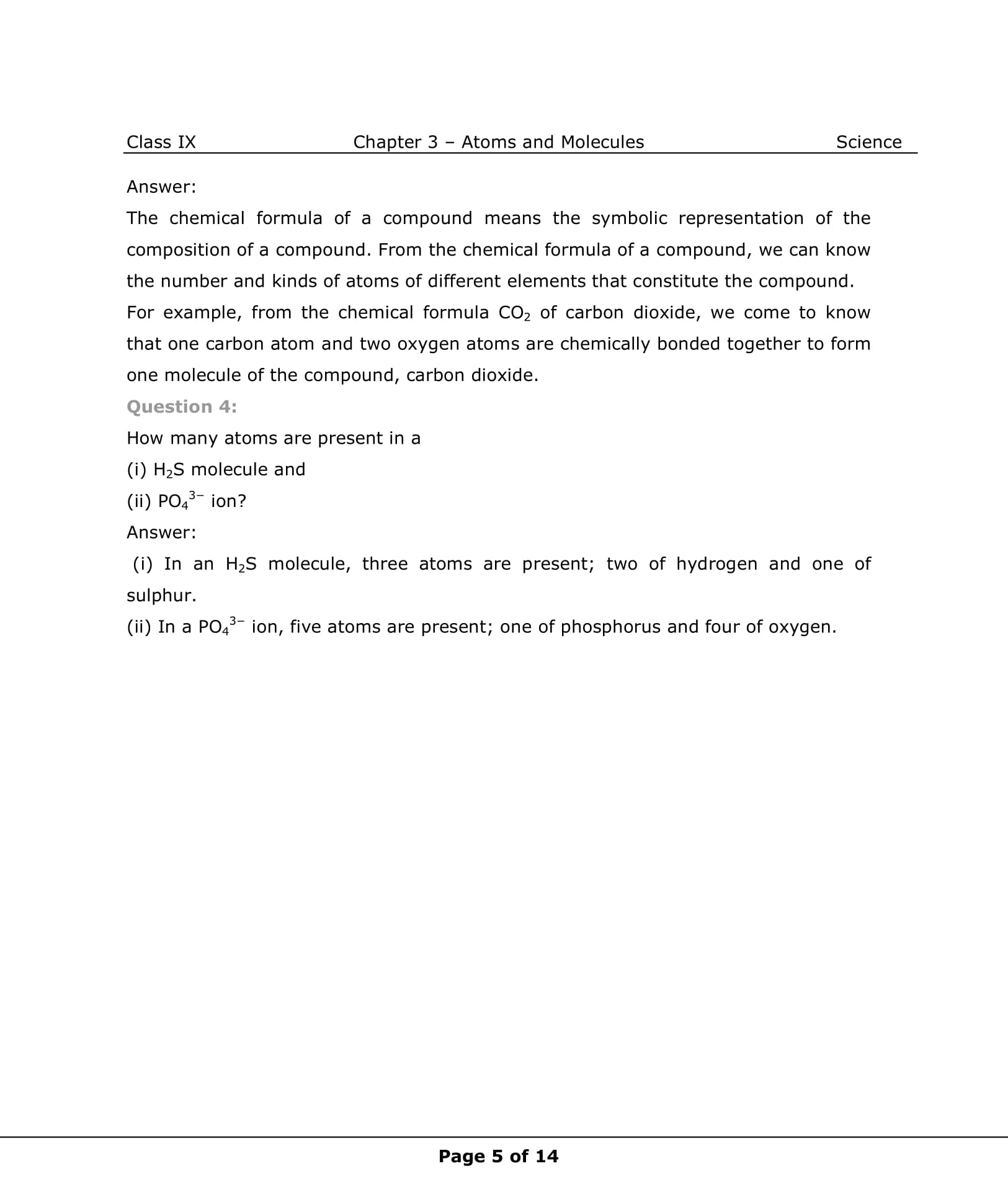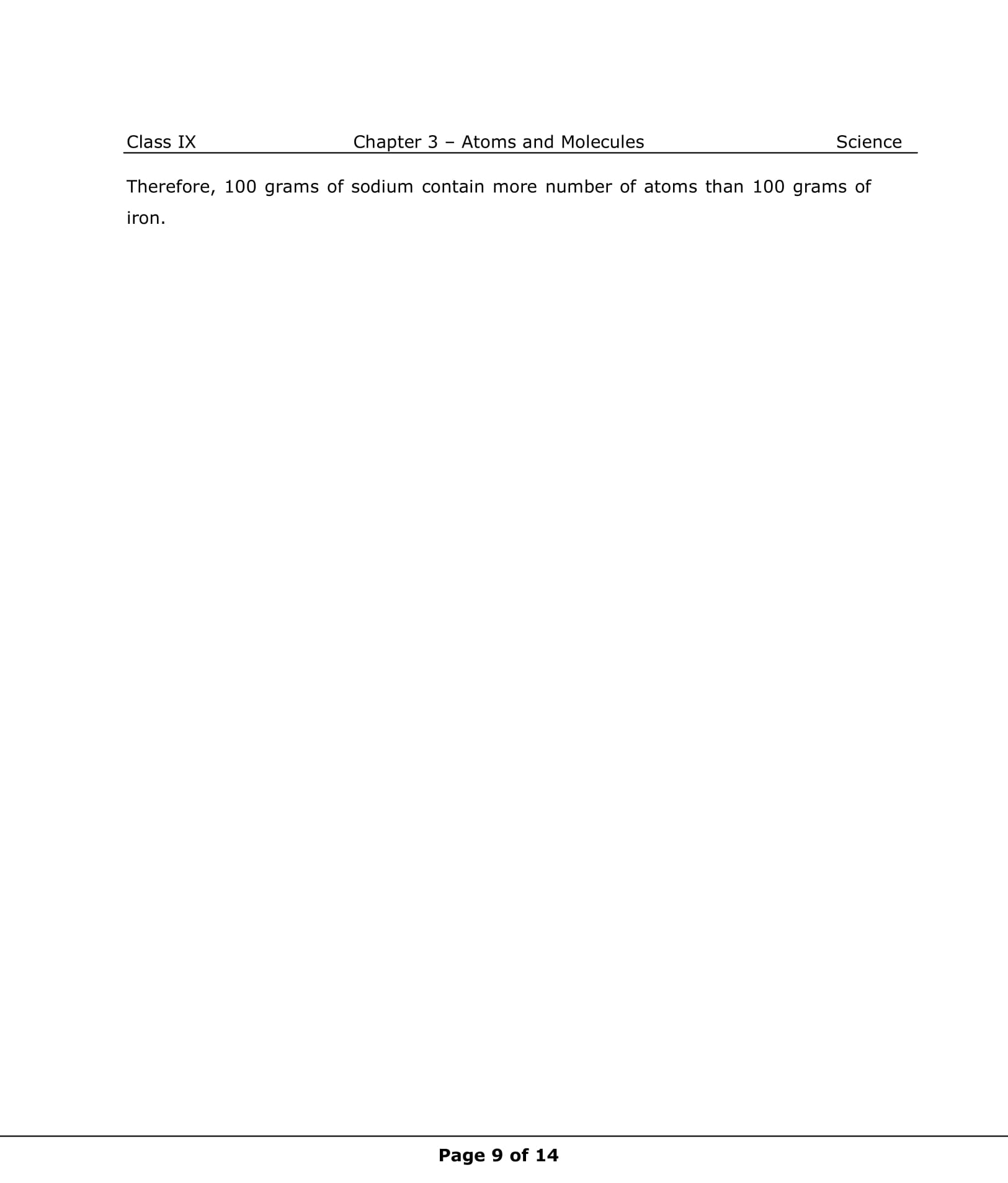 NCERT Solutions For Class 9 Science Chapter 3 Atoms and Molecules - PDF Download