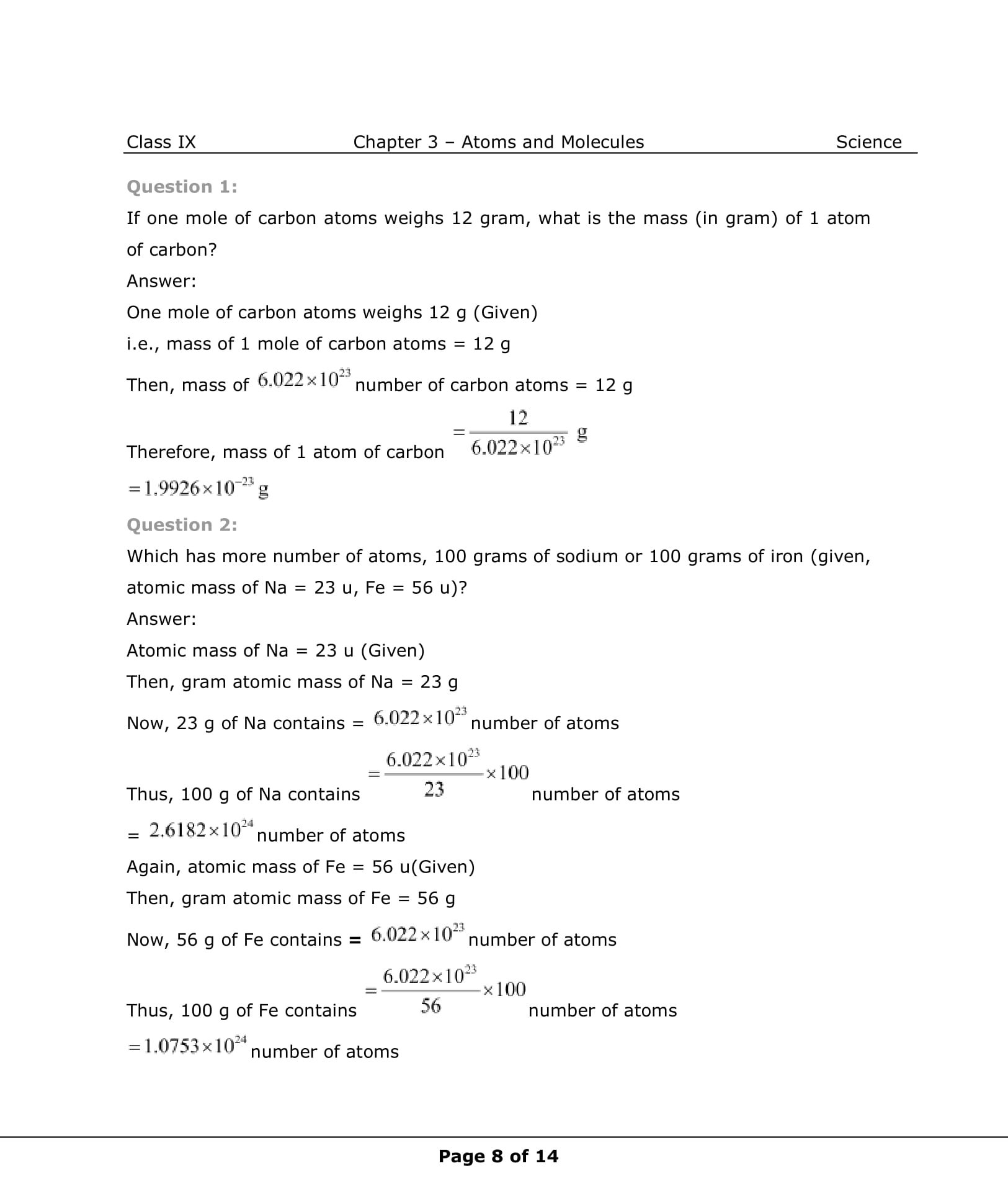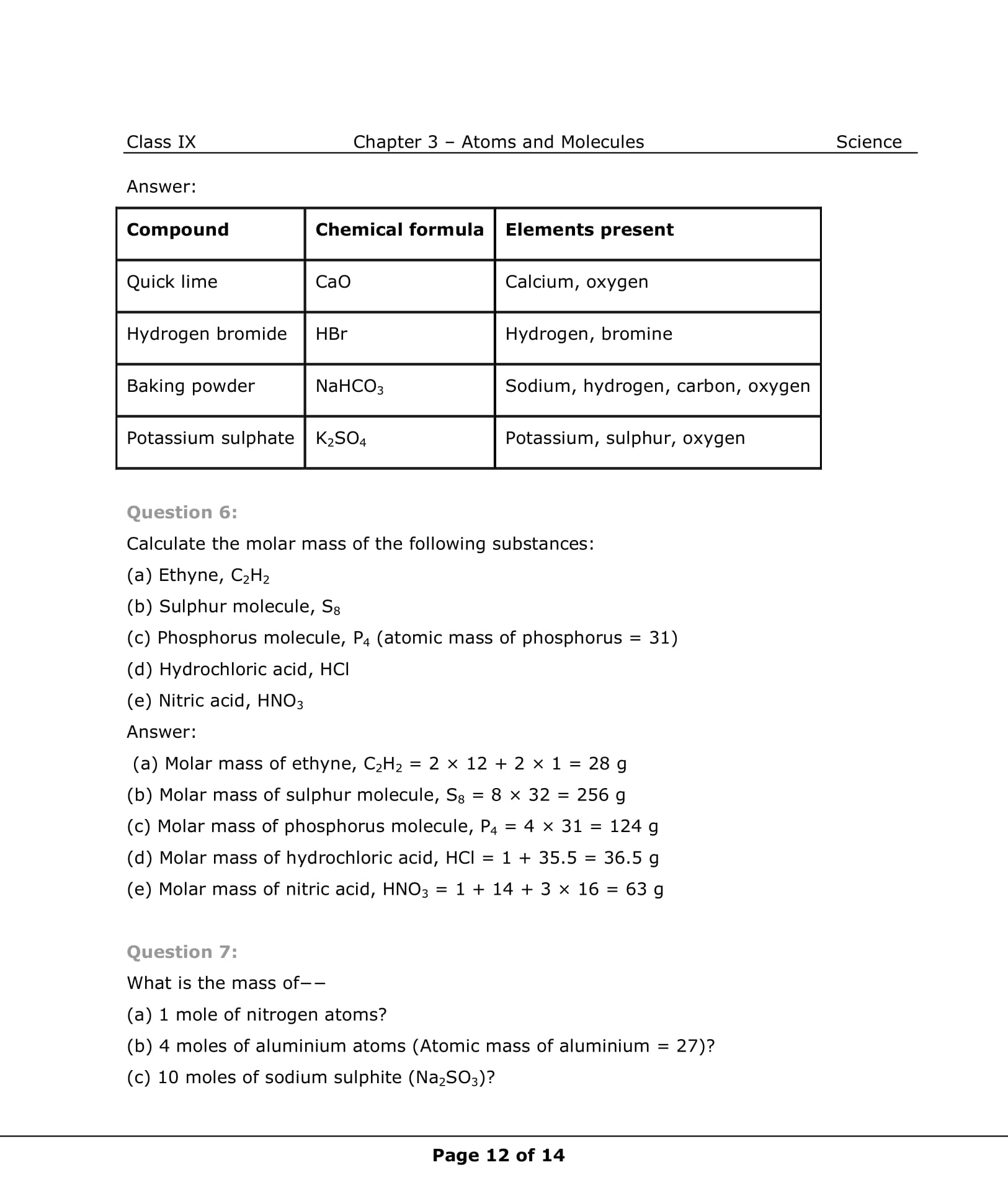These CBSE NCERT Solutions for Class 9 Science Chapter 3 Atoms and Molecules will help you to practice all the topics in the chapter with ease and score maximum marks in the examination.